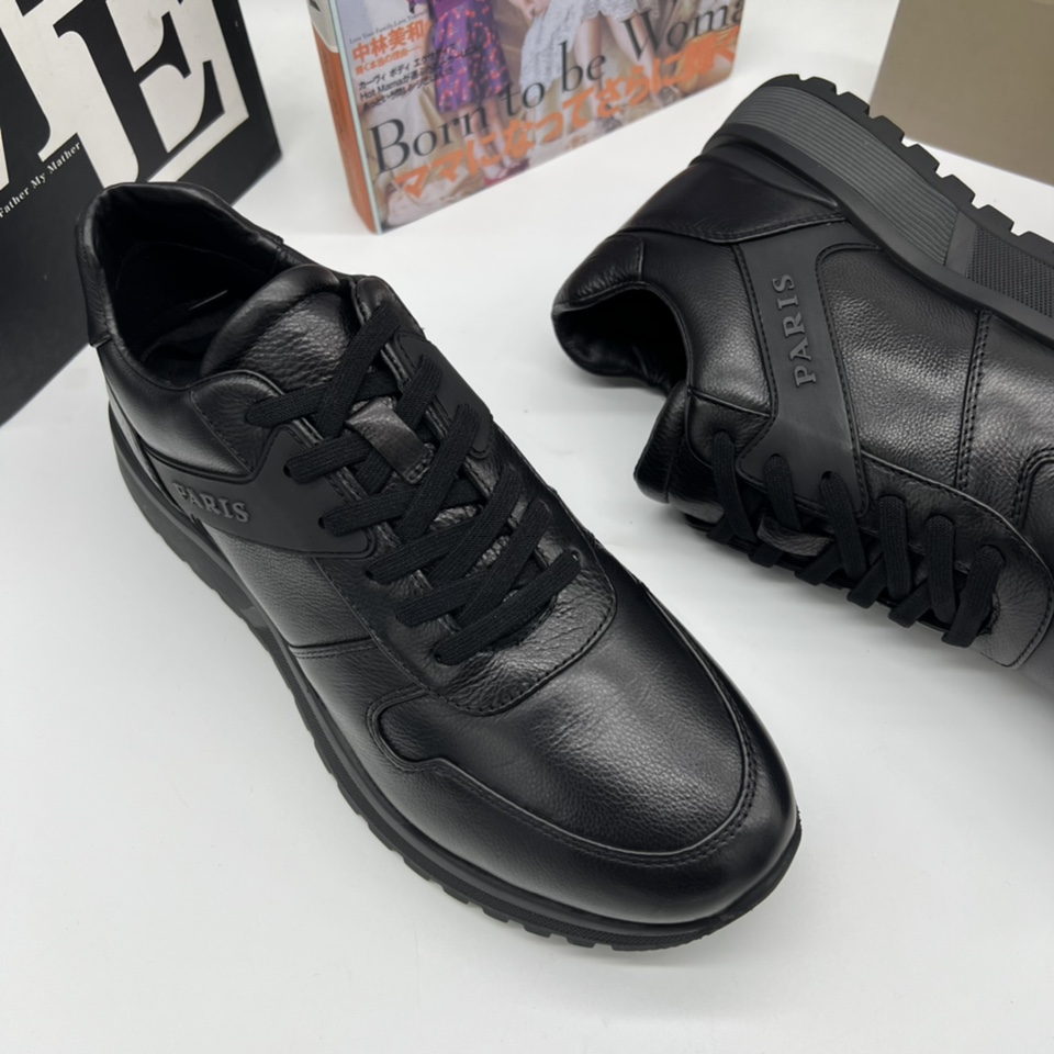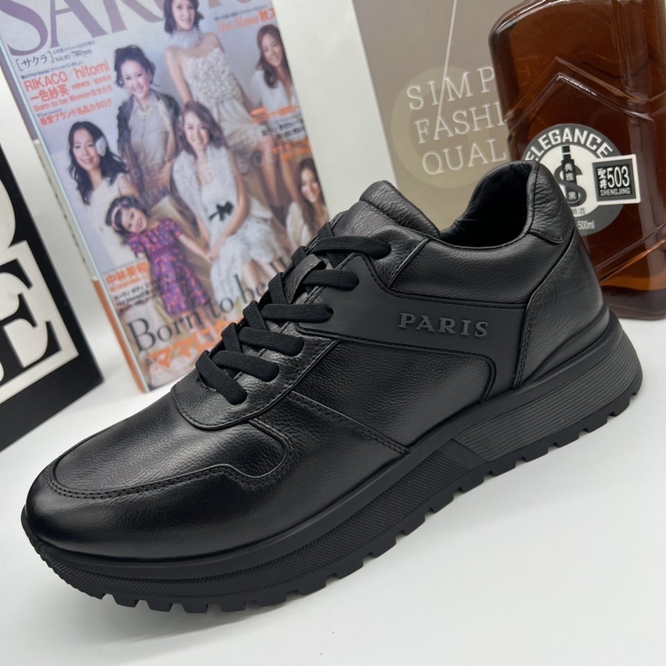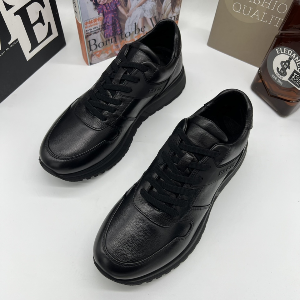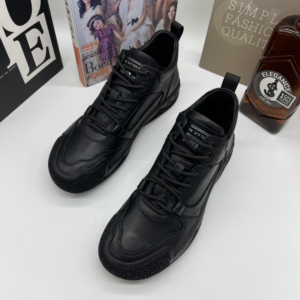 低幫牛皮厚底男鞋2022秋季新品黑色真皮休閒運動鞋防滑耐磨大底男