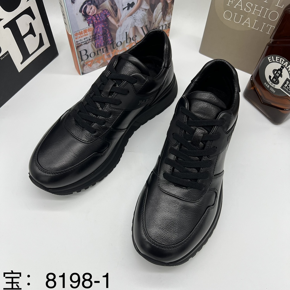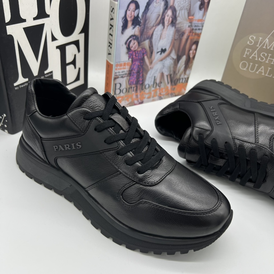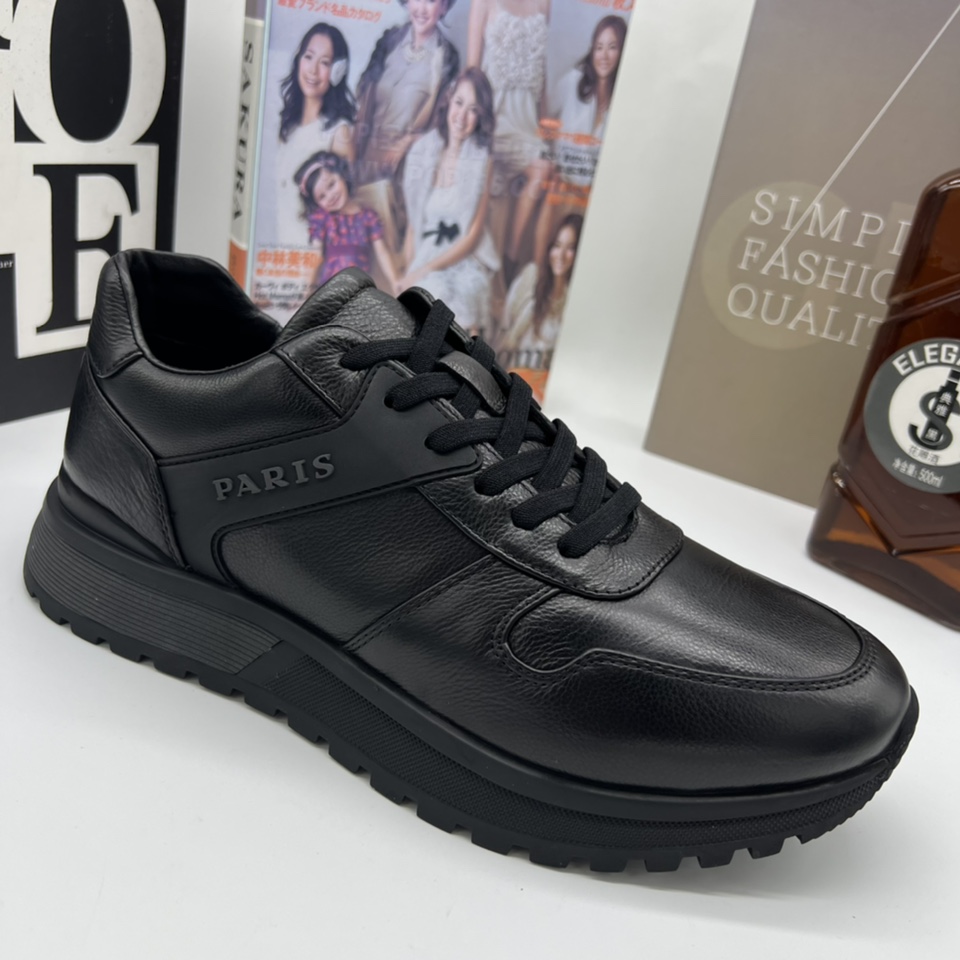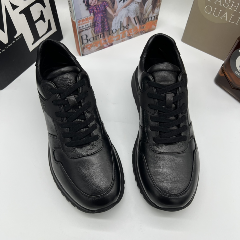 低幫牛皮厚底男鞋2022秋季新品黑色真皮休閒運動鞋防滑耐磨大底男