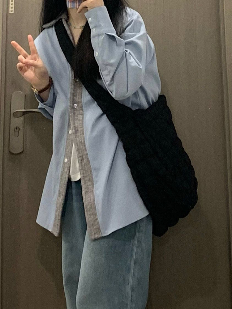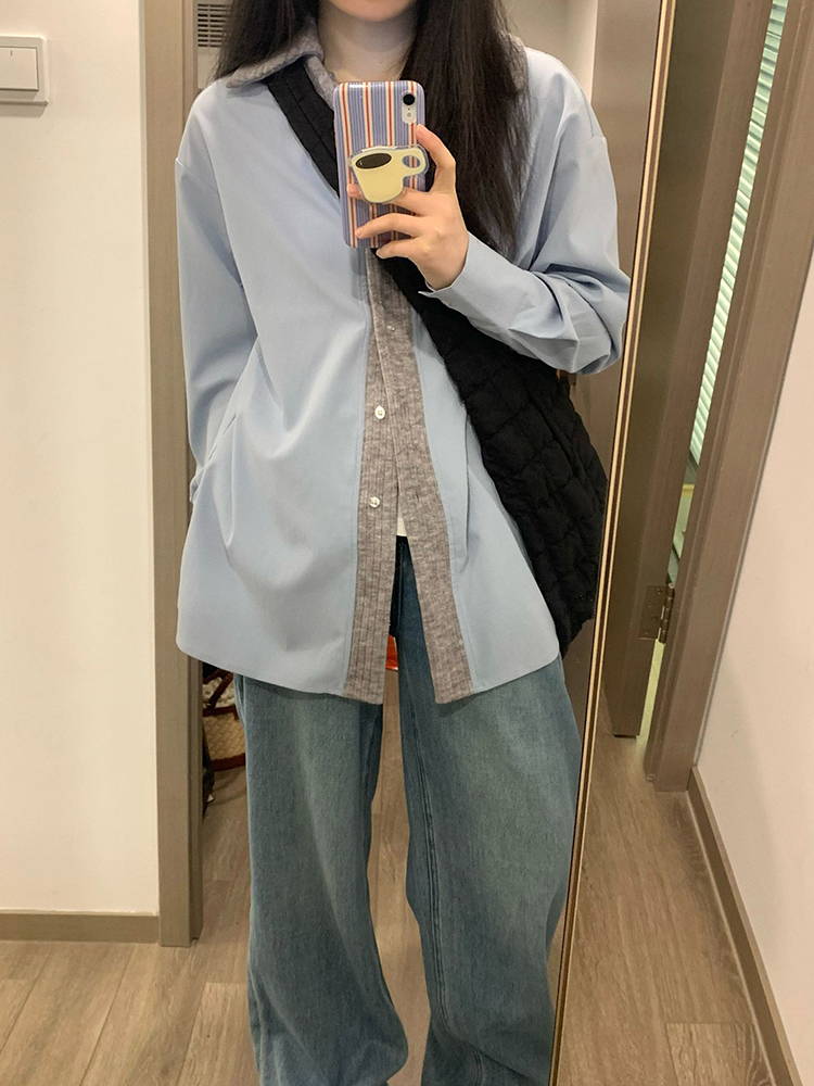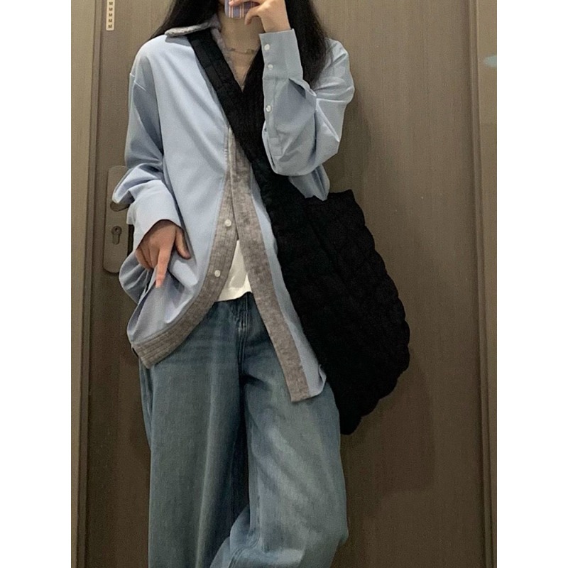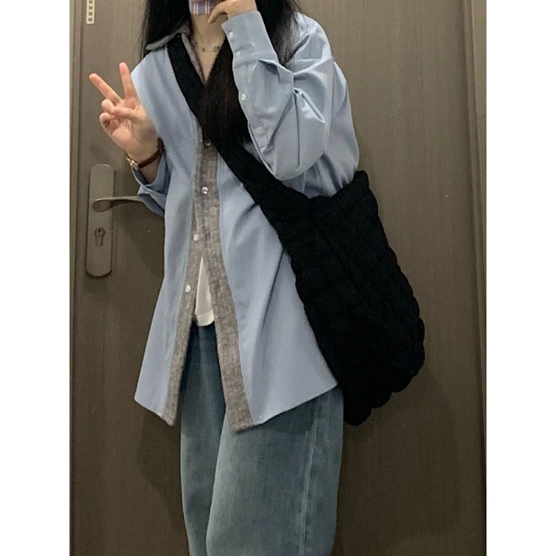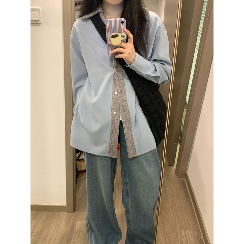 韓系復古小眾設計感長袖襯衫外套秋裝女2023新款慵懶寬鬆時髦上衣