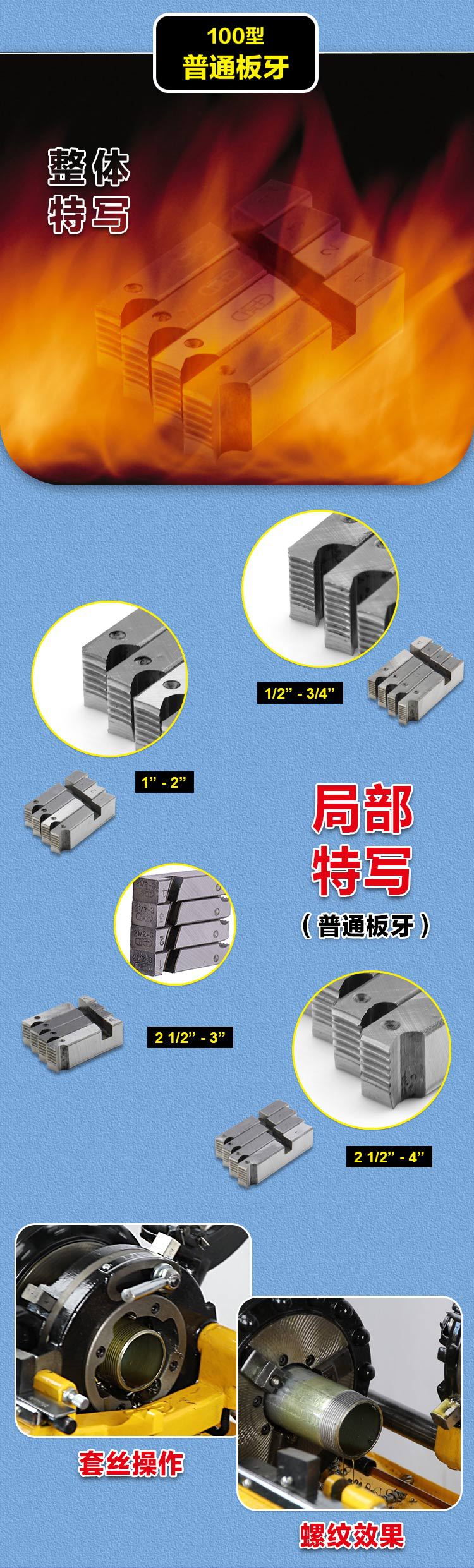 虎王电动套丝机板牙100型碳钢高速钢板牙消防水管英制板牙1/2-4寸