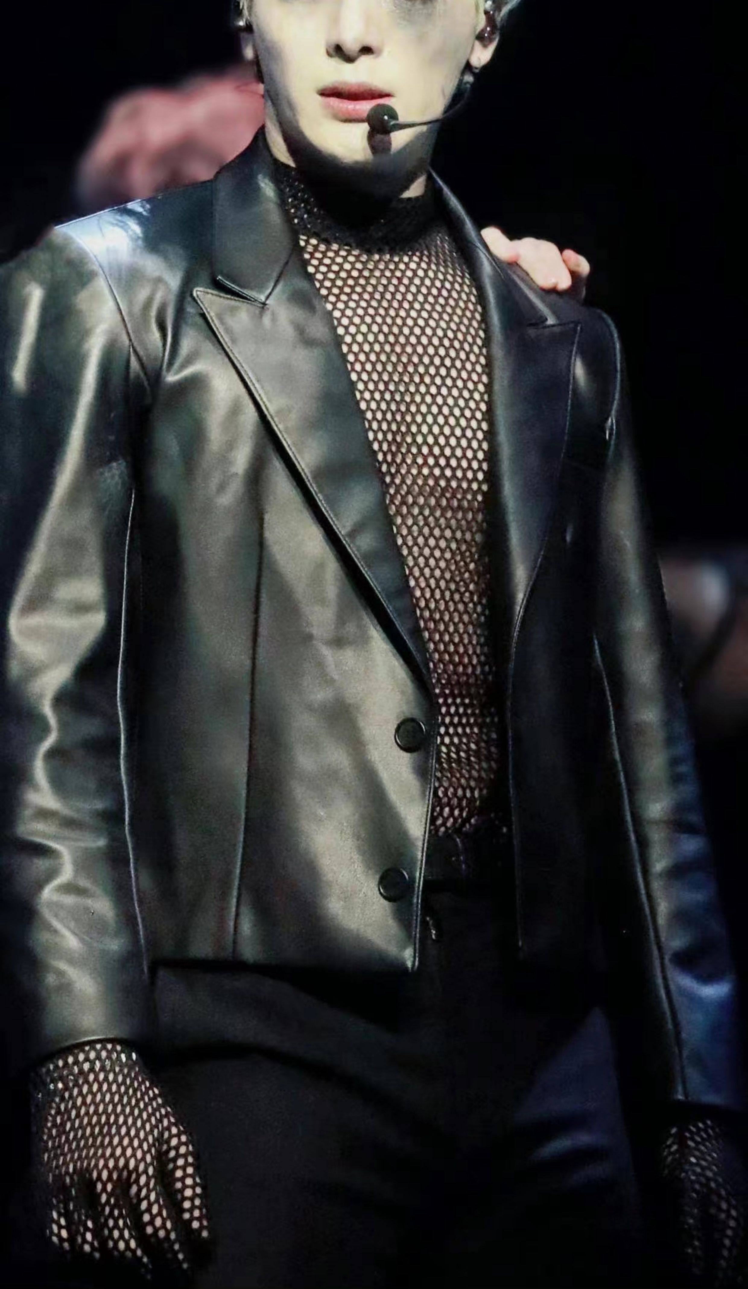 王嘉爾同款春秋短款夾克黑色皮衣外搭機車潮流設計感時尚美式休閒