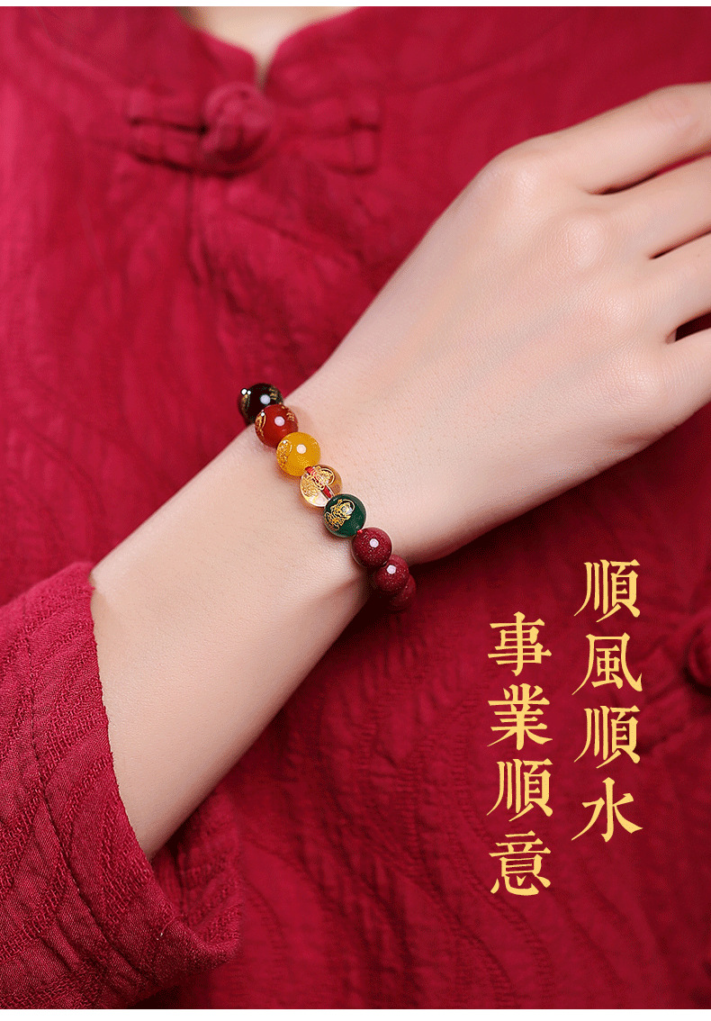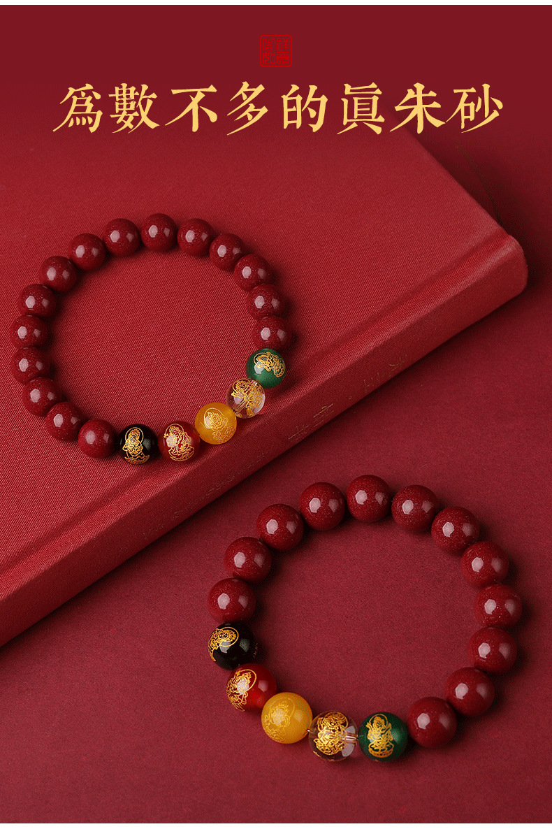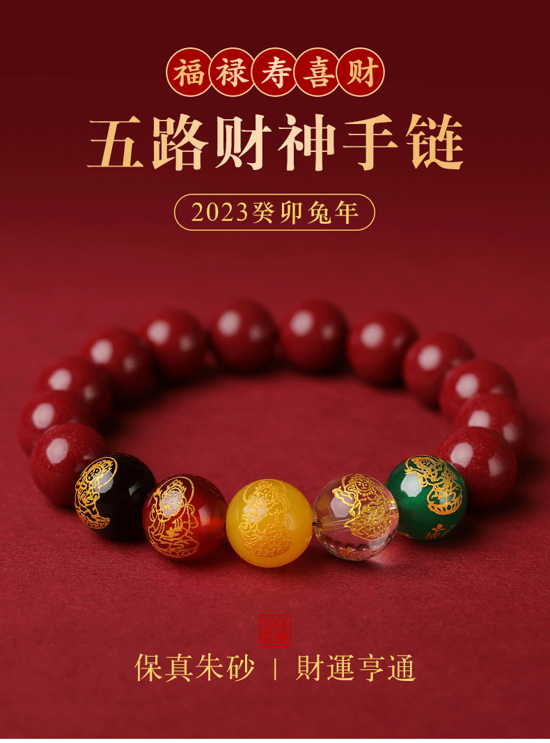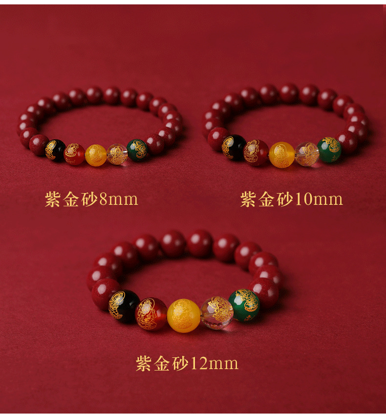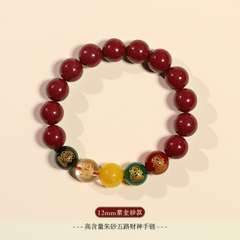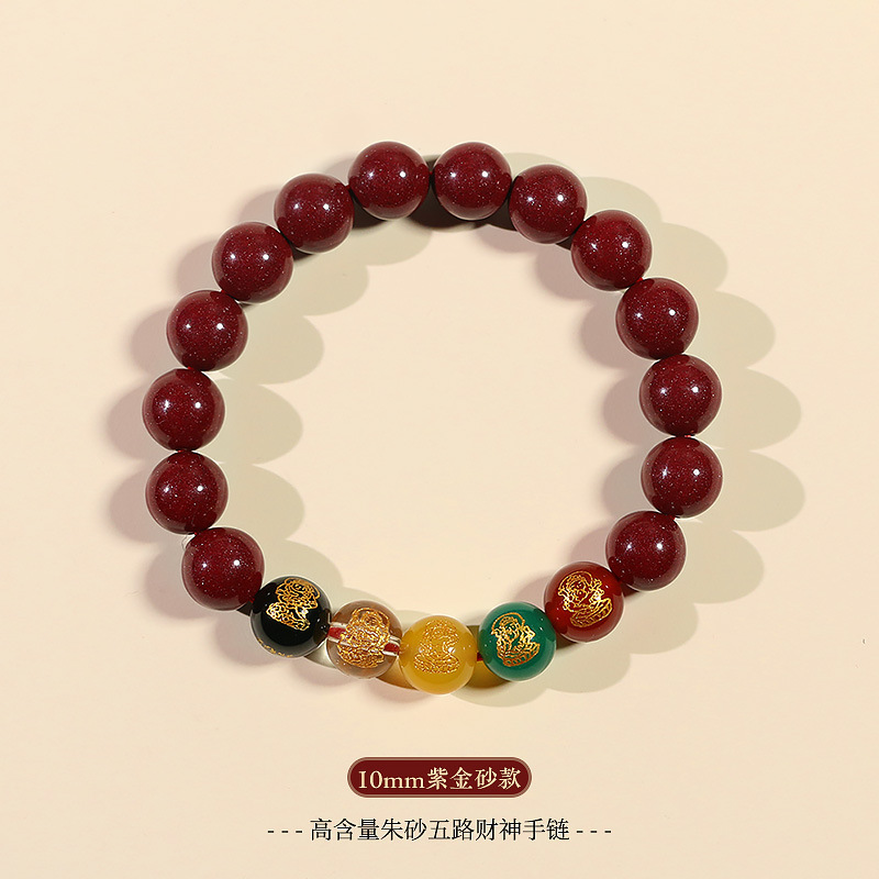 朱砂五路手串10MM男女款水晶玉石手链紫金砂女本命年生肖兔货