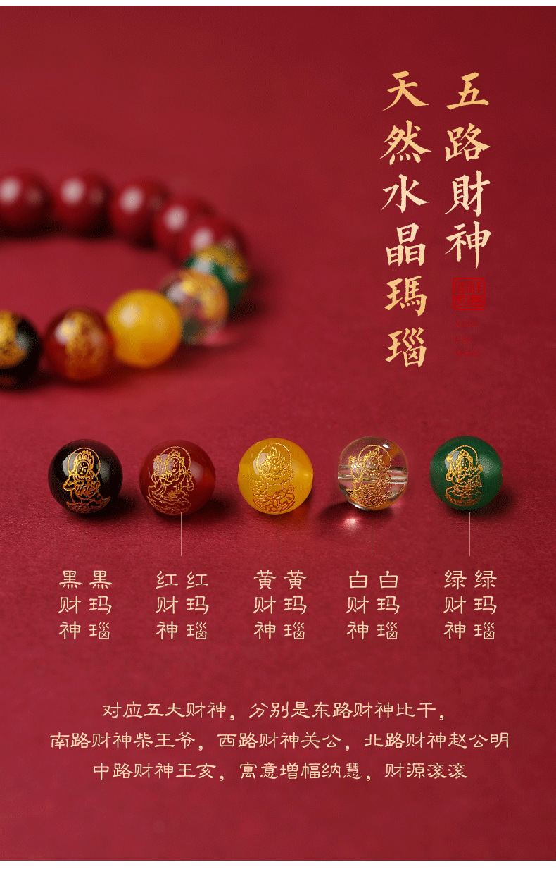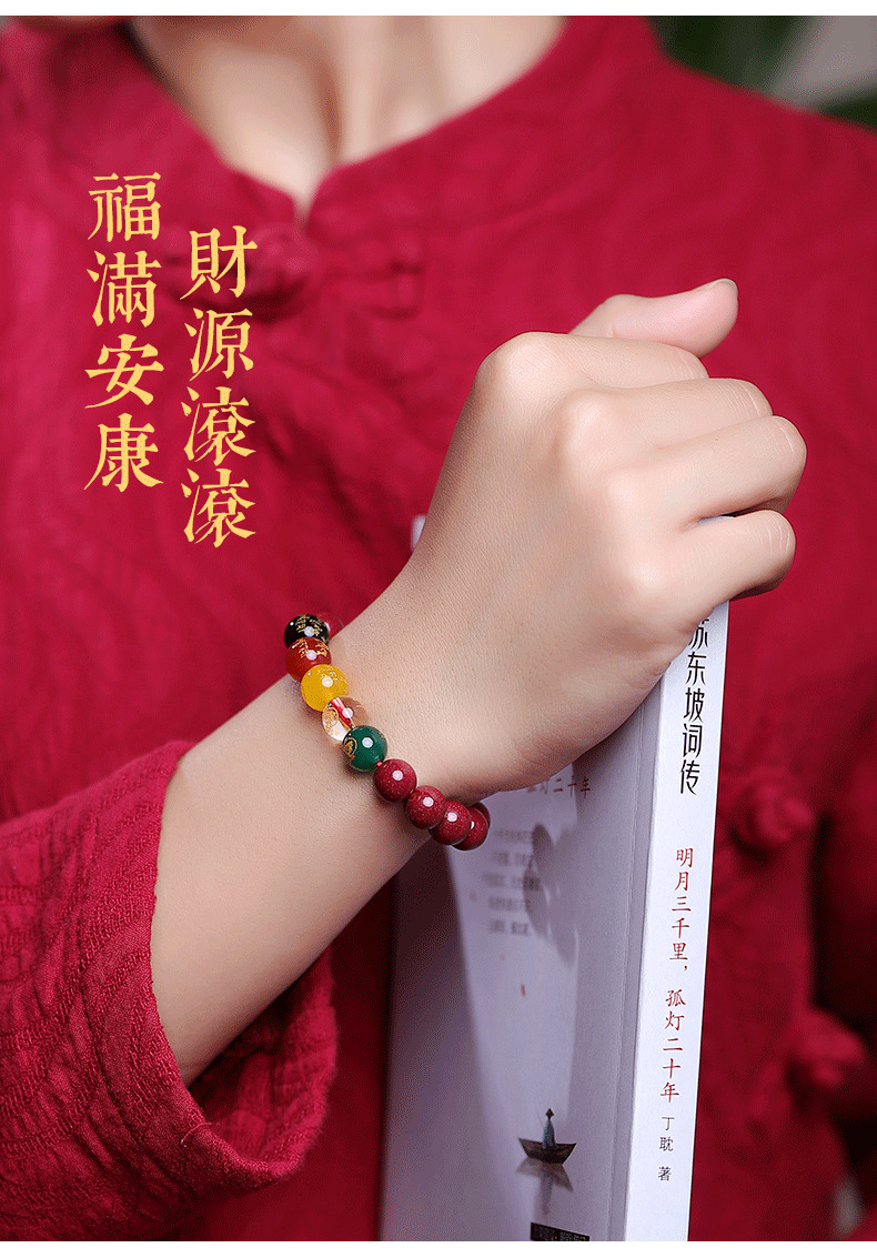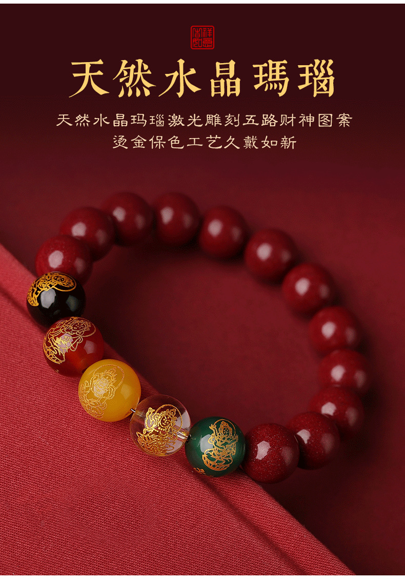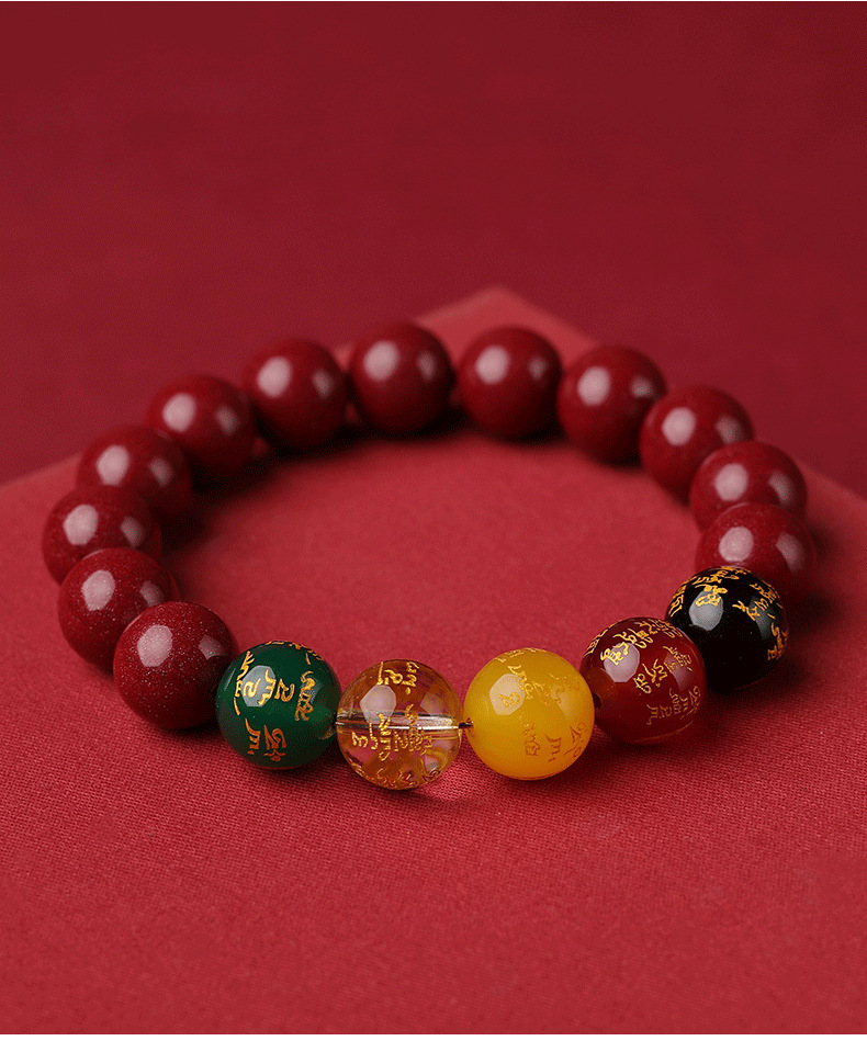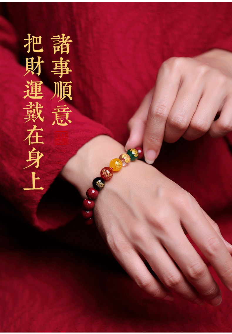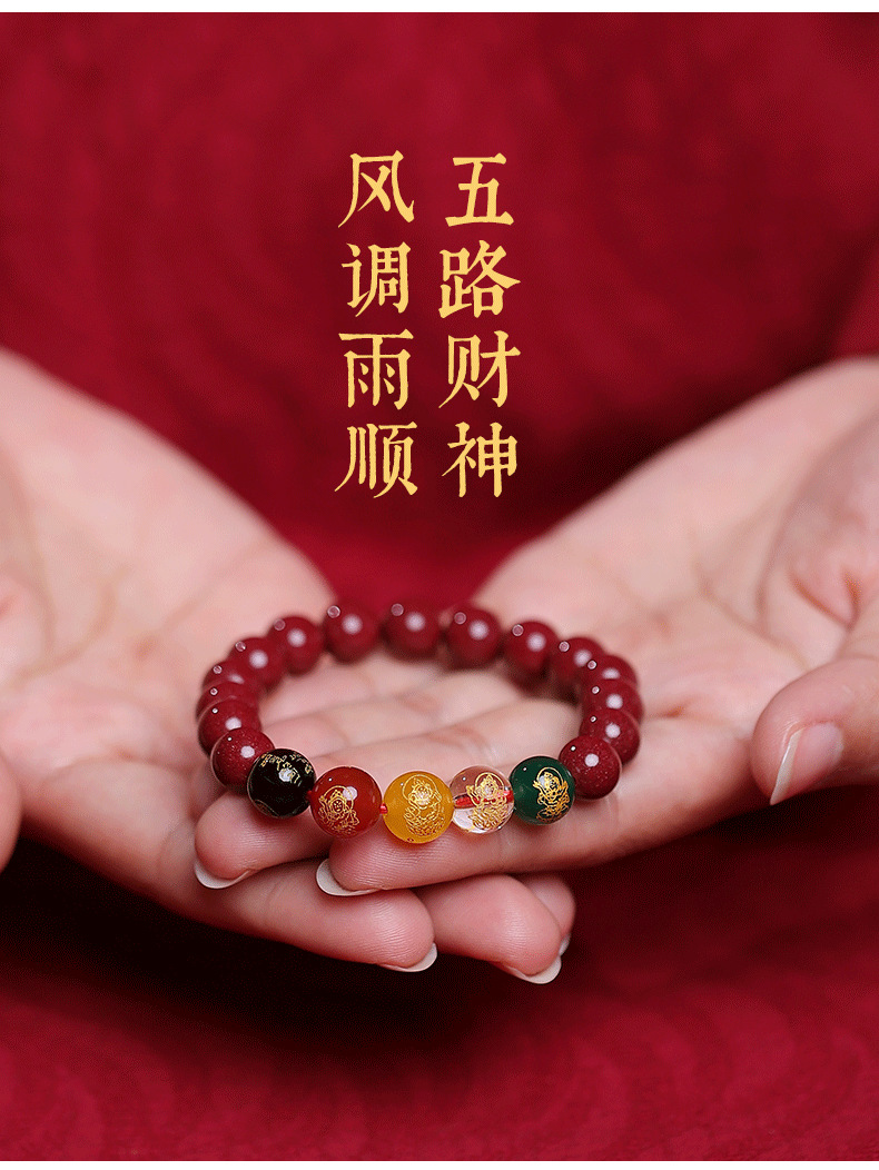 朱砂五路手串10MM男女款水晶玉石手链紫金砂女本命年生肖兔货