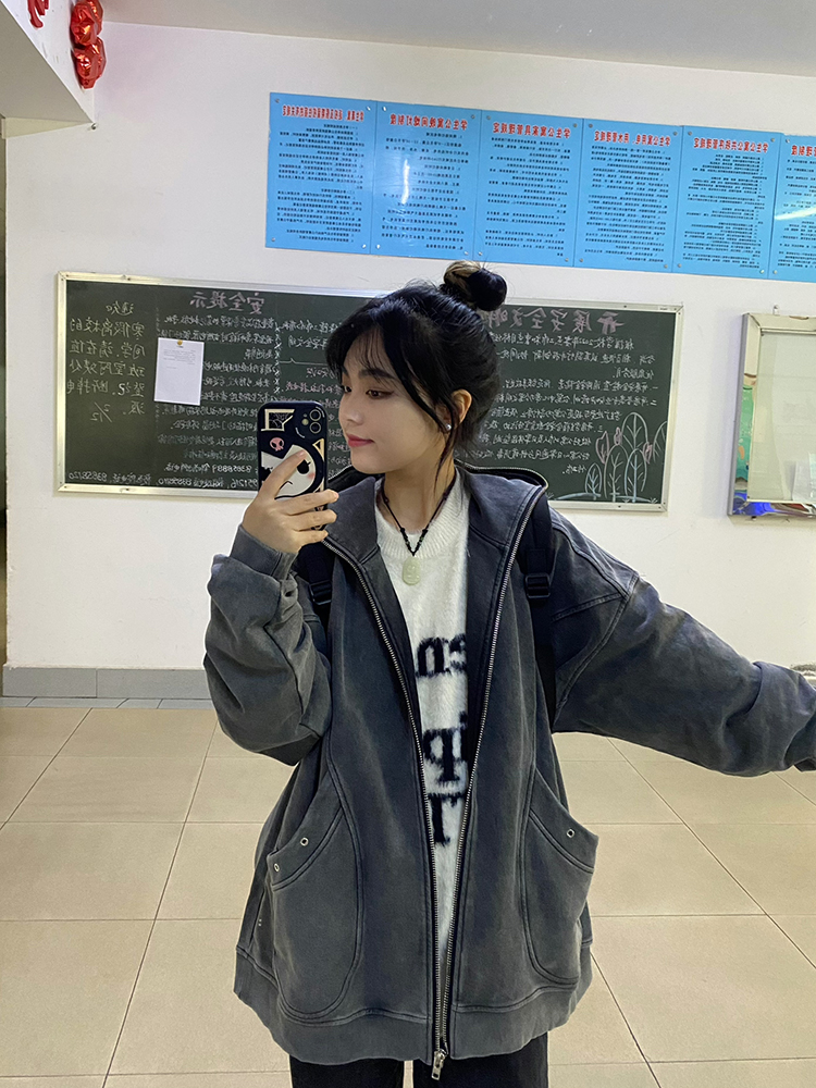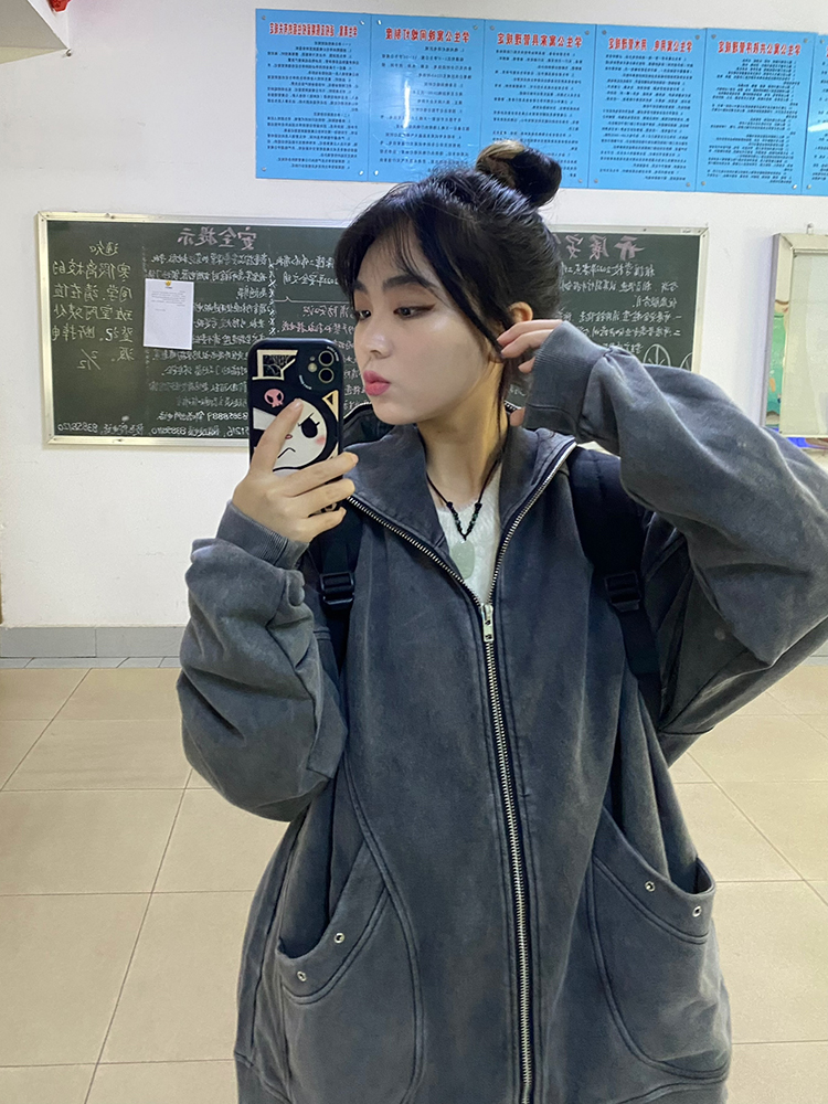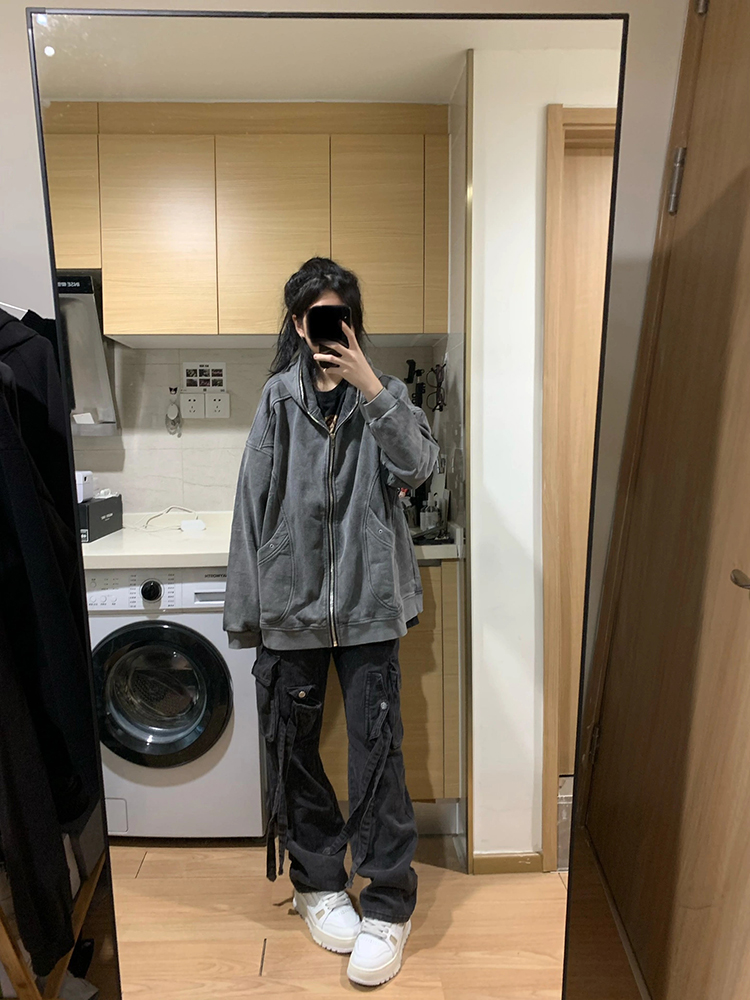 衛衣女春秋2023年新款百搭設計感連帽初春美式復古開衫外套上衣潮
