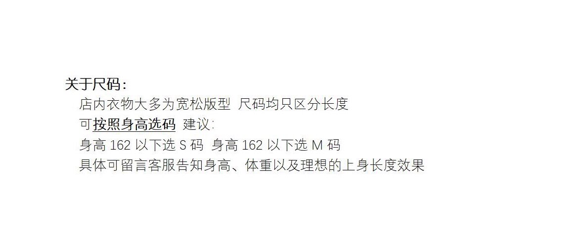 尺寸 S碼 身高152以上,M碼 身高162以上