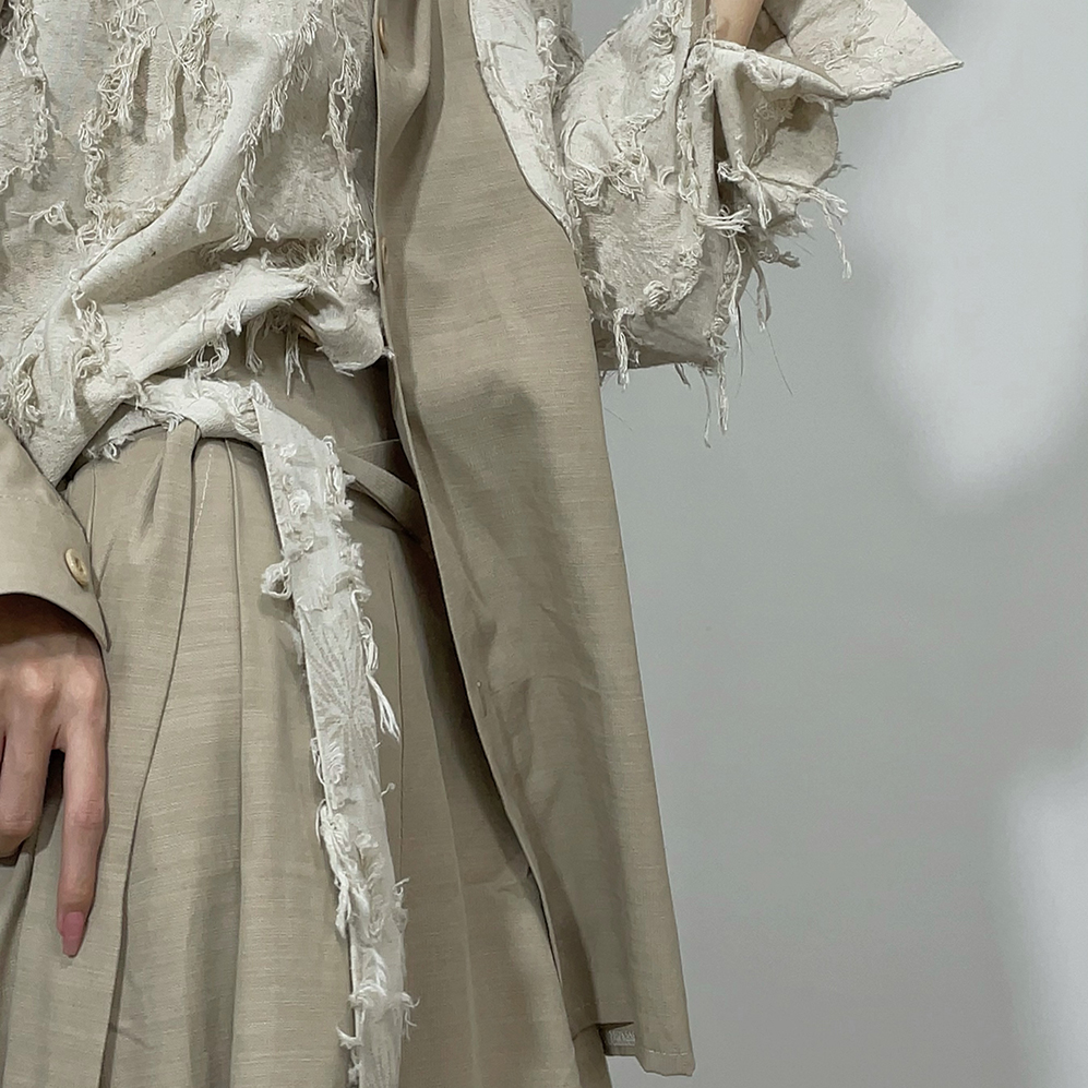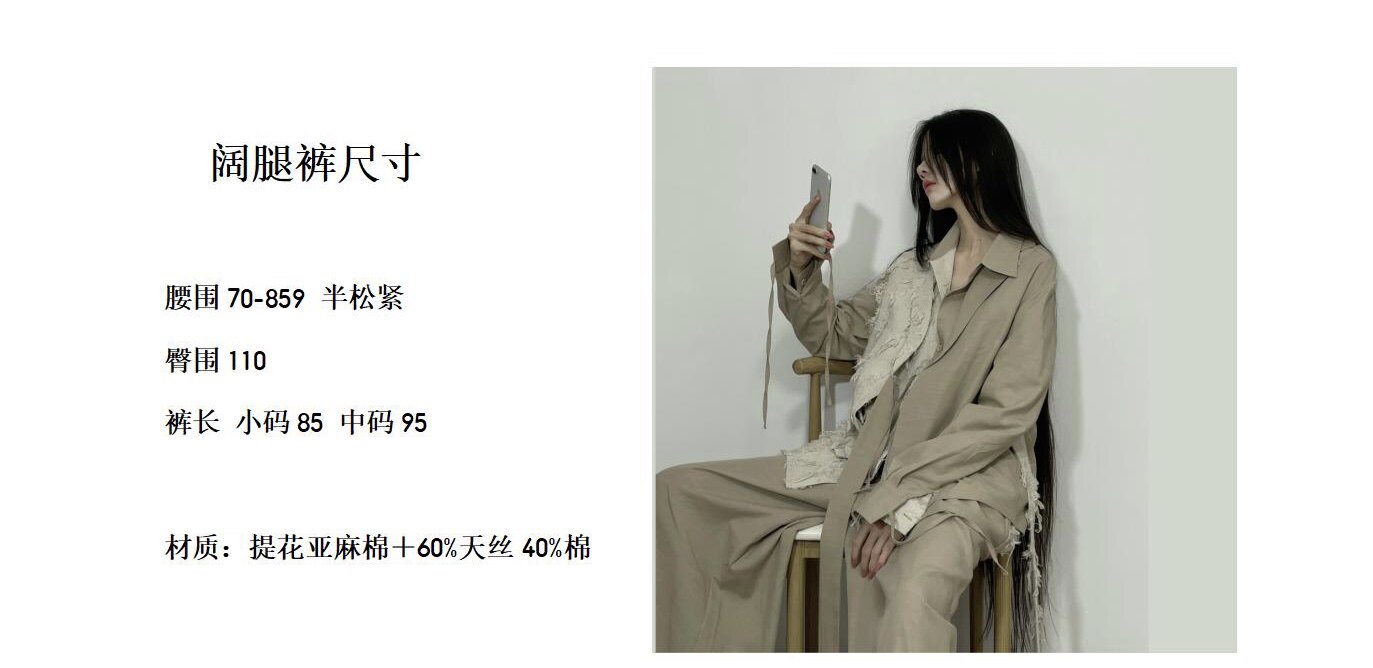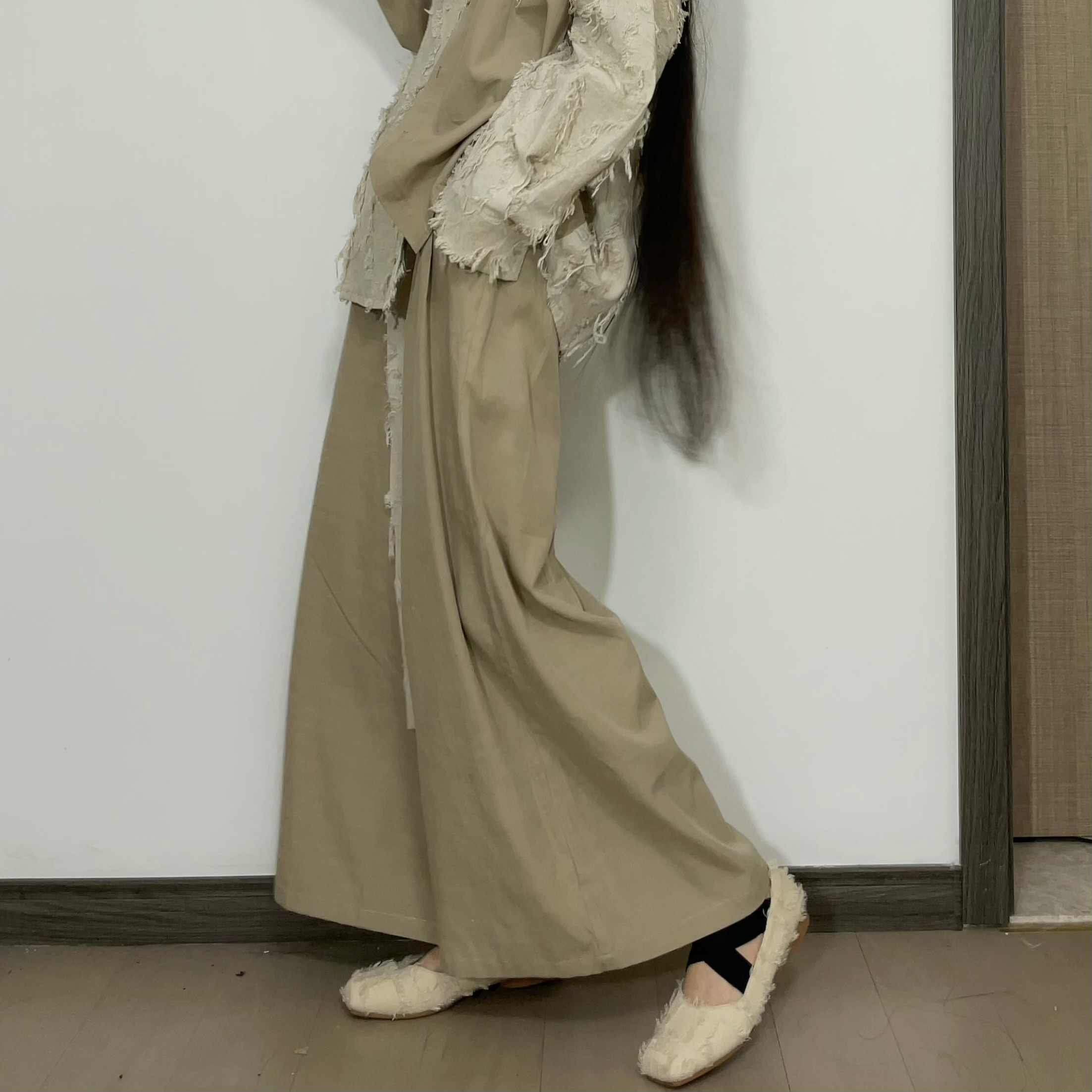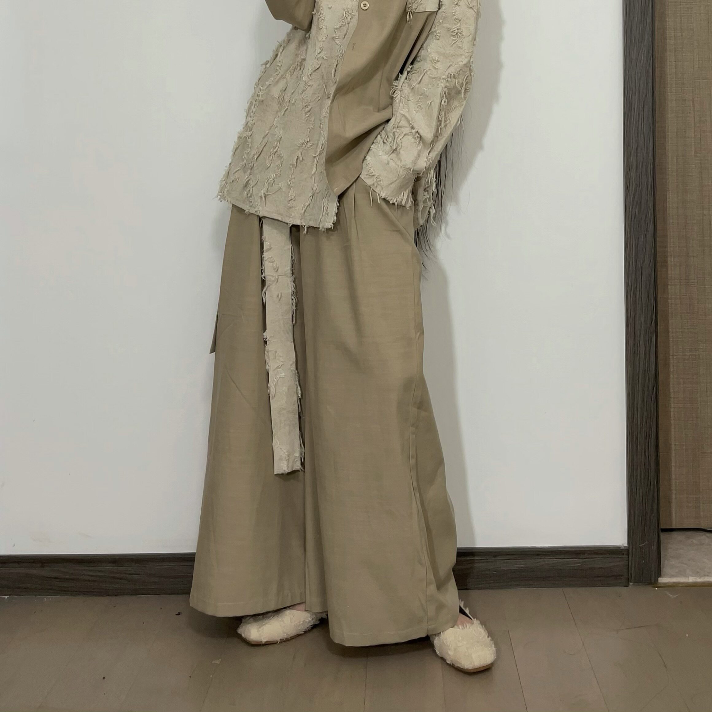 【錄.迎風】新中式亞麻飄帶半鬆緊闊腿褲