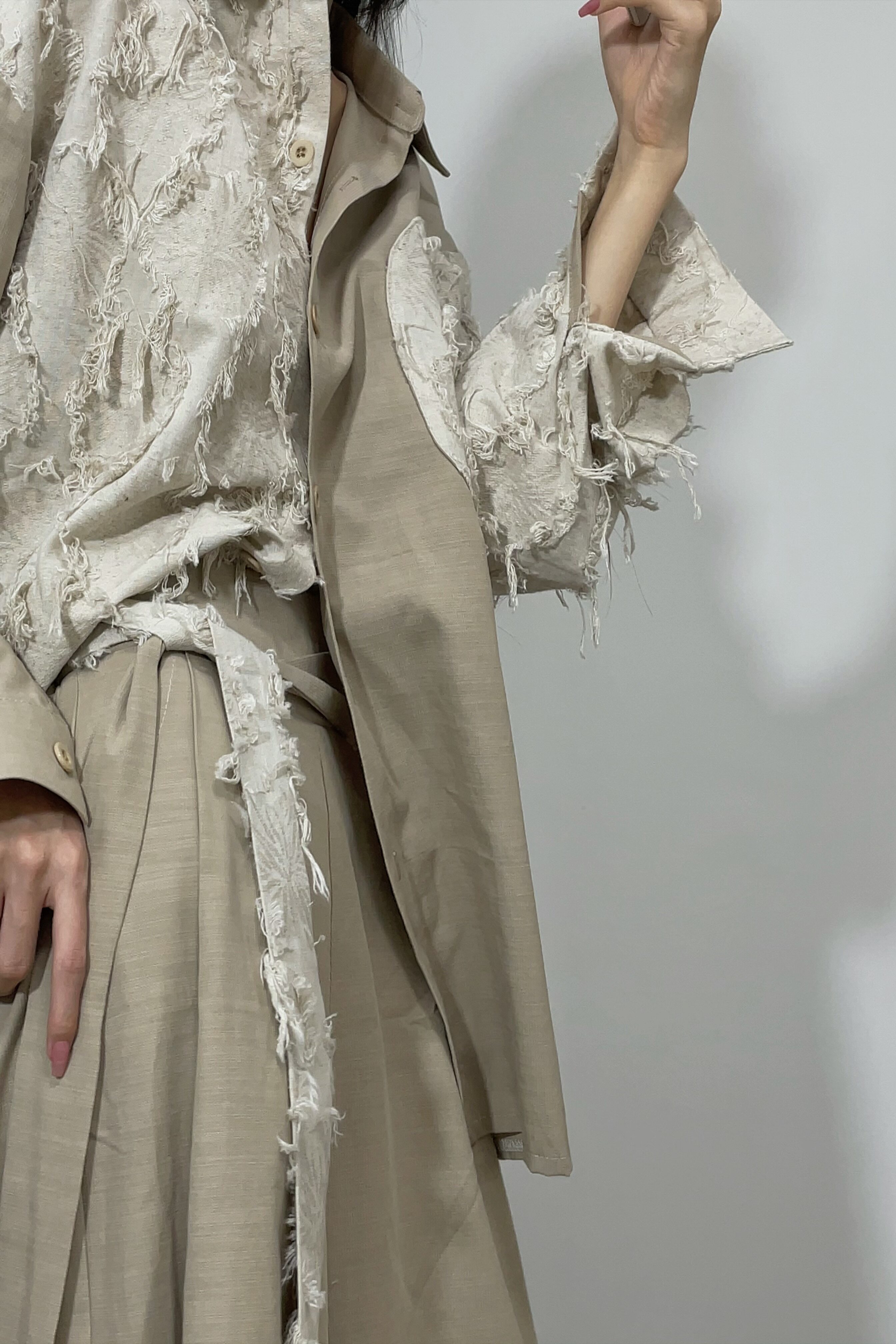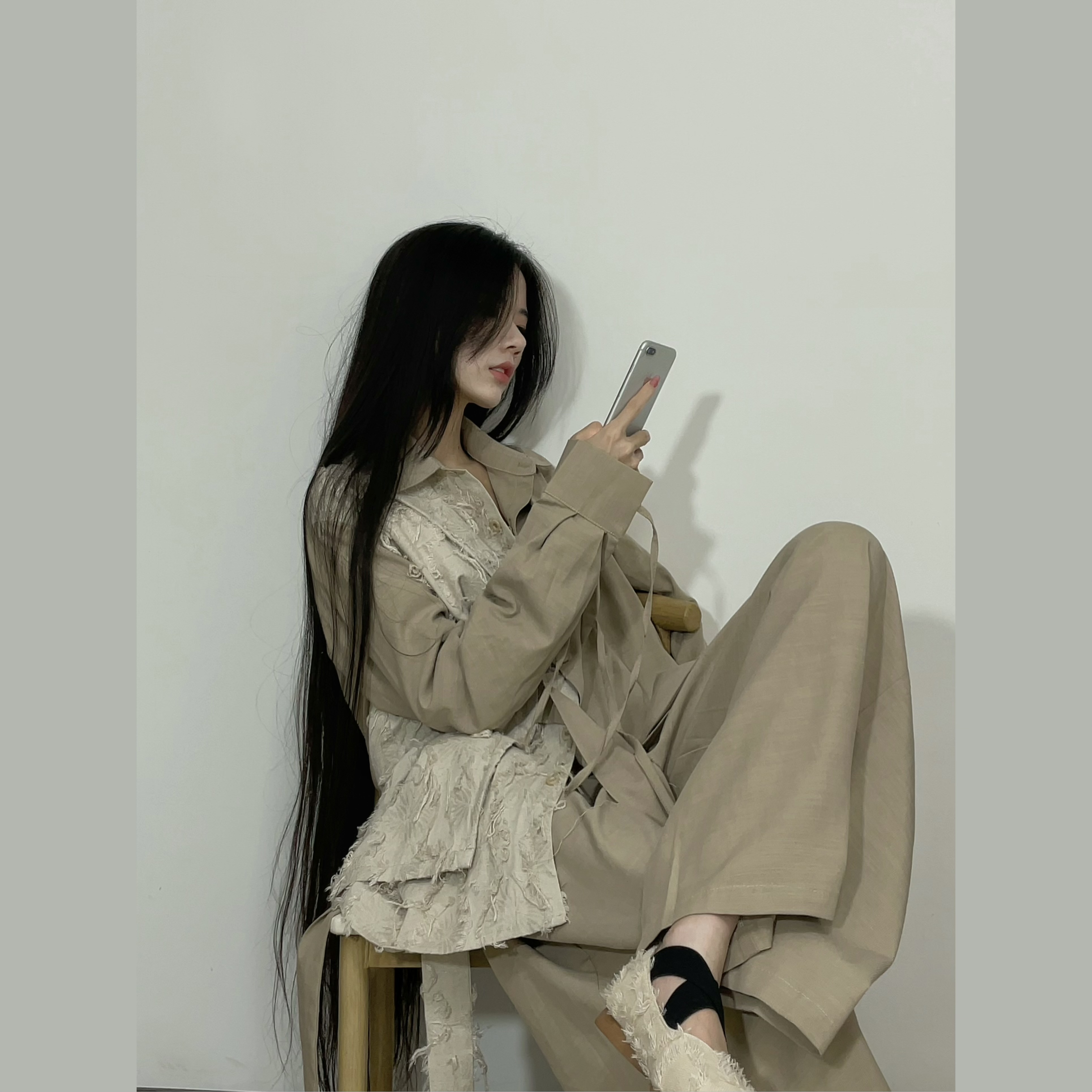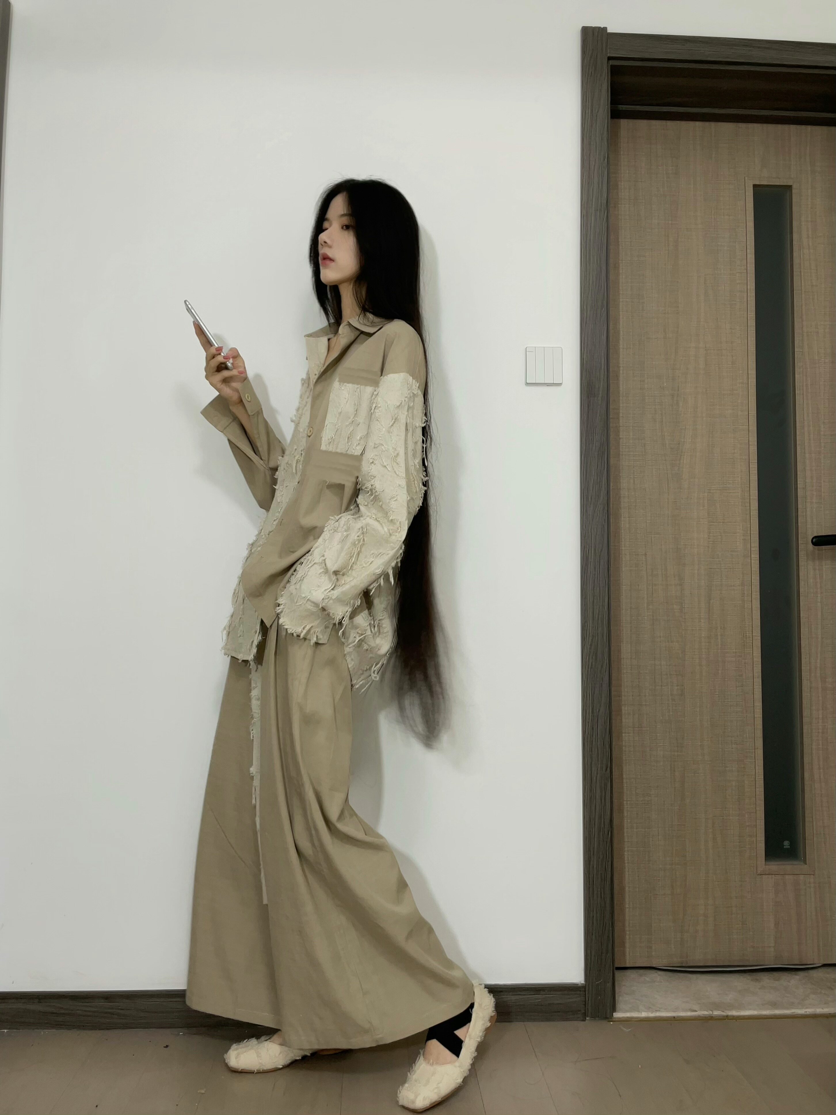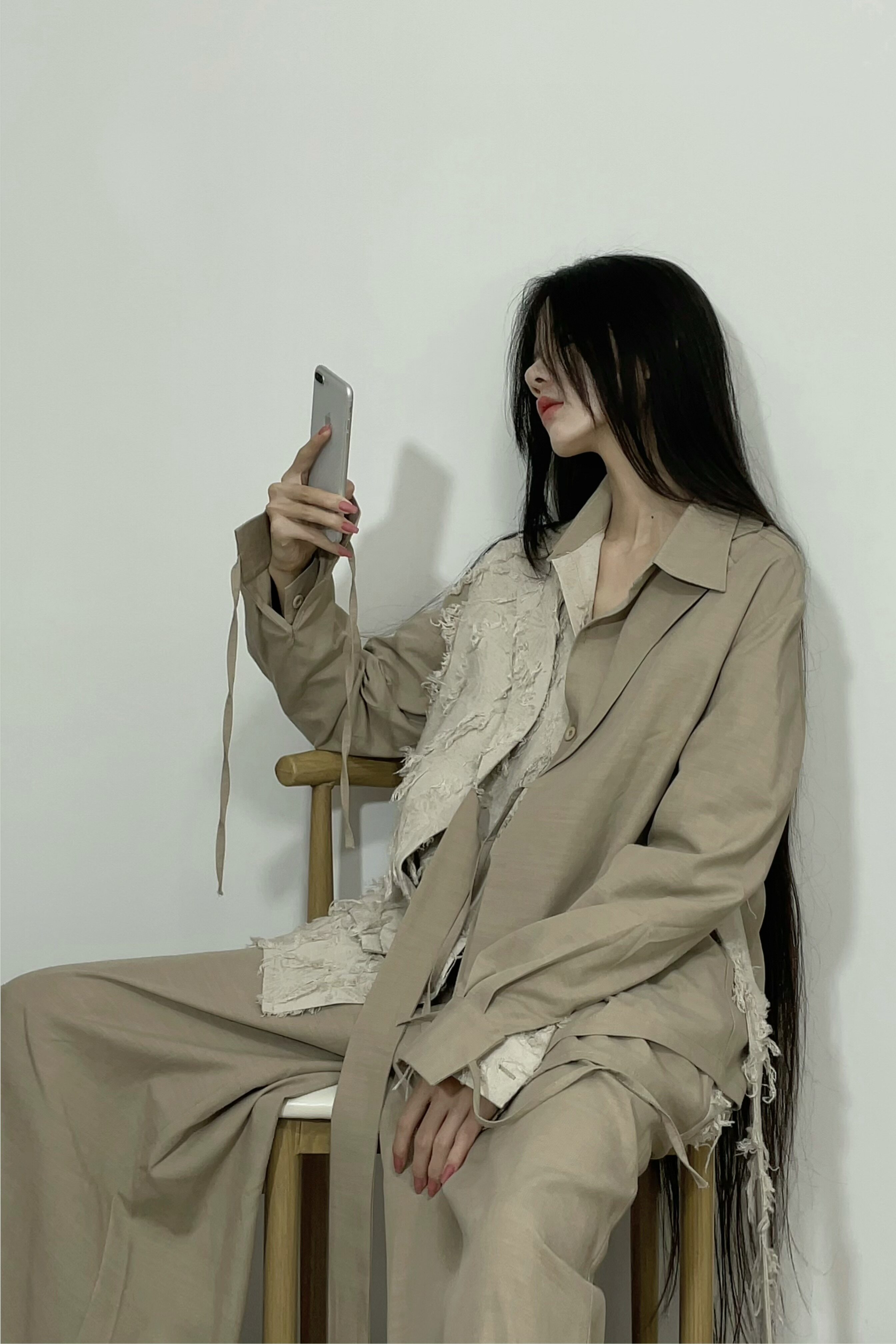 【錄.迎風】新中式亞麻飄帶半鬆緊闊腿褲