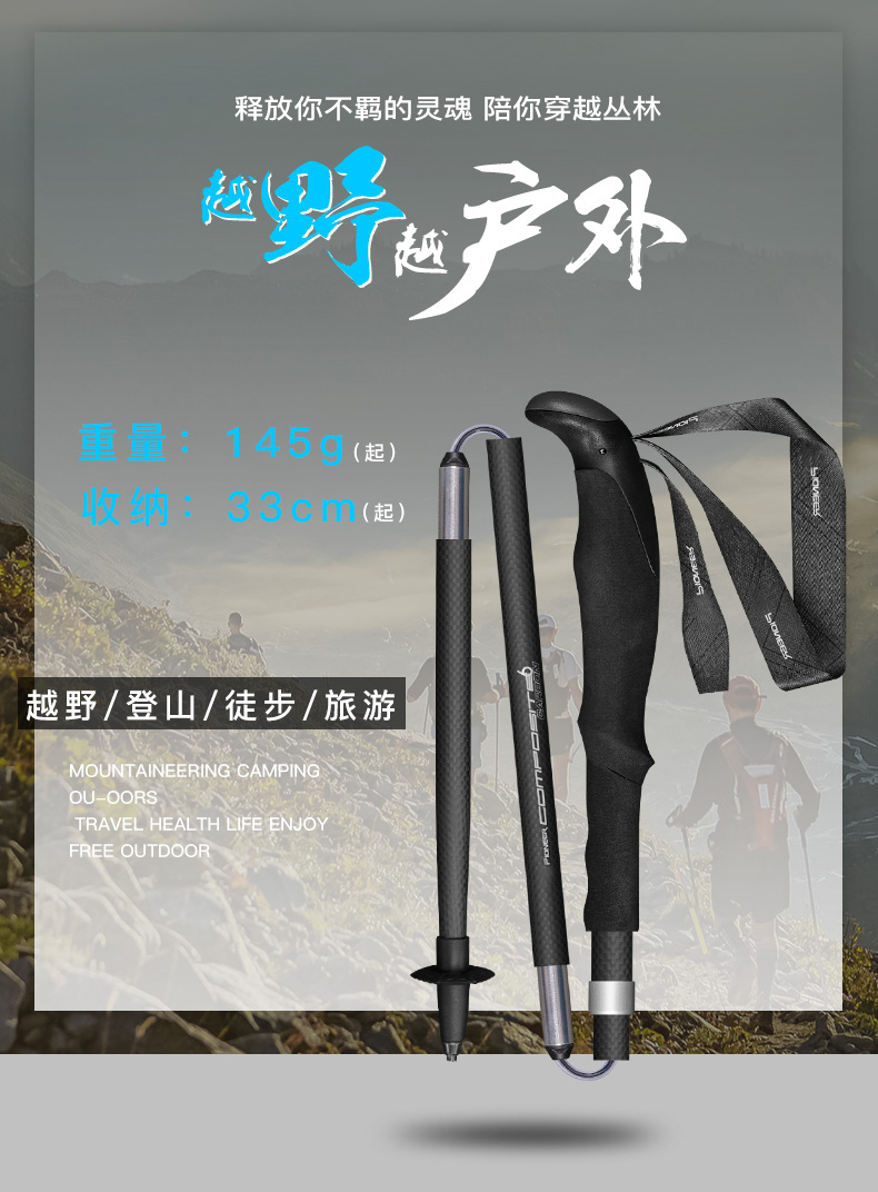 開拓者越野跑摺疊杖 99%碳素超輕手杖戶外碳纖維登山杖 順豐包郵