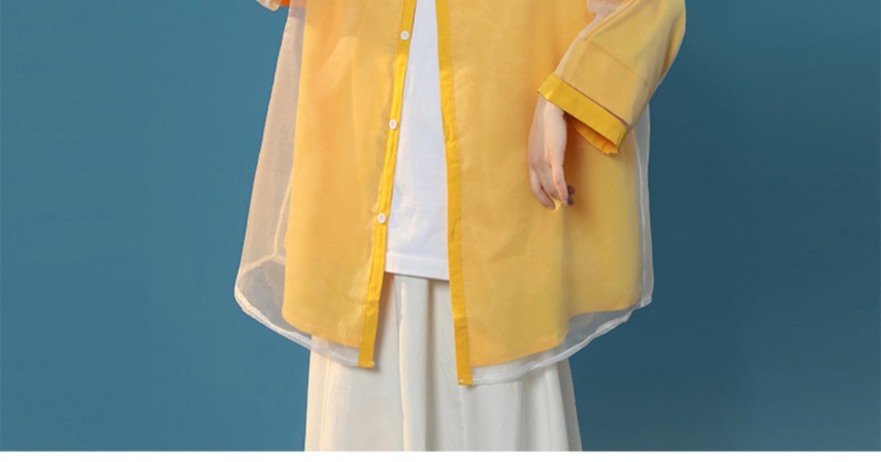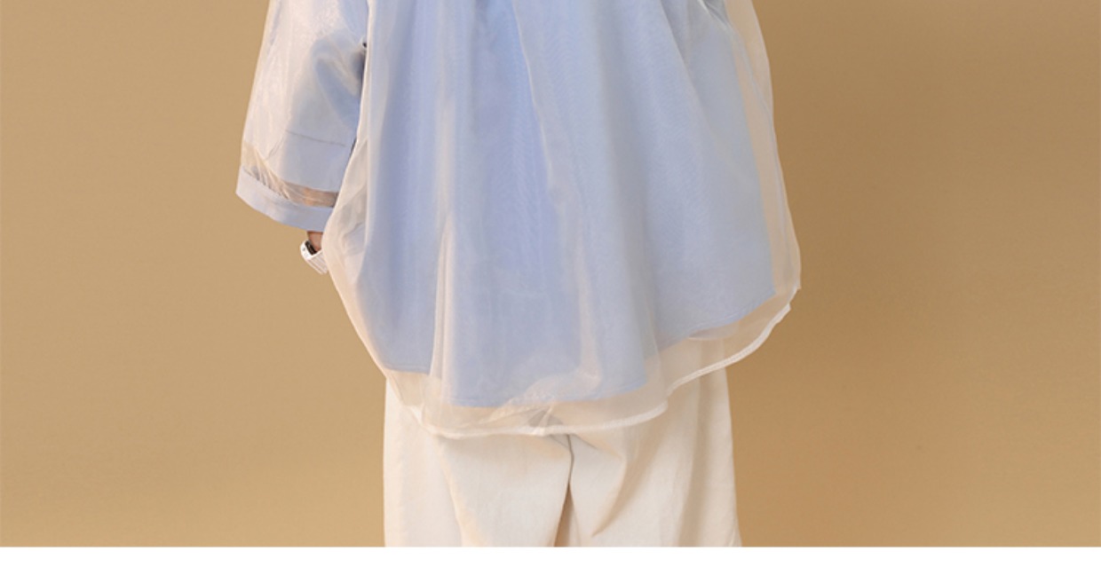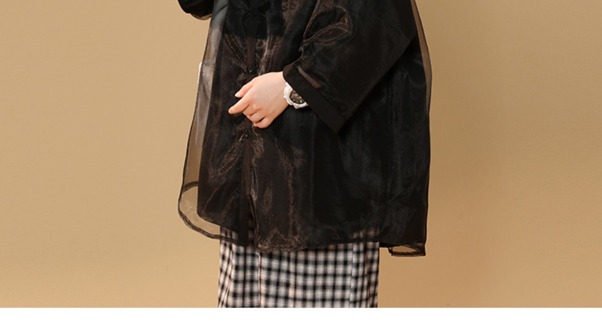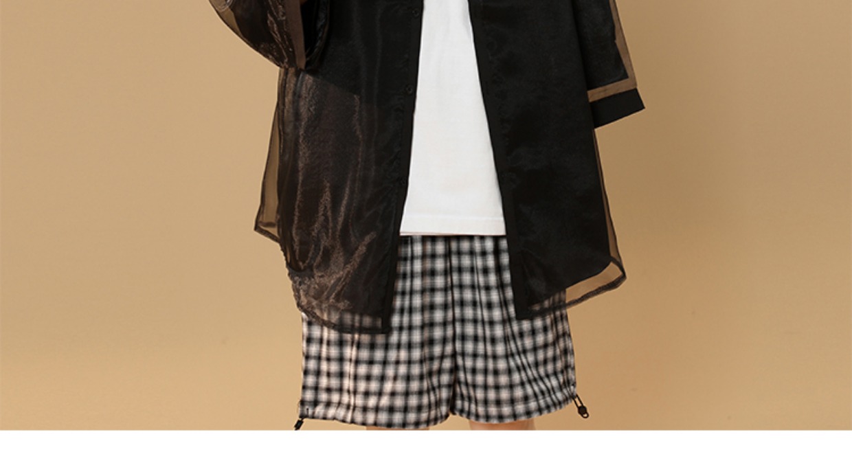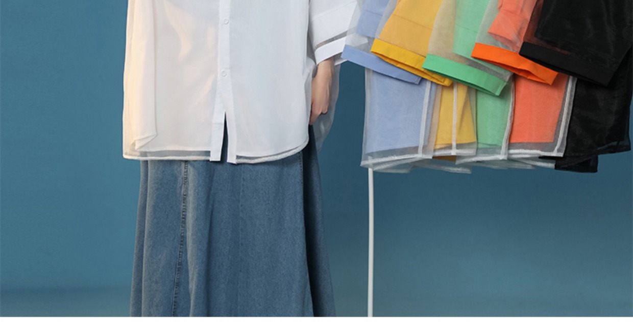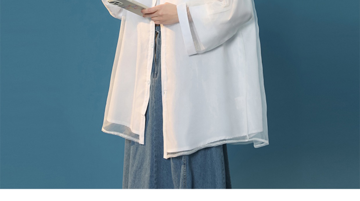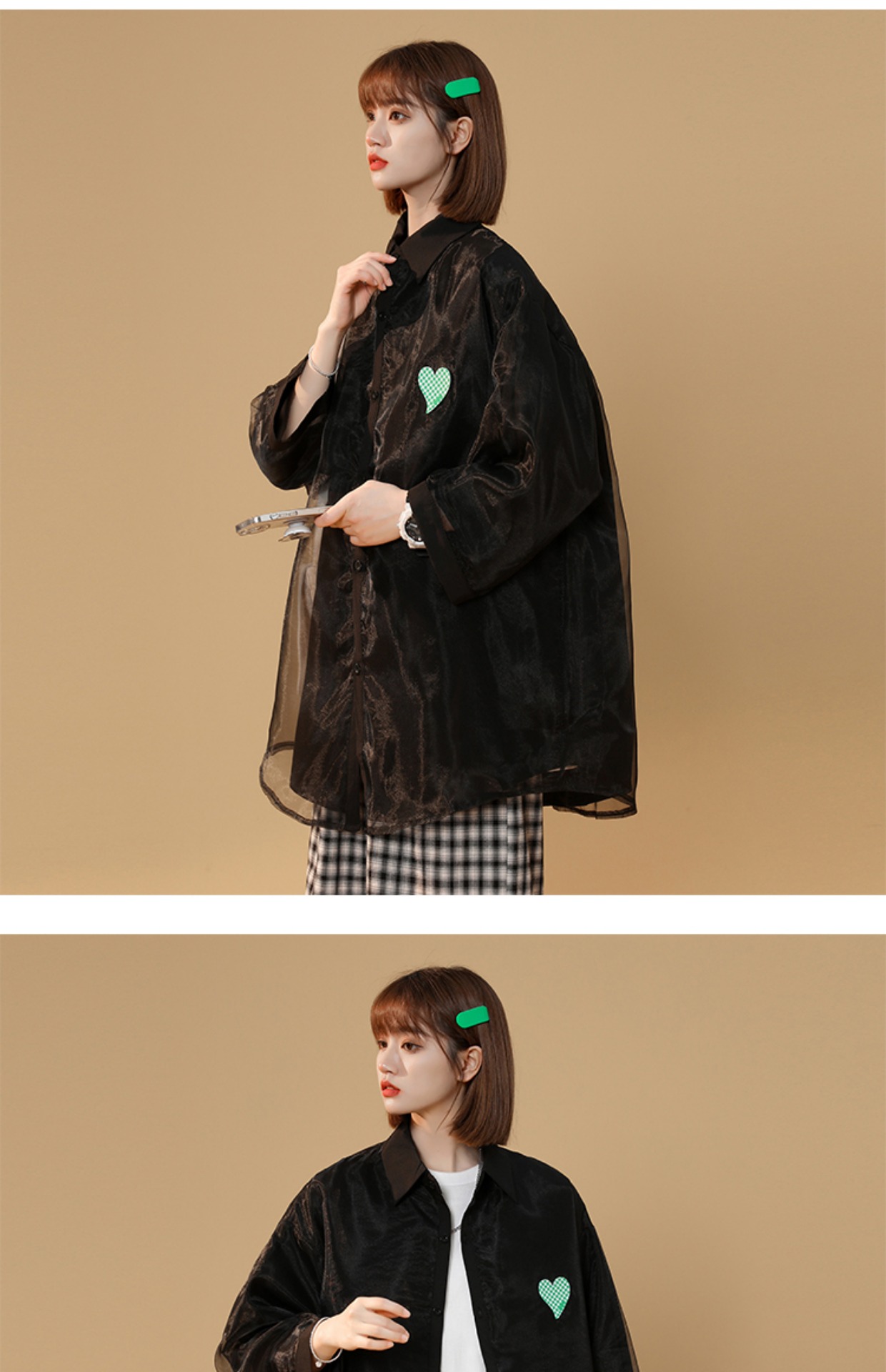 牛油果綠襯衫女短袖夏季薄款假兩件網紗防衫衣女中性風九分袖外套