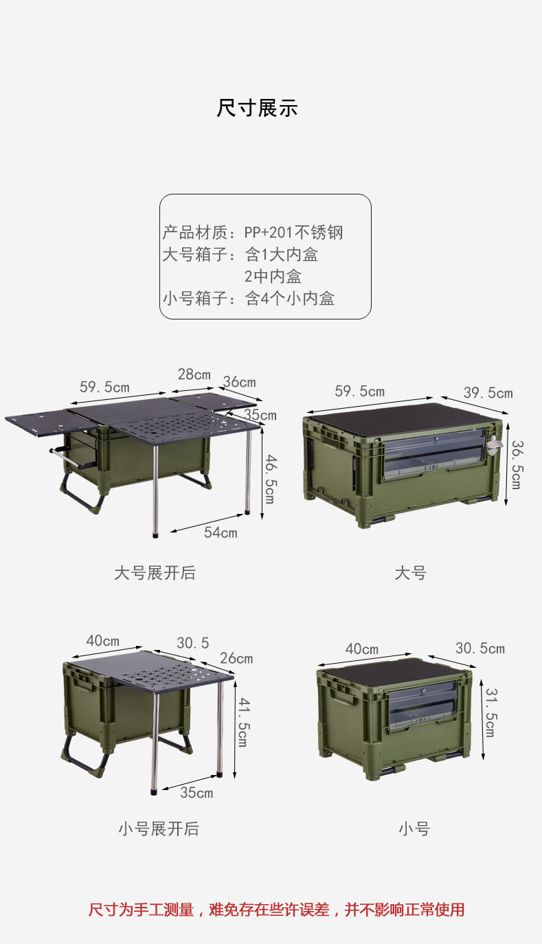顏色分類 灰小號收納箱,白色小號收納箱,軍綠小號收納箱,灰色大號收納箱,白色大號收納箱,綠色收納箱大號,軍綠小號 送4小內盒,軍綠色大號有三個桌板和內盒