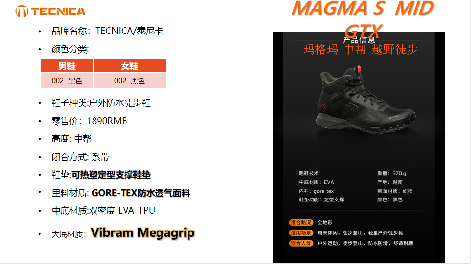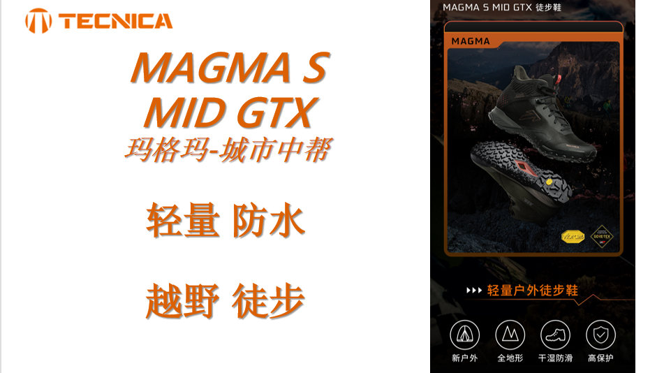 泰尼卡 MAGMA S MID GTX MS男女中筒防水透氣防滑徒步鞋登山鞋