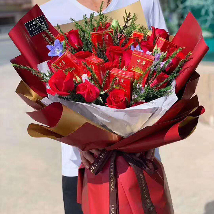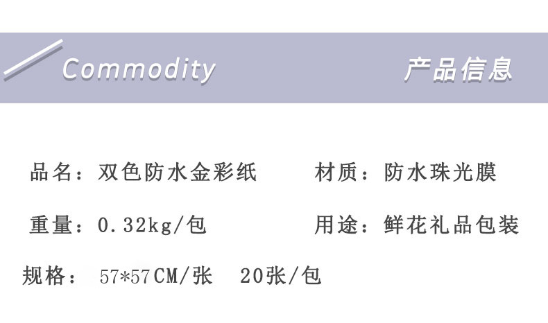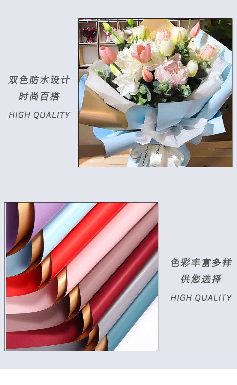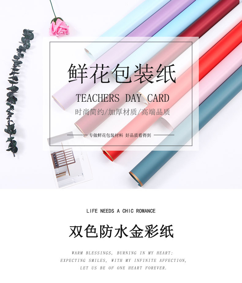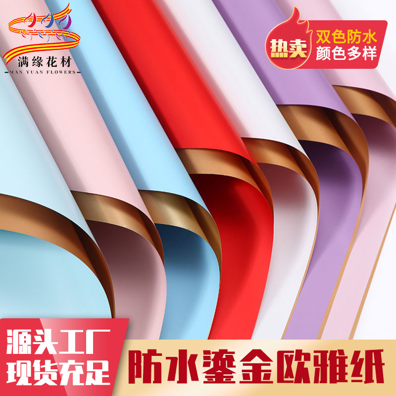 双色鲜花包装纸花束包装材料金色防水欧雅纸厚7丝韩菲纸鎏金彩纸