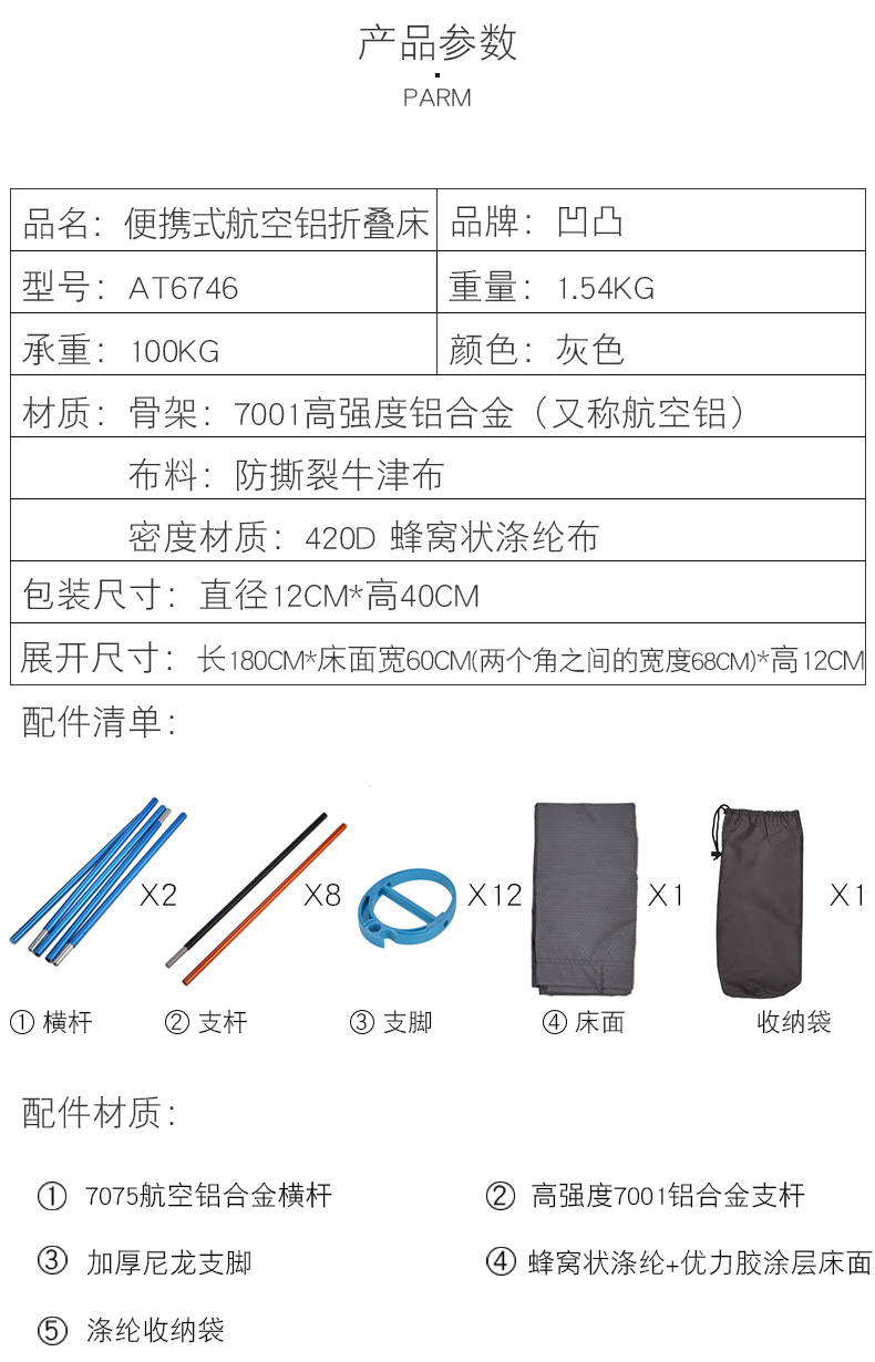 超輕摺疊牀簡易陪護牀單人戶外離地牀鋁合金可攜式加固行軍牀午睡