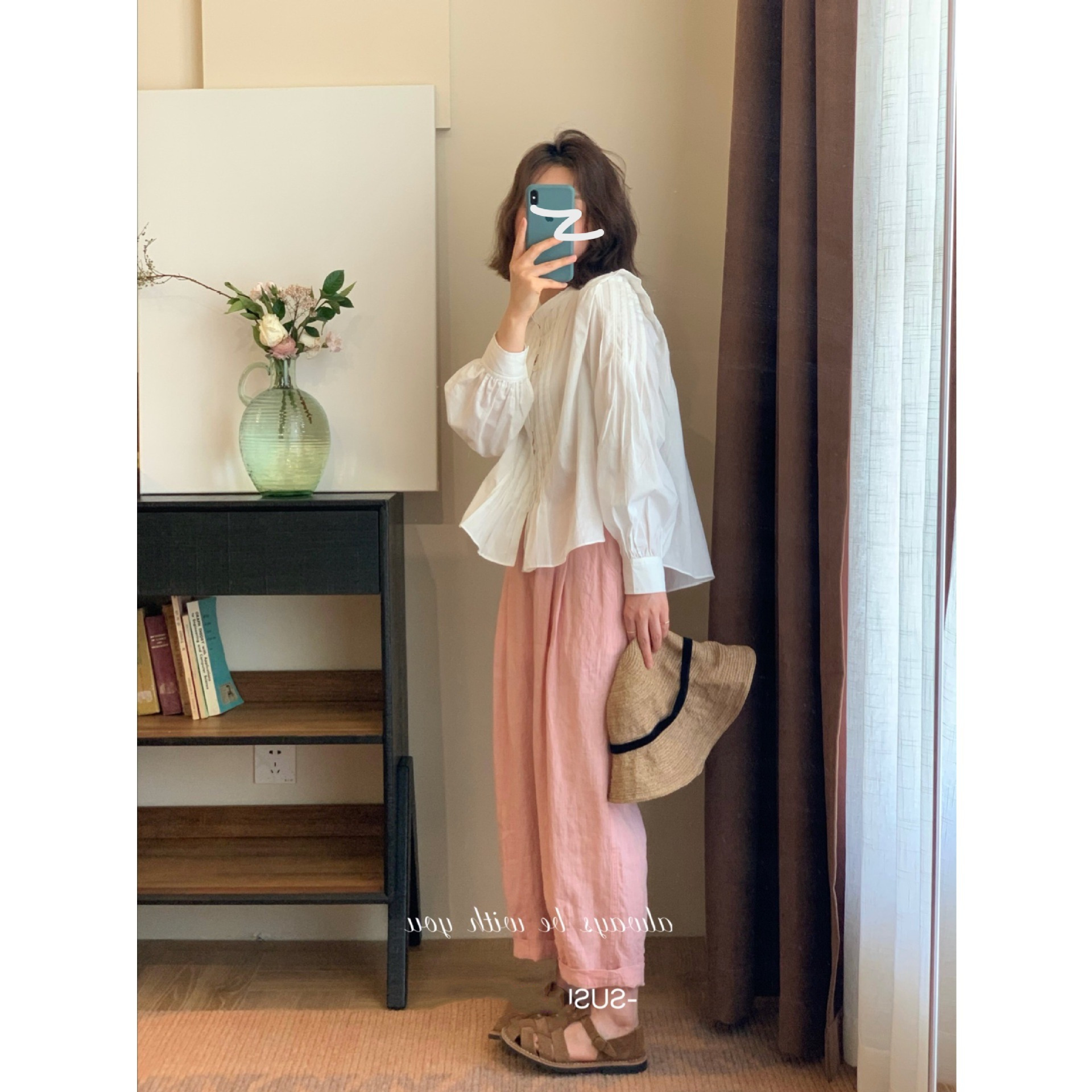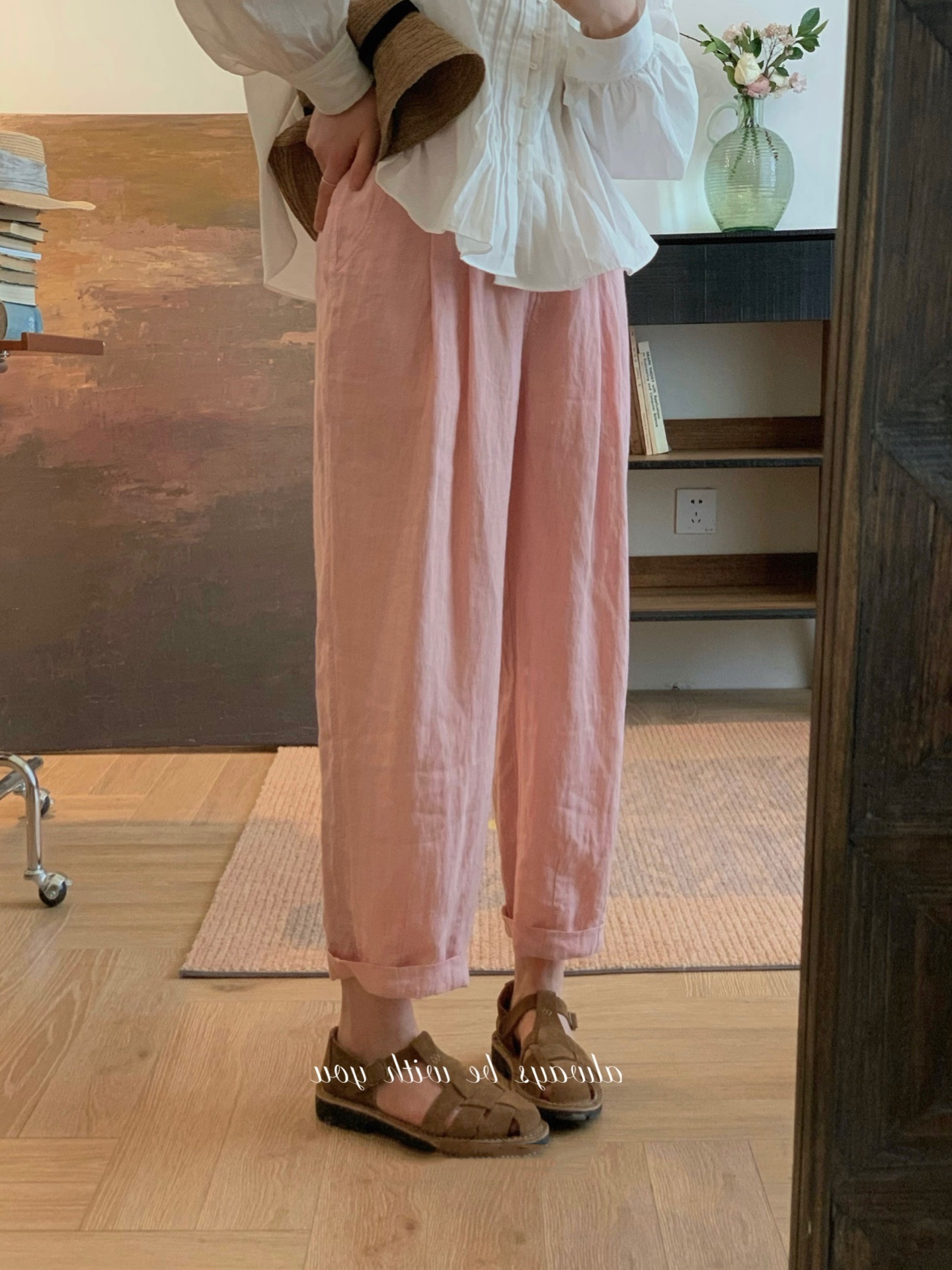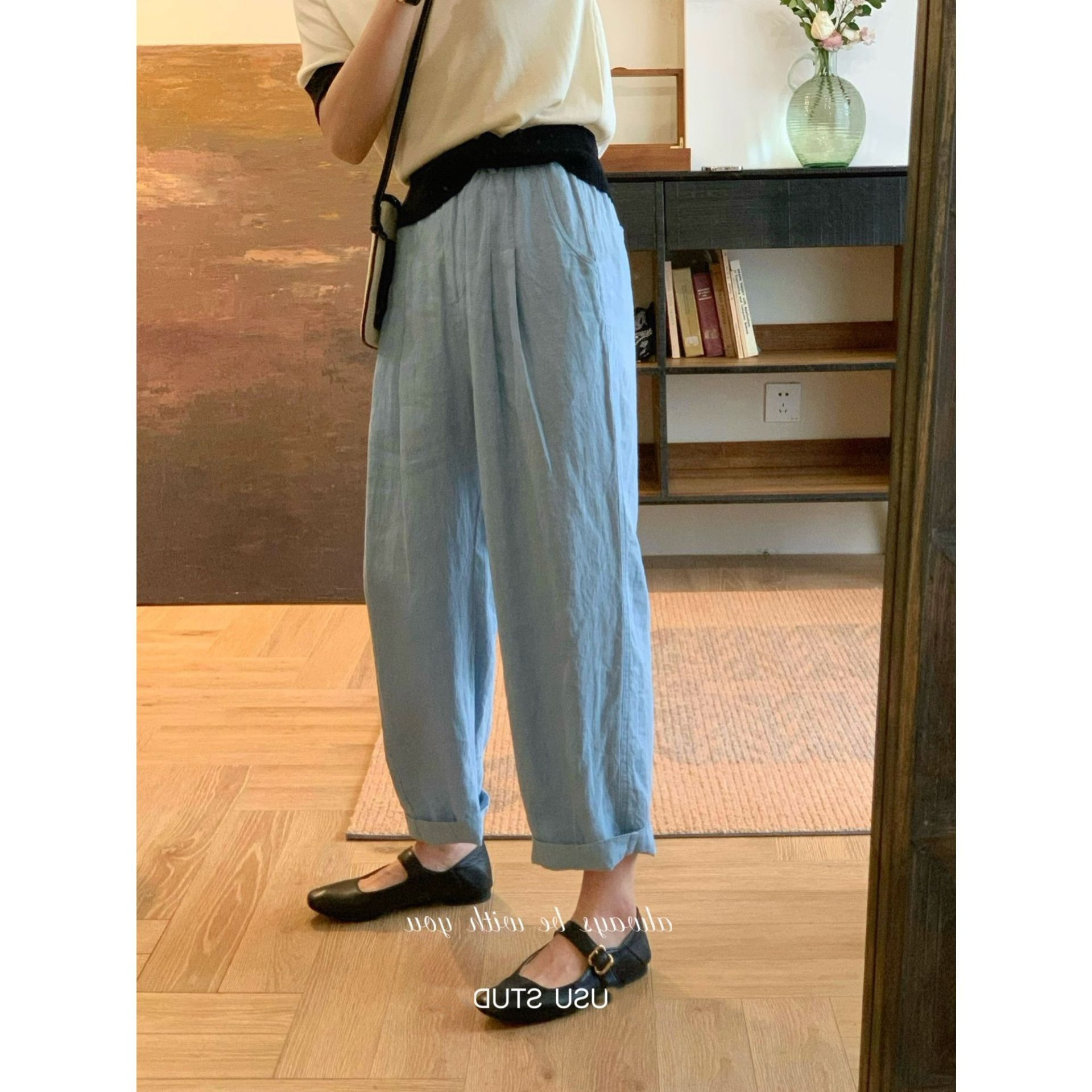 网红 夏天就它了 亚麻慵懒薄款阔腿裤宽松直筒灯笼休闲九分裤女