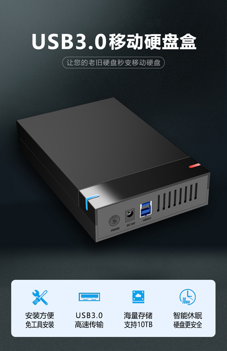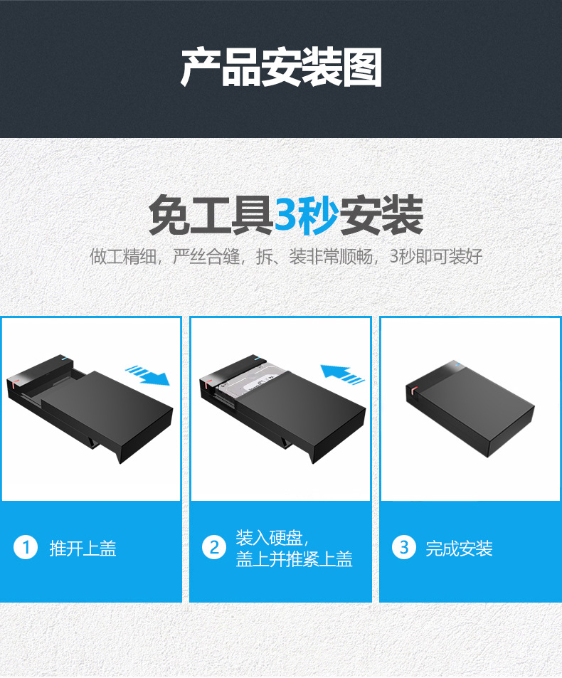 3.5寸推拉串口台式机硬盘USB3.0高速传输免工具外置移动硬盘盒