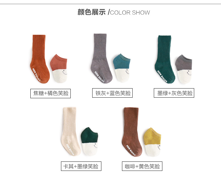20年秋冬新款儿童袜子套装韩版可爱卡通纯色防滑中筒宝宝袜婴儿袜