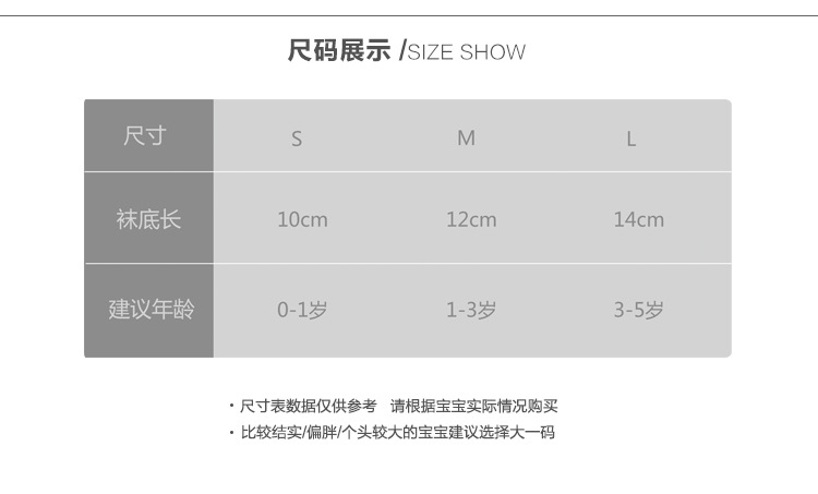 童袜尺码 S 0-1岁,M 1-3岁,L 3-5岁