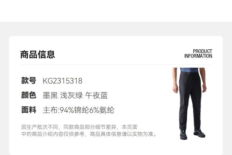 顏色分類 男款2315304黑色T10長褲,男2315304大地色T10長褲,女款2315404黑色T10長褲,2315318墨黑色拉鍊口袋,2315318淺灰綠拉鍊口袋,2315318午夜藍拉鍊口袋,KG2319306輕薄款墨黑,KG2319306輕薄款午夜藍,KG2319306輕薄款米褐色
