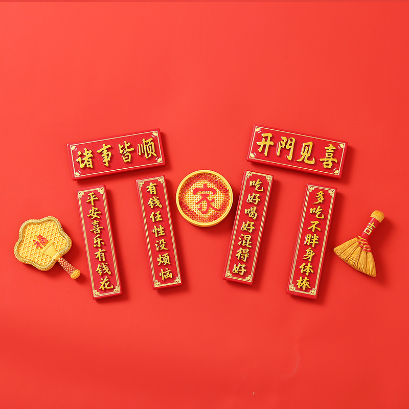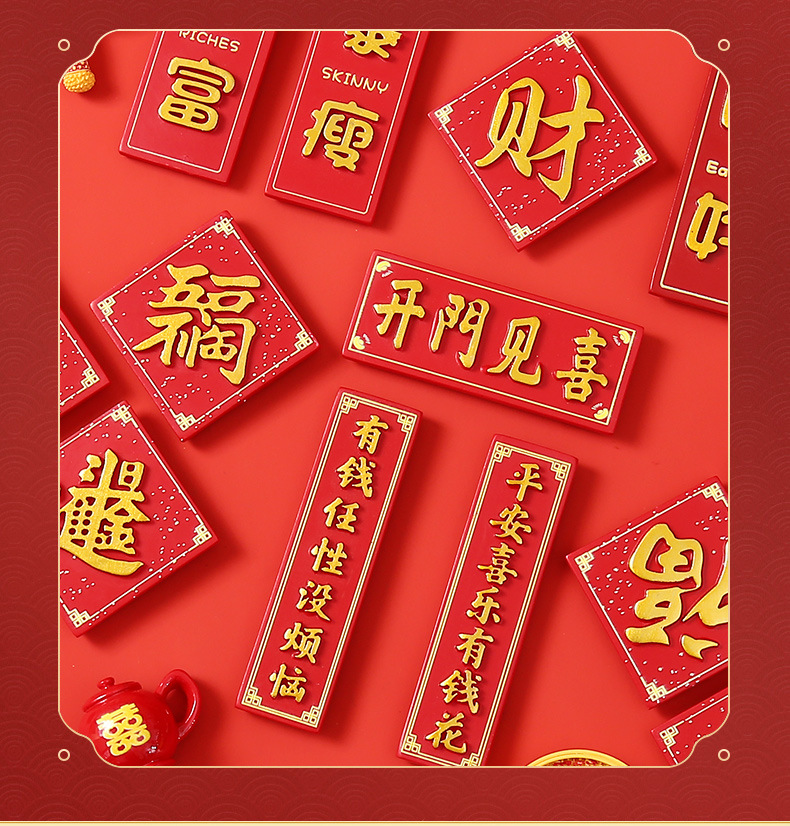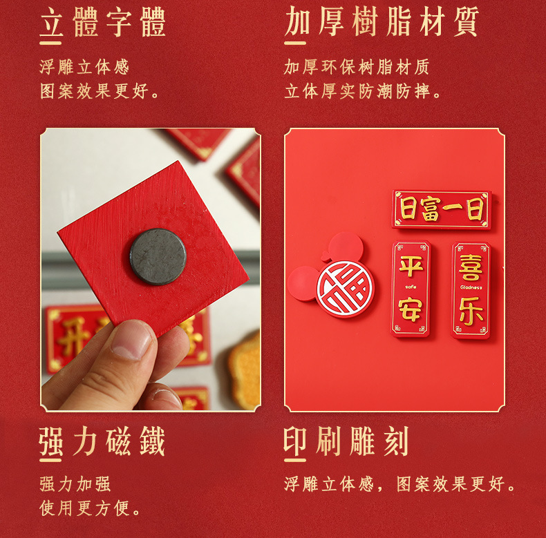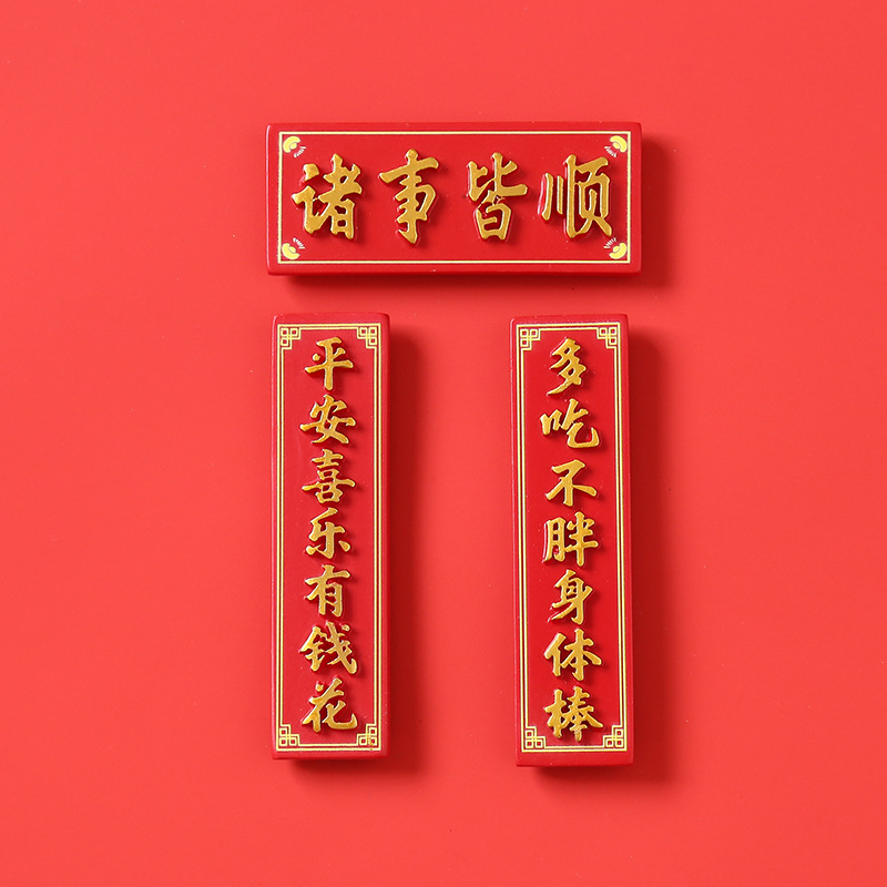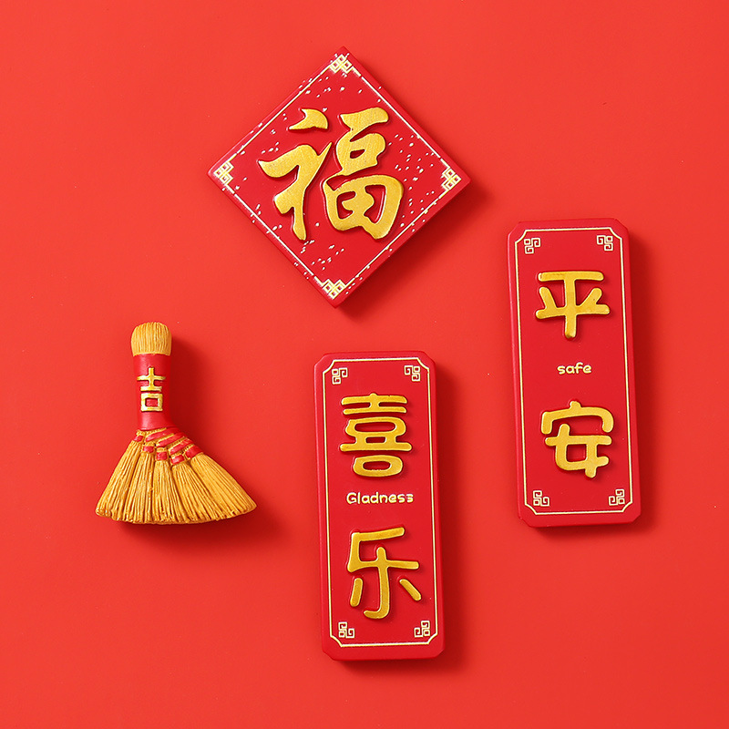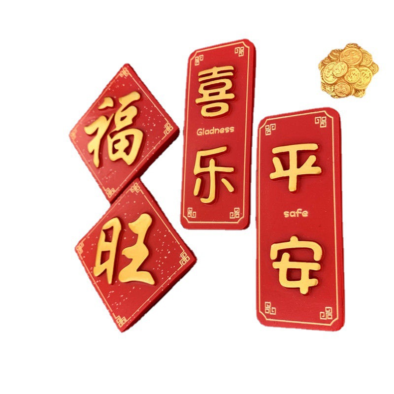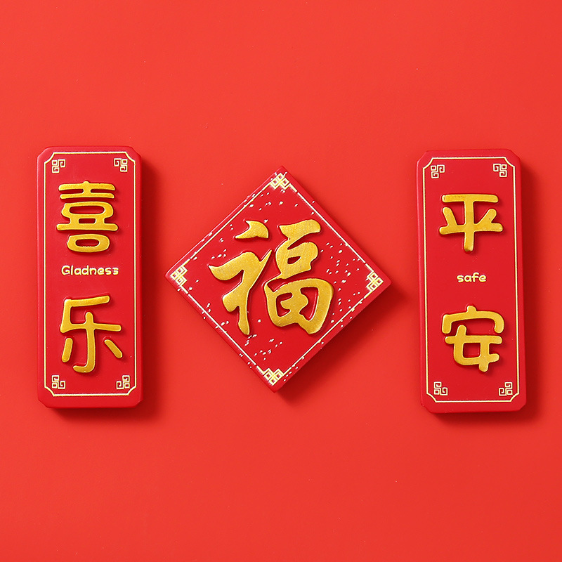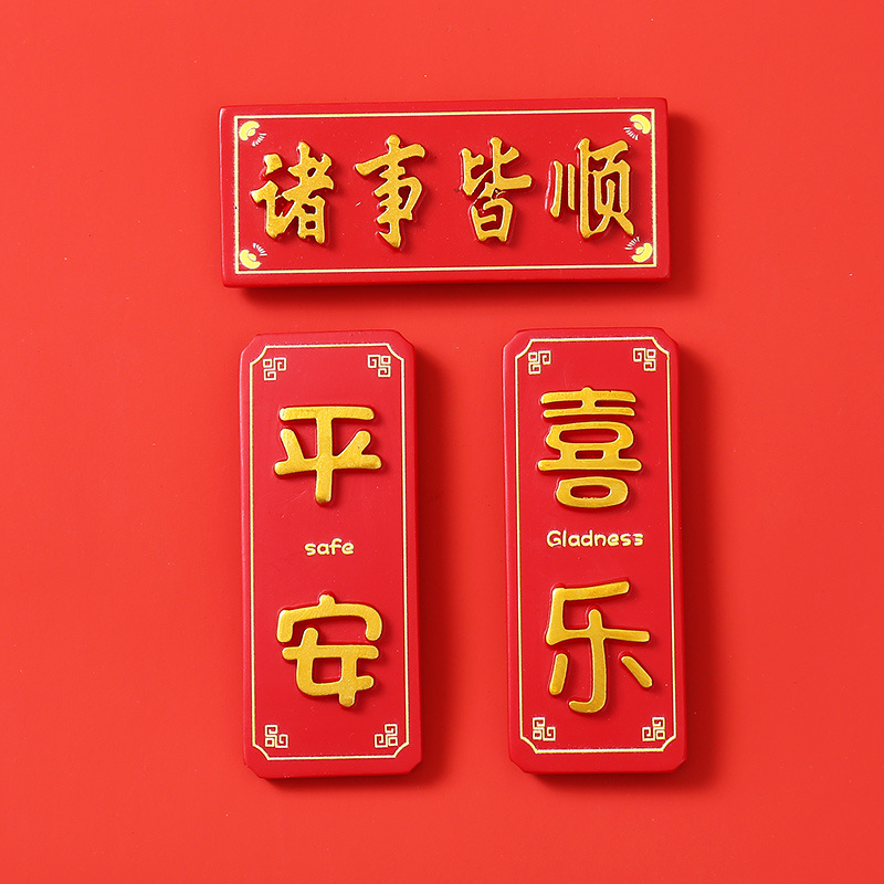 创意冰箱贴红色喜庆平安喜乐吃好喝好牌匾3d立体冰箱贴装饰品