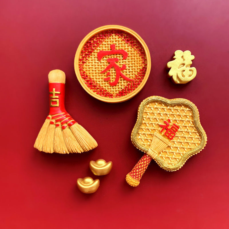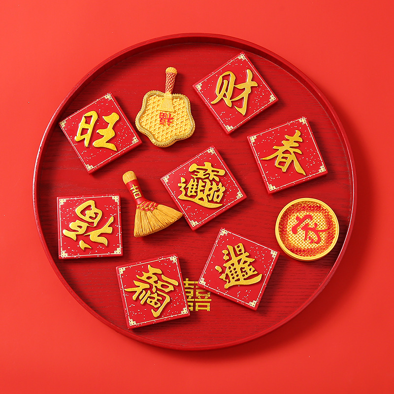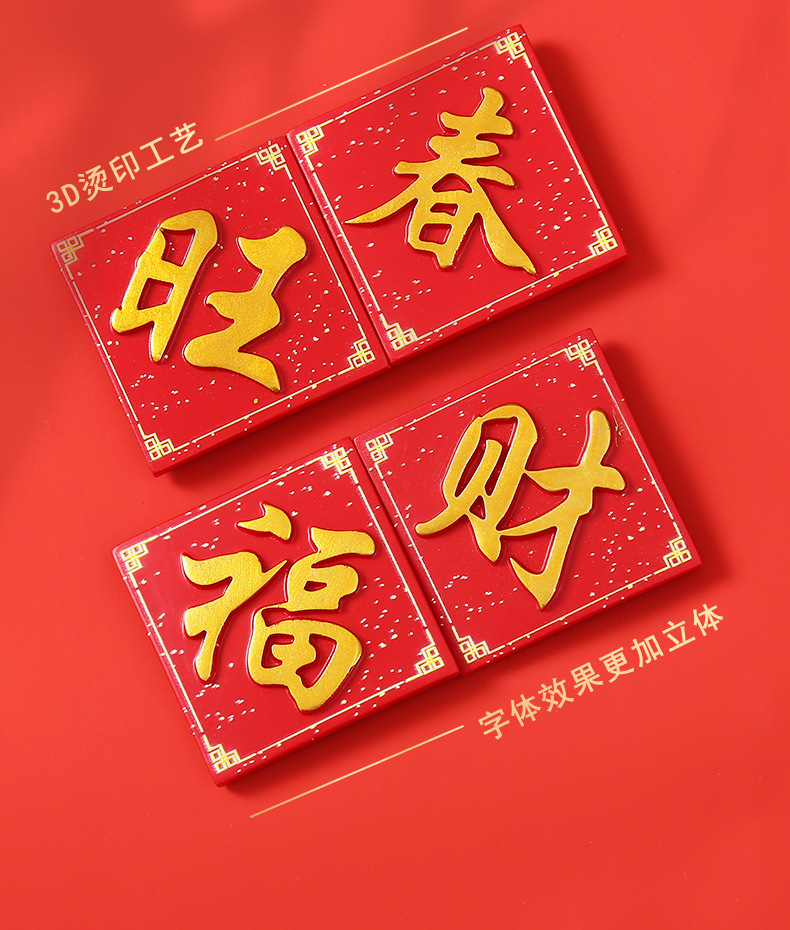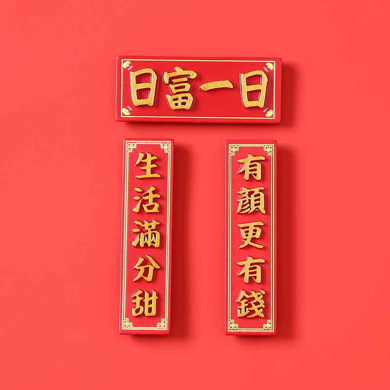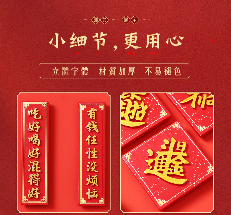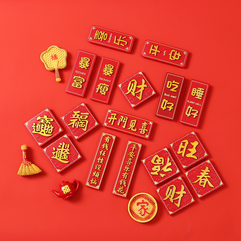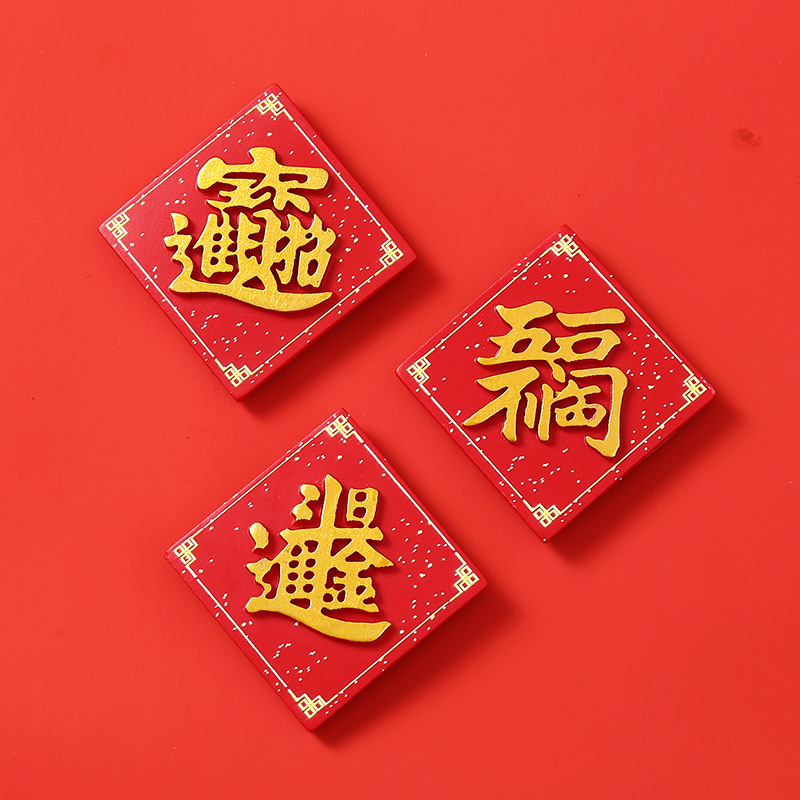 创意冰箱贴红色喜庆平安喜乐吃好喝好牌匾3d立体冰箱贴装饰品