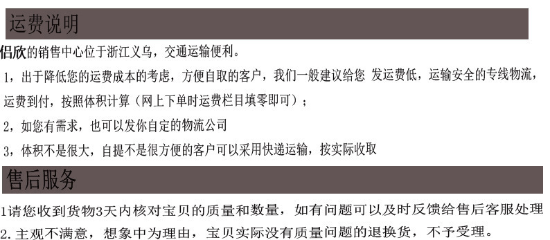 义乌市侣欣秉承为客户服务的理念,专注于日用家居的网络批发,以高性价比的产品和的服务为广大新老客户提供一站式的网购体验。我们致力于标准、规范的流程,用心倾听您的声音,我们相信好的产品会说话,我们相信口碑比营销更重要。我们诚信为本,用心服务。