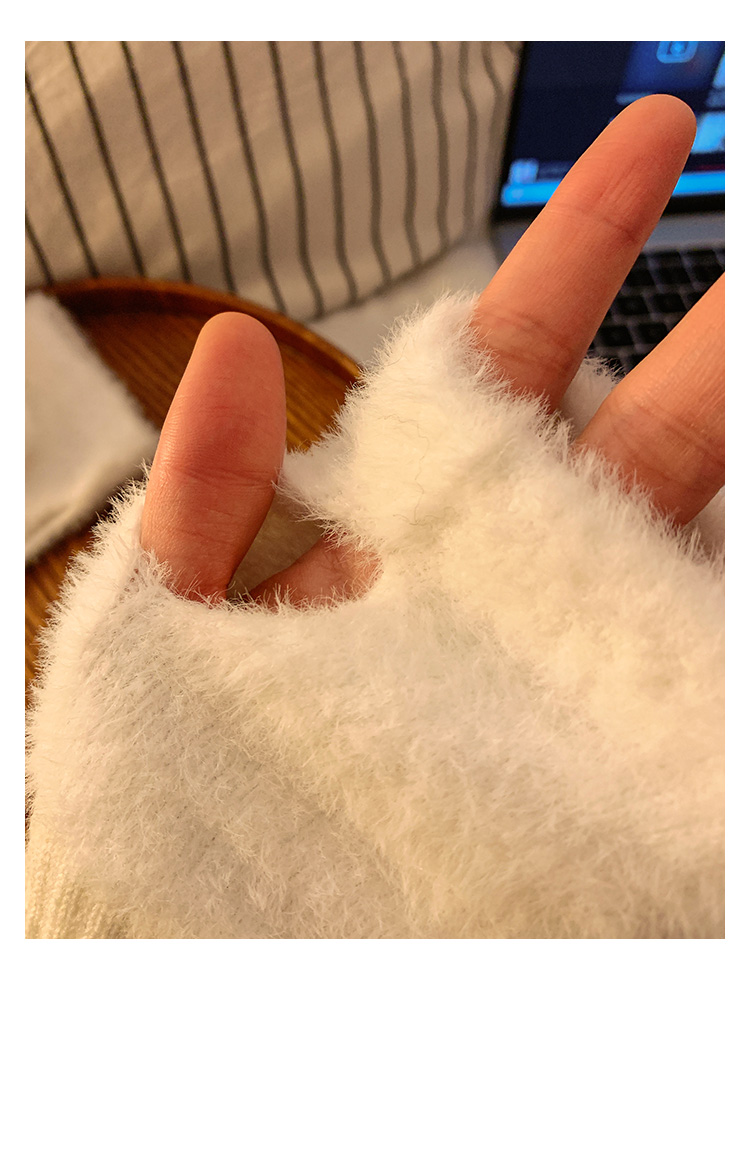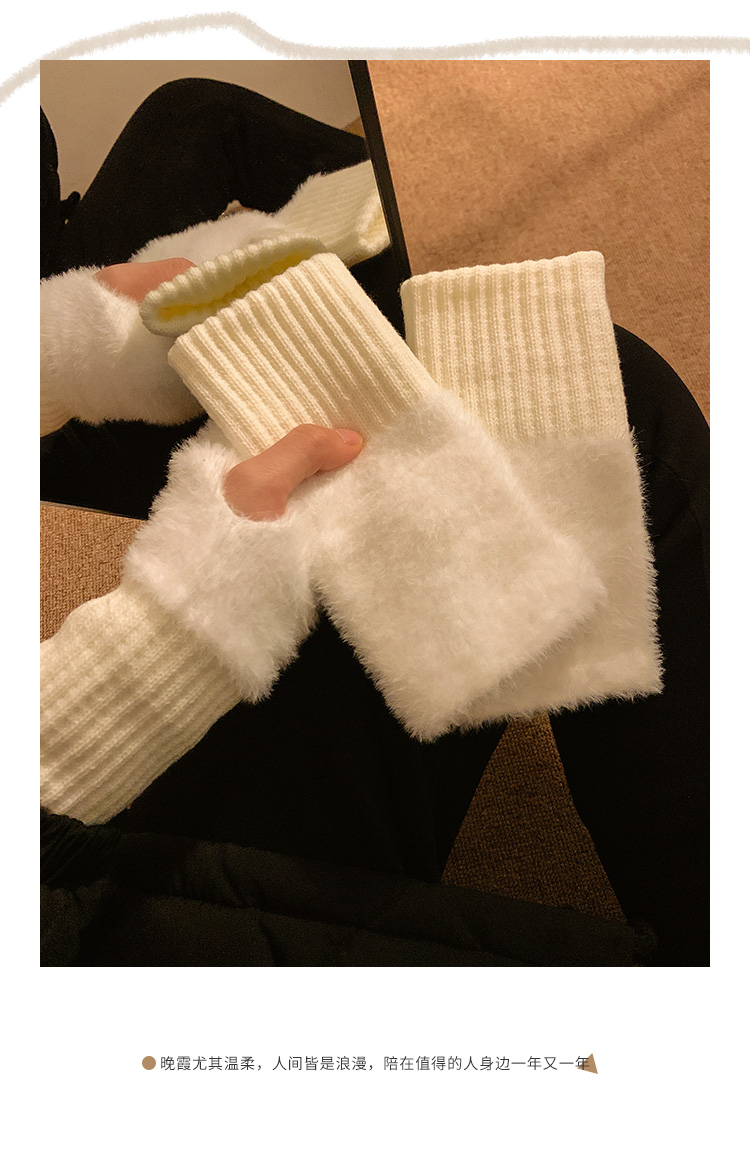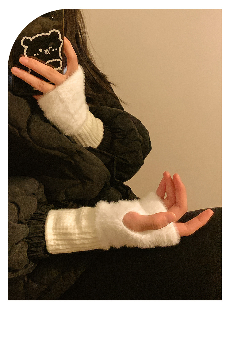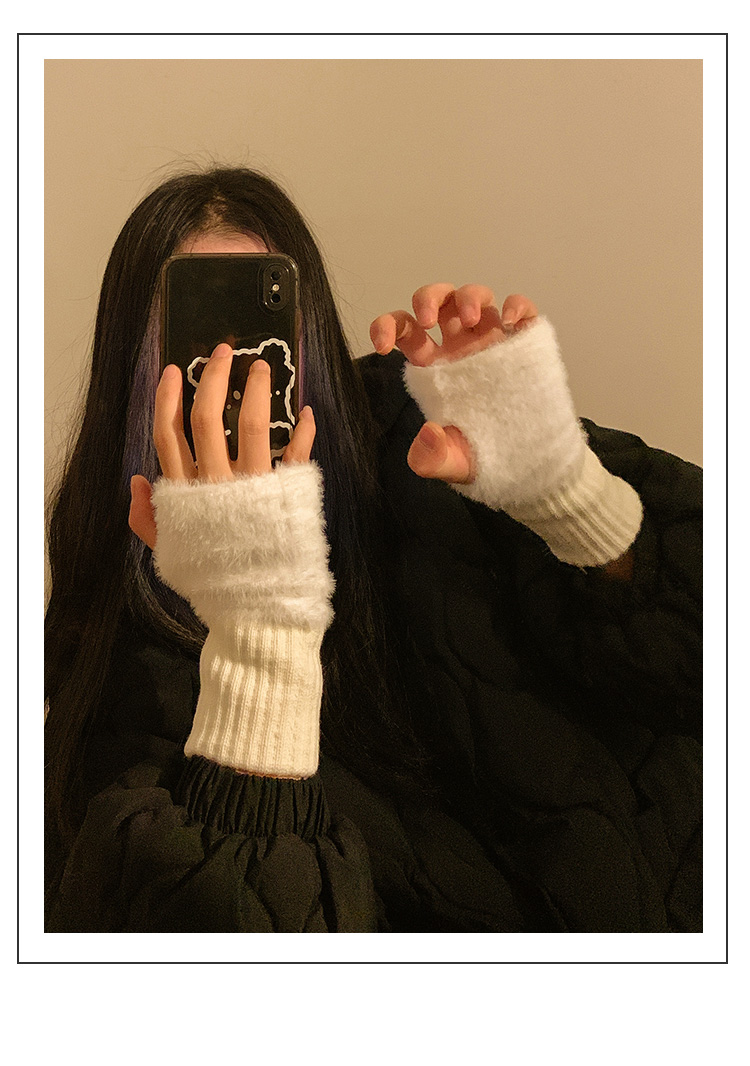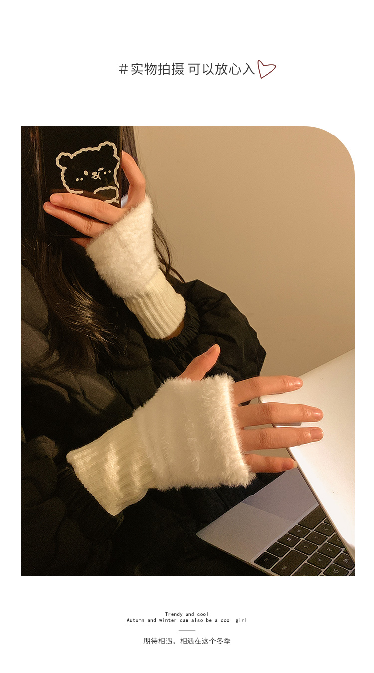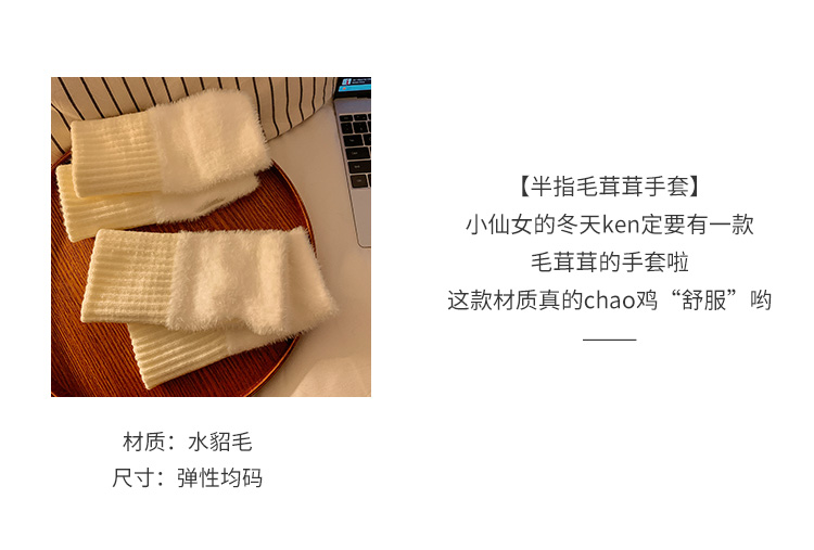 半指毛絨手套女士冬季毛茸茸保暖加絨半截露指學生寫字無指護腕套
