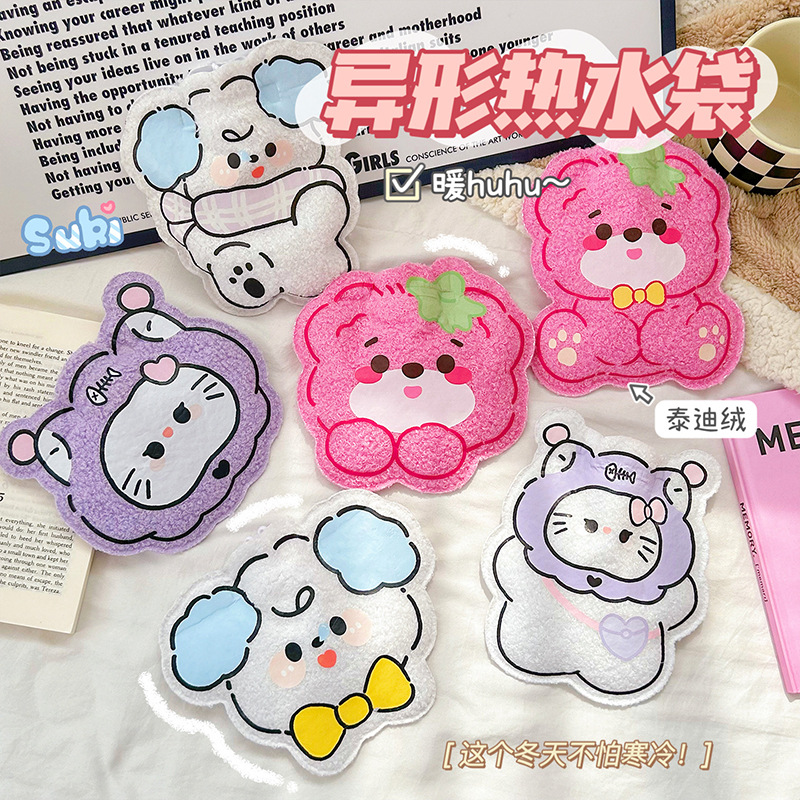 可爱异形热水袋卡通毛绒注水暖水袋少女心便携暖手宝冬季暖宝宝