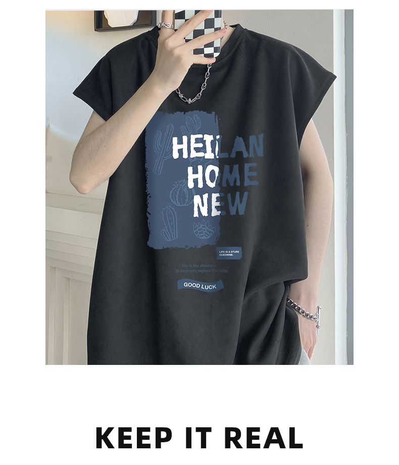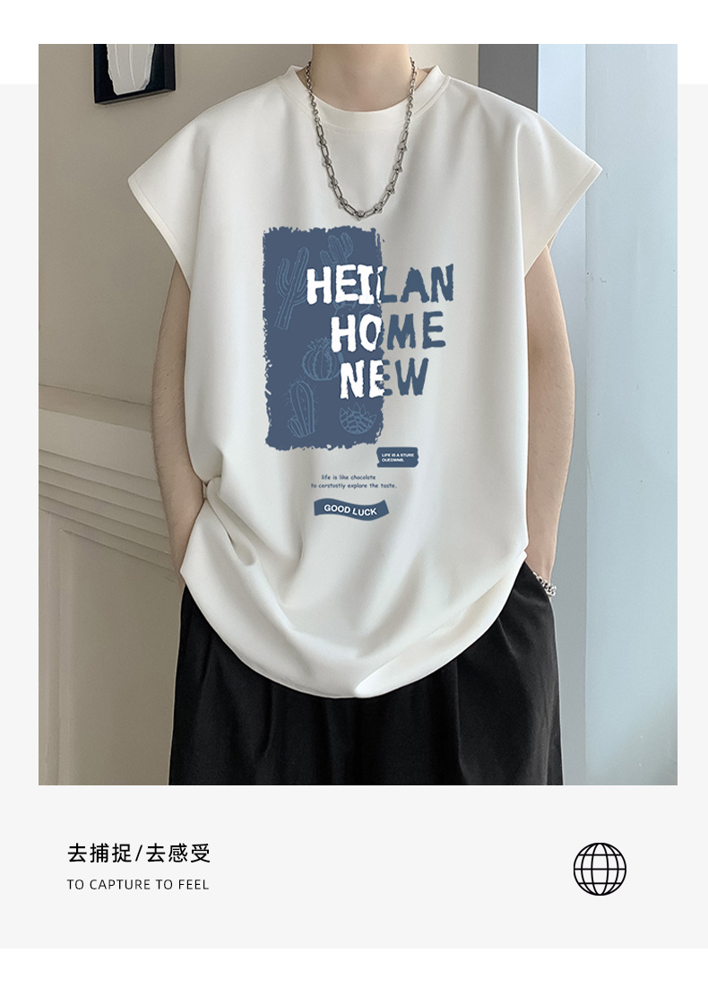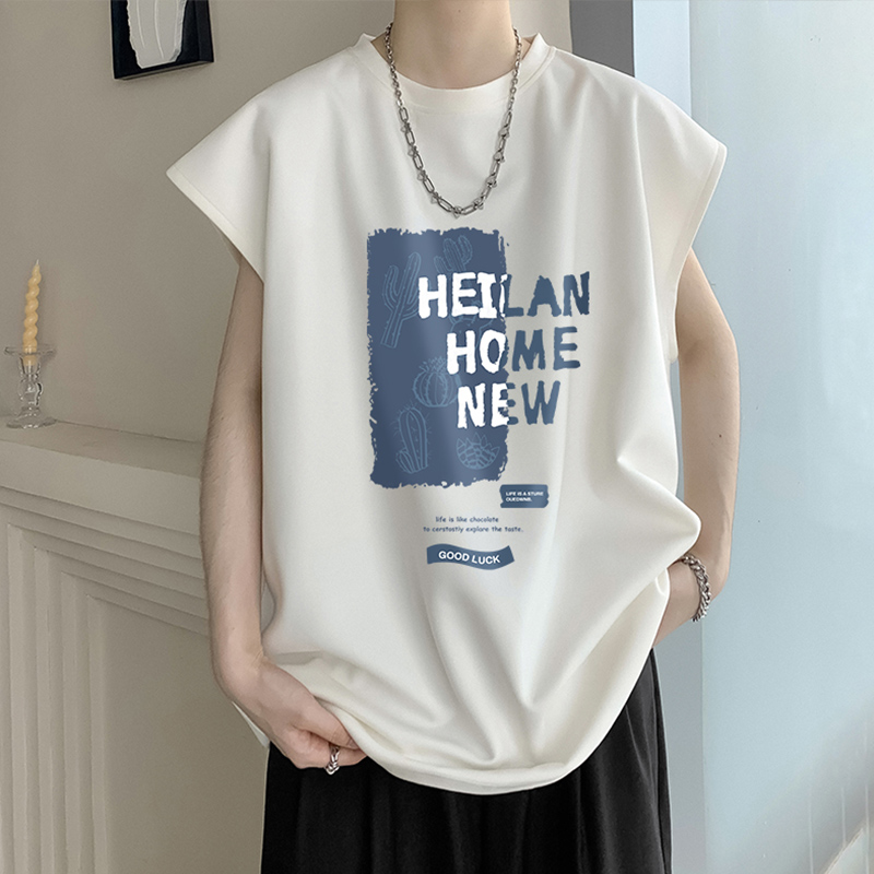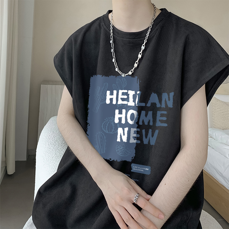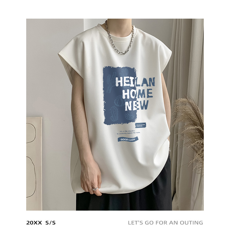 麂皮絨無袖T恤男款夏季寬鬆坎肩背心美式潮牌潮流男生短袖上衣服