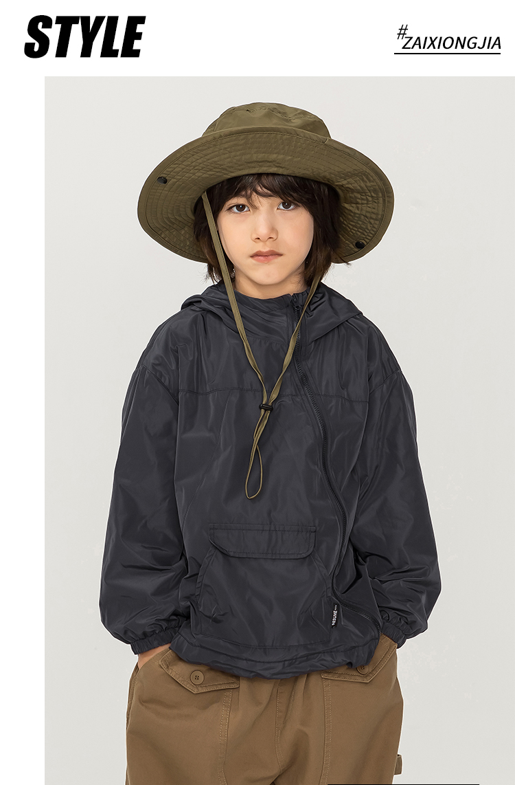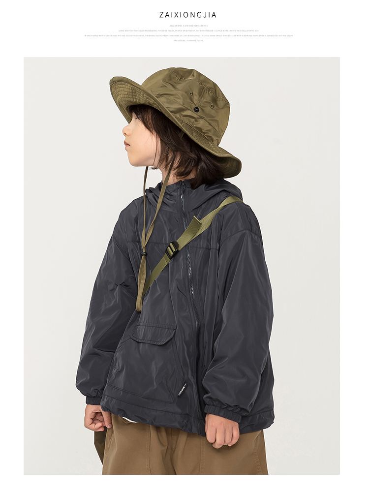 ZAIXONGJIA◆春秋連帽斜拉鍊風衣上衣外套男女童裝套頭有內襯洋派