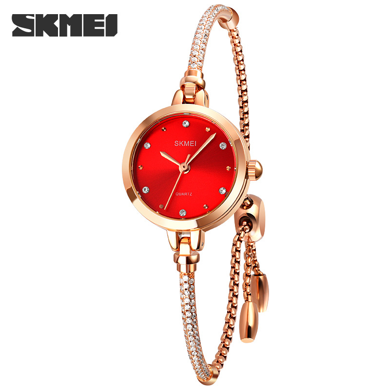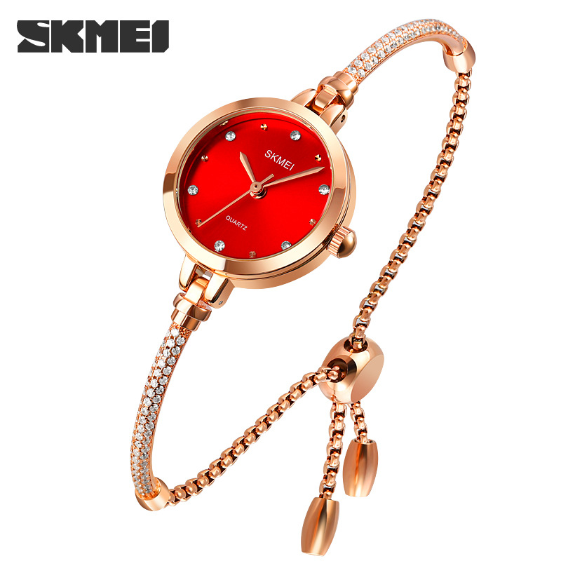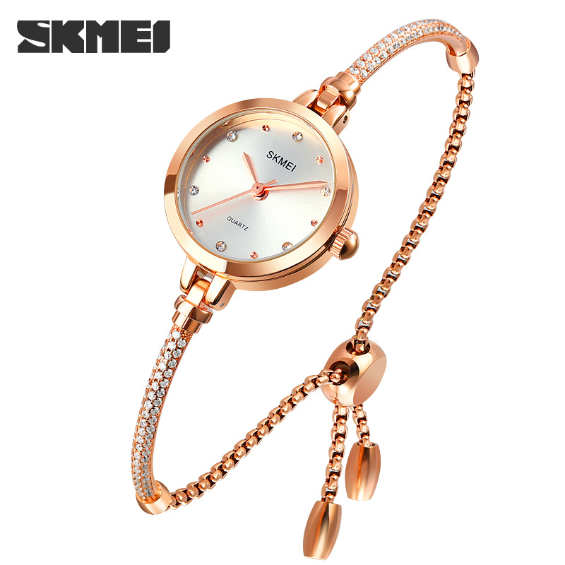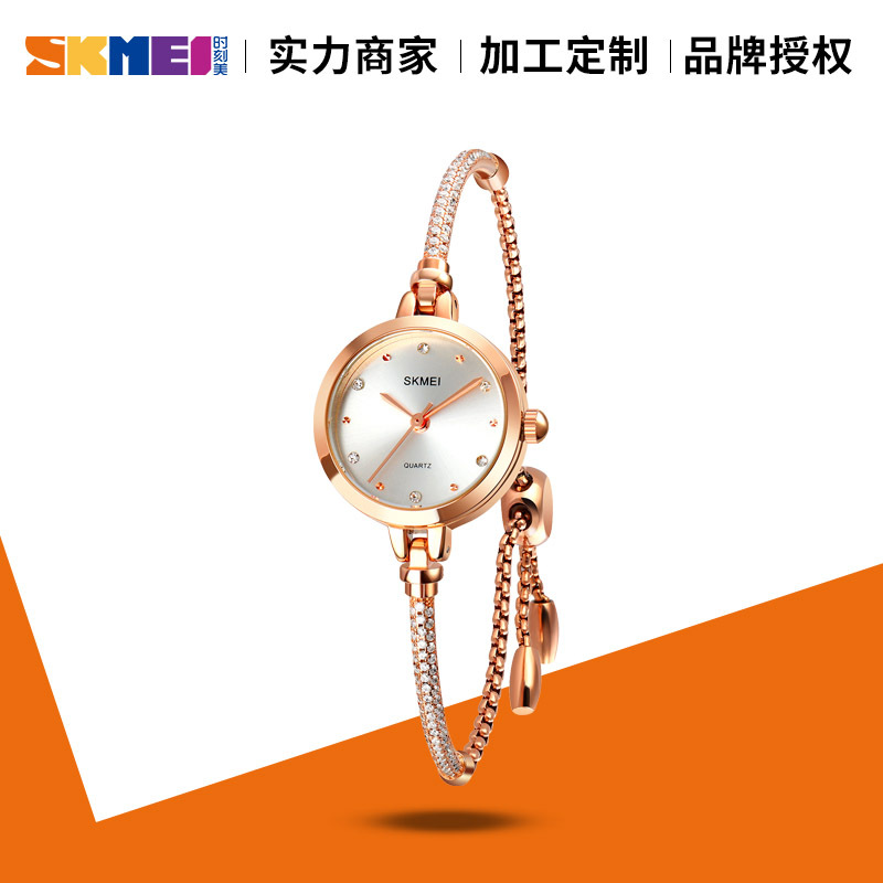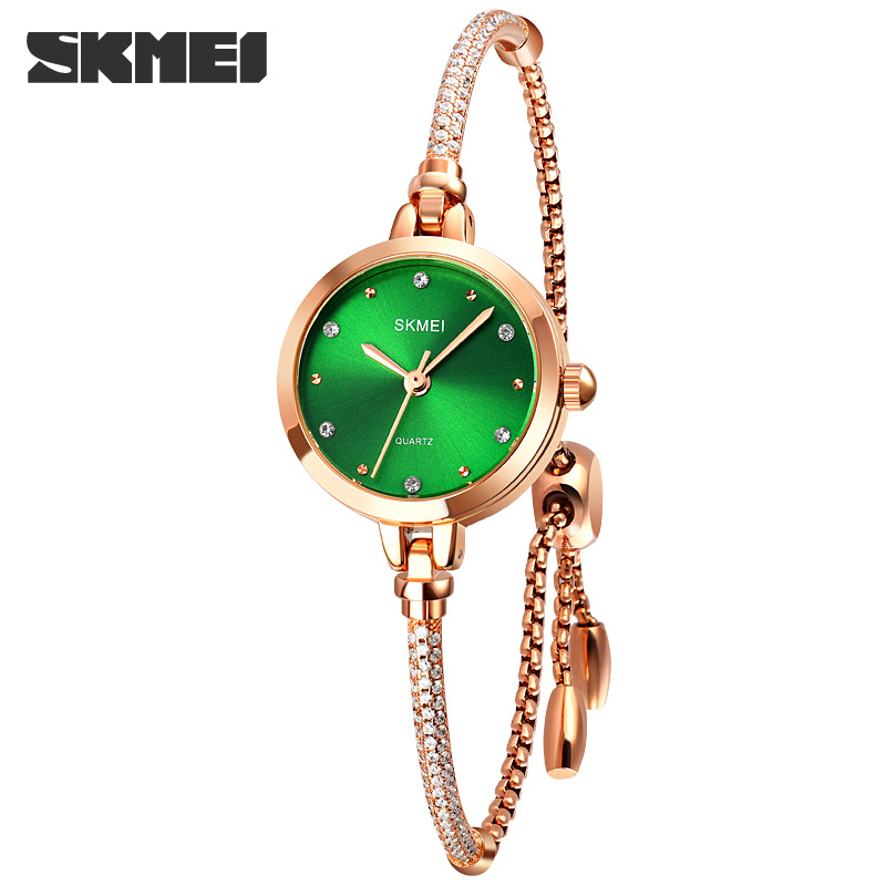 时刻美新款时尚手链式百搭女士石英表 网红小绿表玫瑰金潮流手表