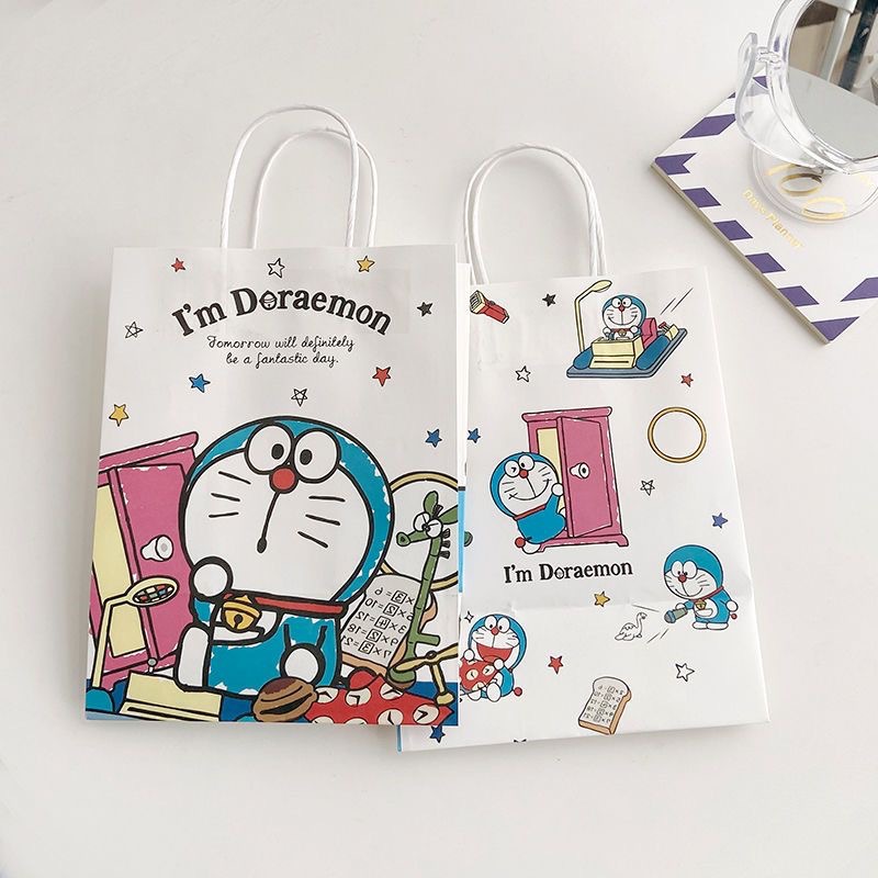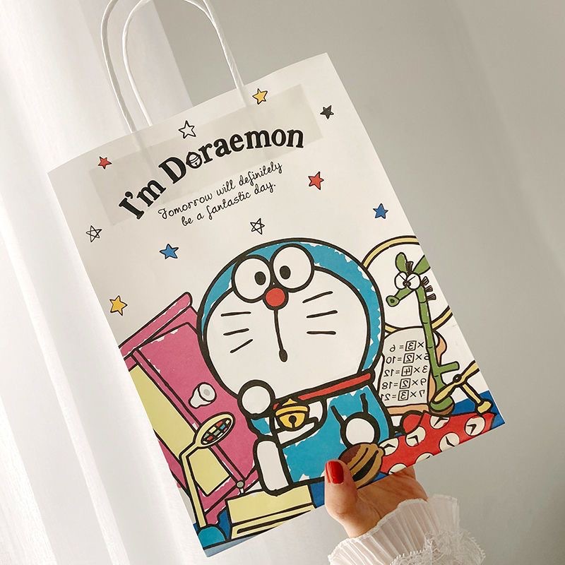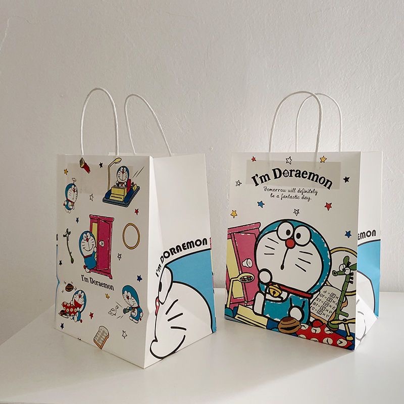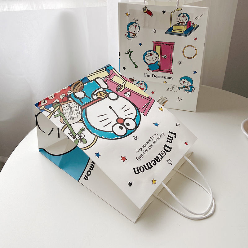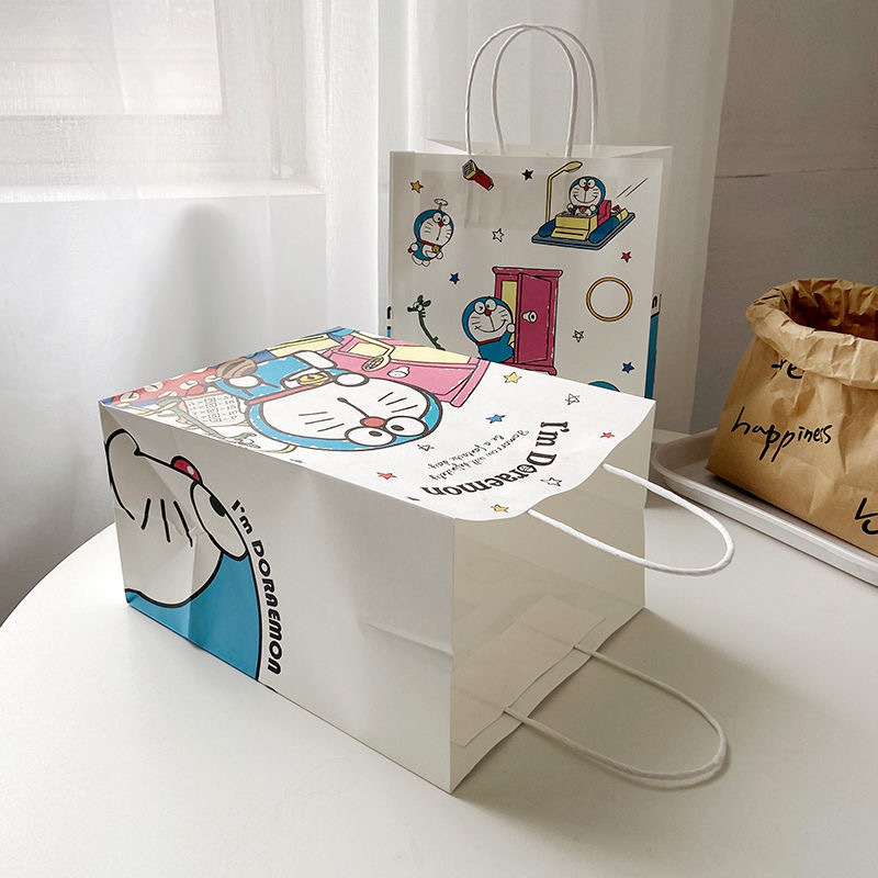 ins风哆啦A梦卡通手提牛皮纸袋礼品袋包装韩国少女风节假日收纳袋