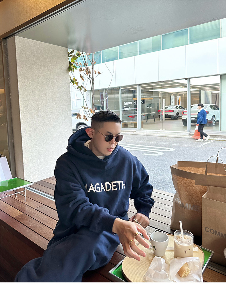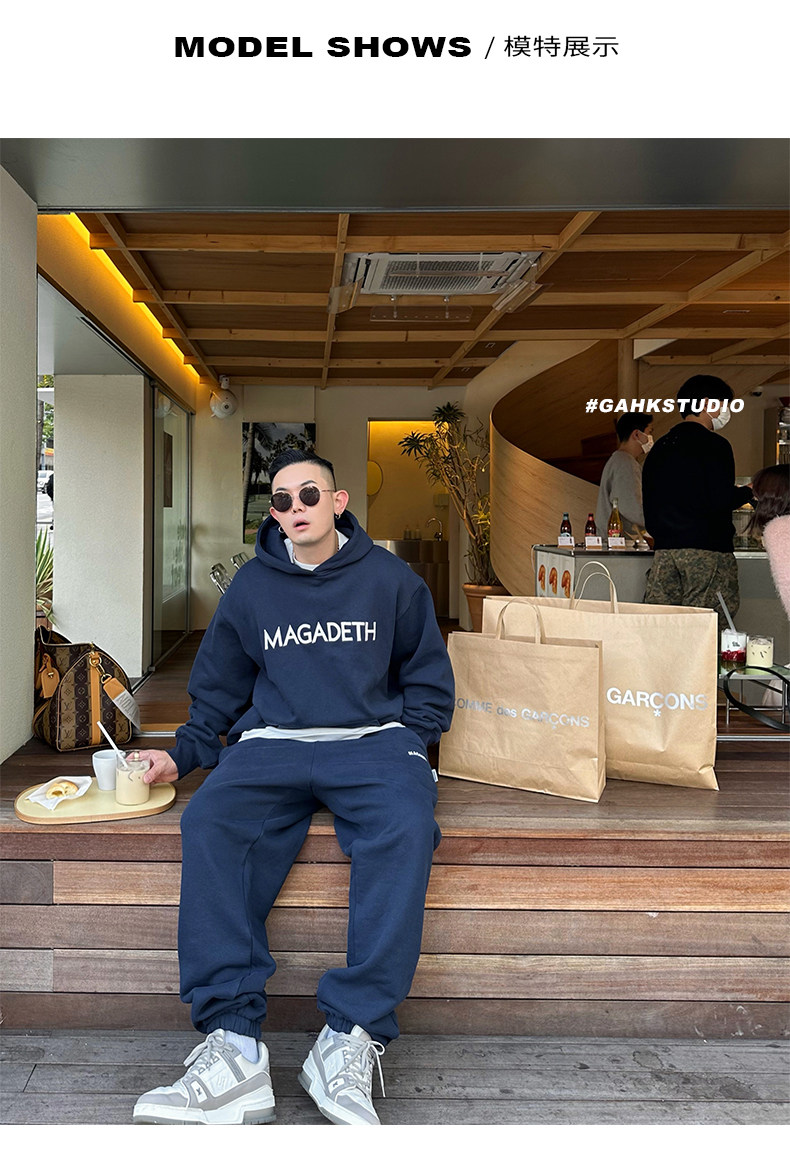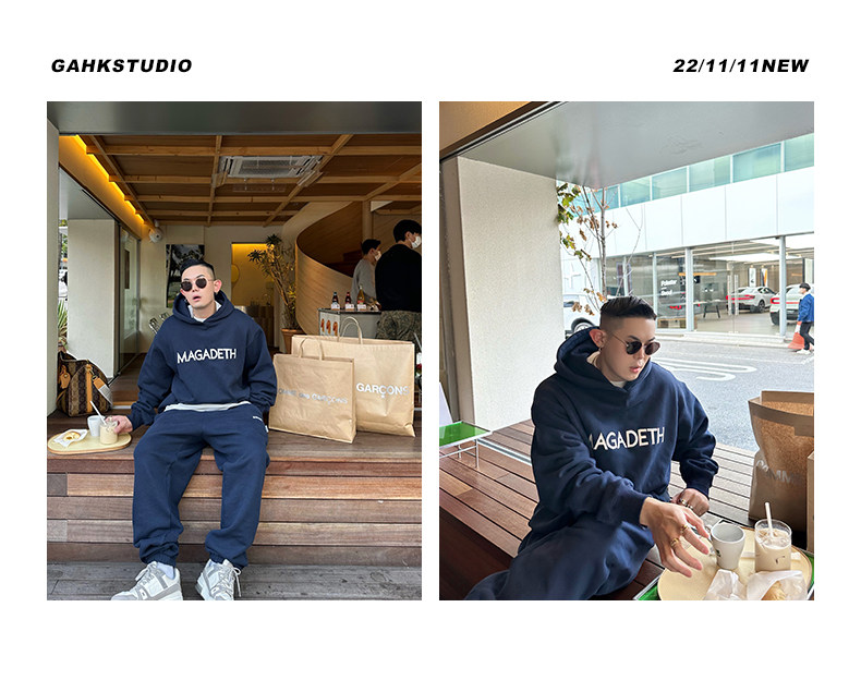 GAHKSTUDIO X MAGADETH 高定版高級面料字母刺繡連帽運動衫加絨加厚