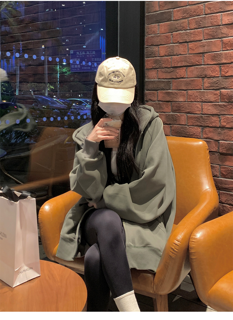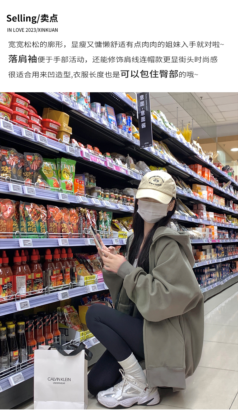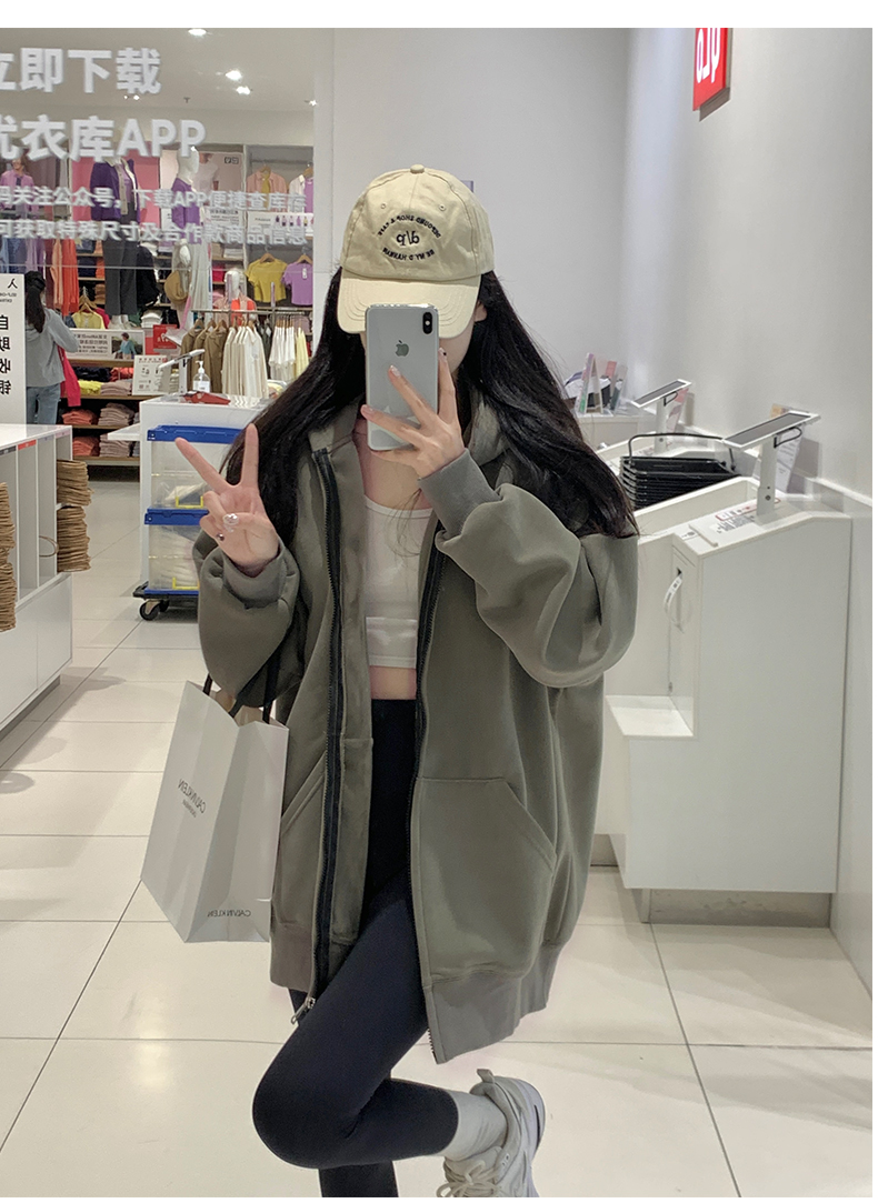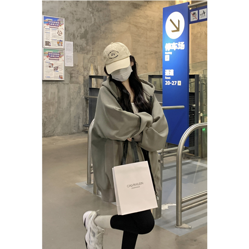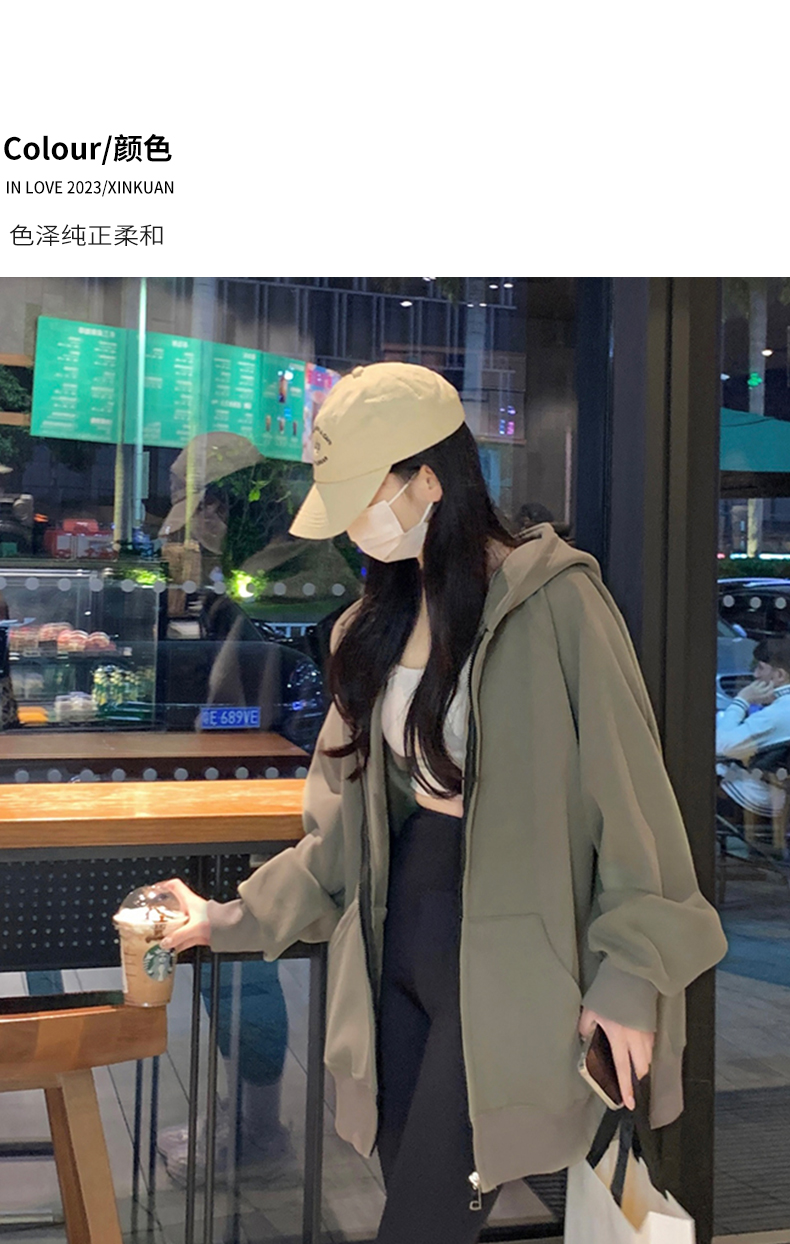 秋季中長版寬鬆連帽運動衫外套女春秋薄款2023新款爆款休閒開衫女裝