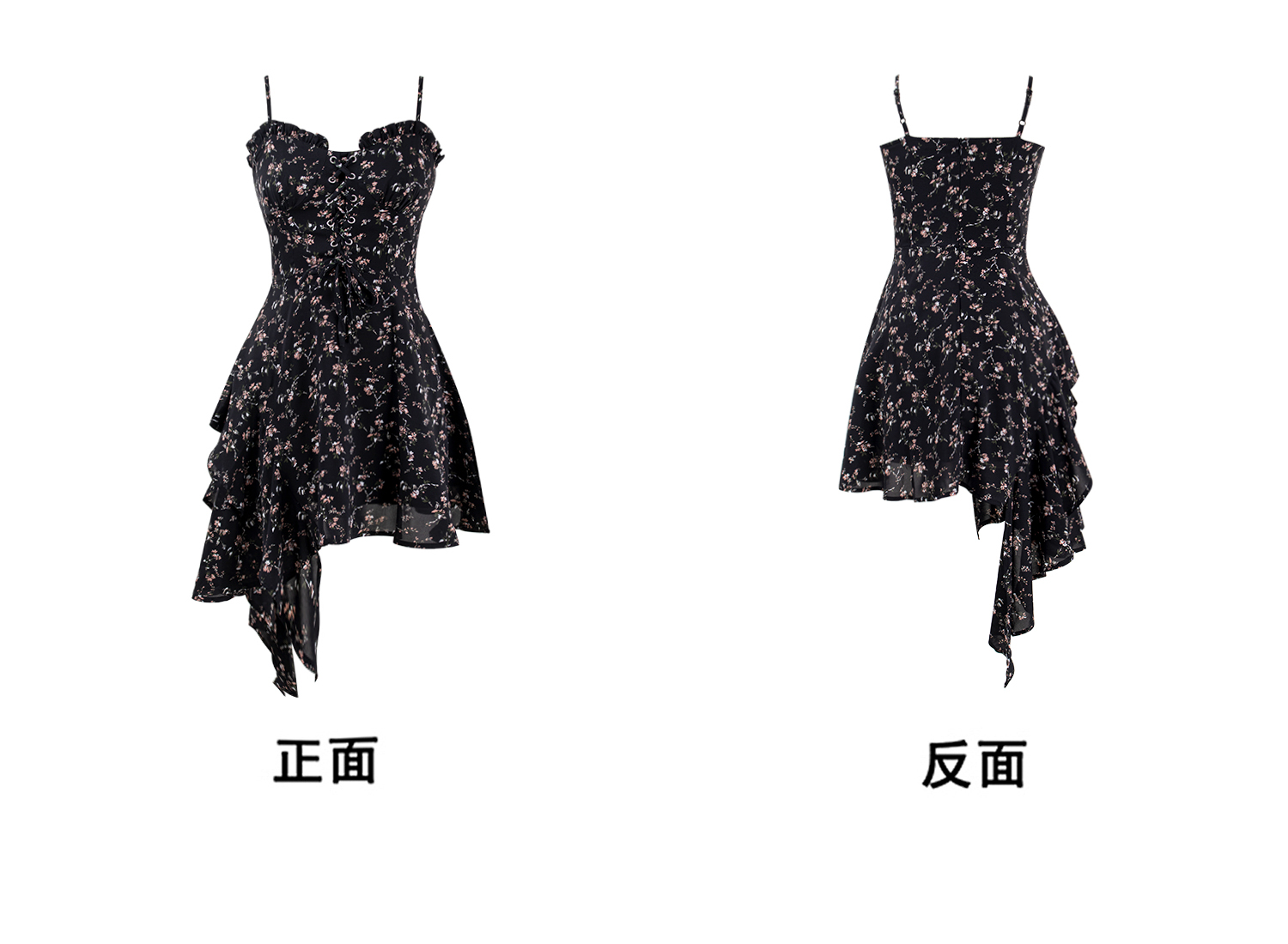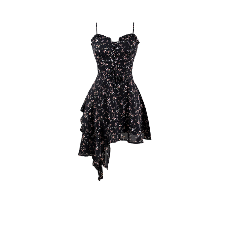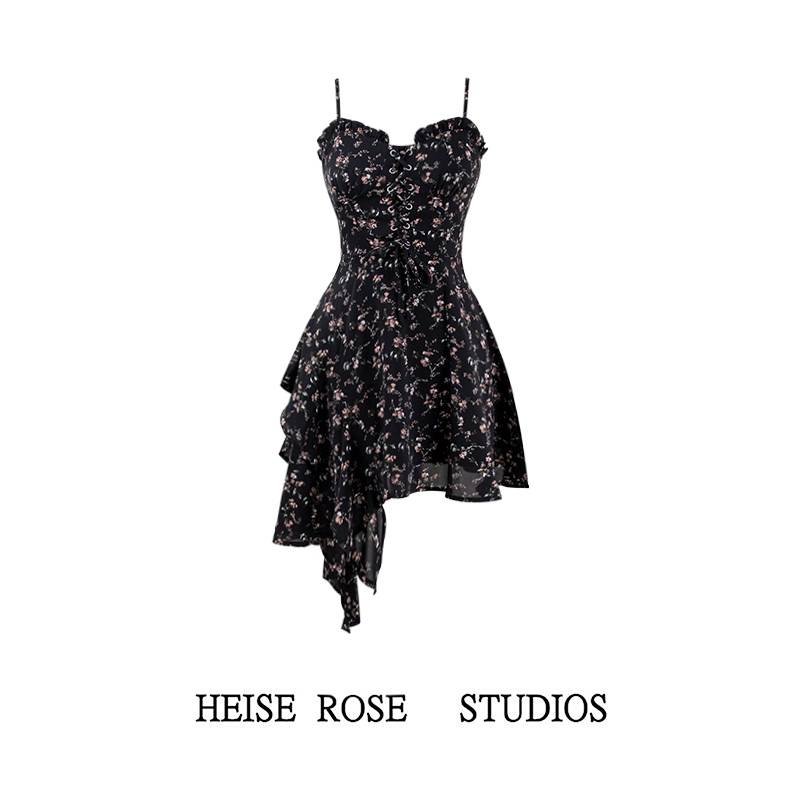 浪漫俘獲 暗黑純欲小眾不規則碎花吊帶裙洋裝辣妹春夏季設計感