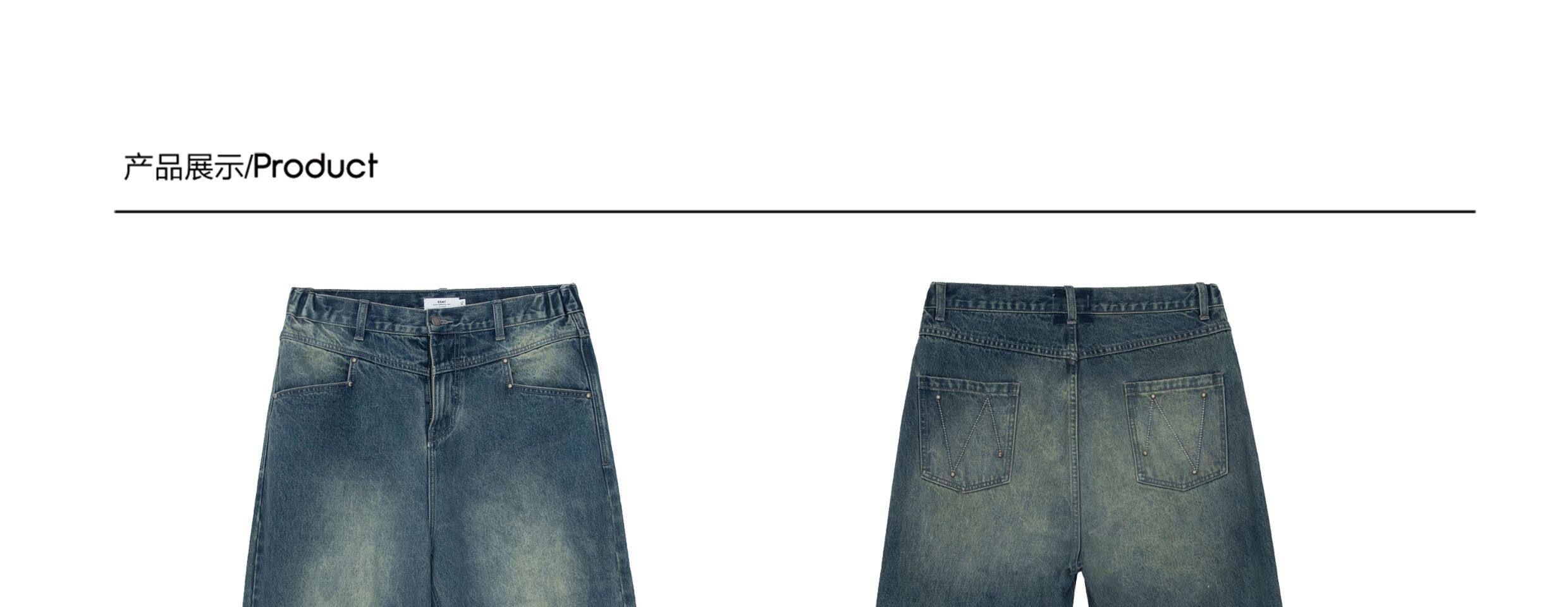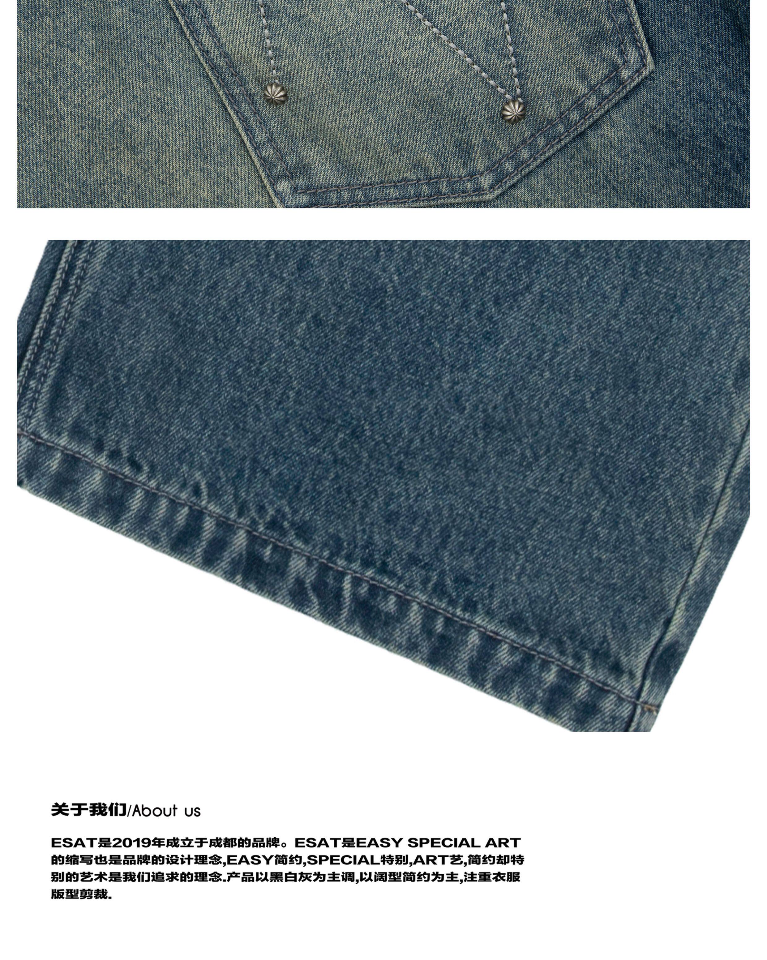 ESAT-BRANCH 23SS 做舊鉚釘水洗復古直筒牛仔長褲