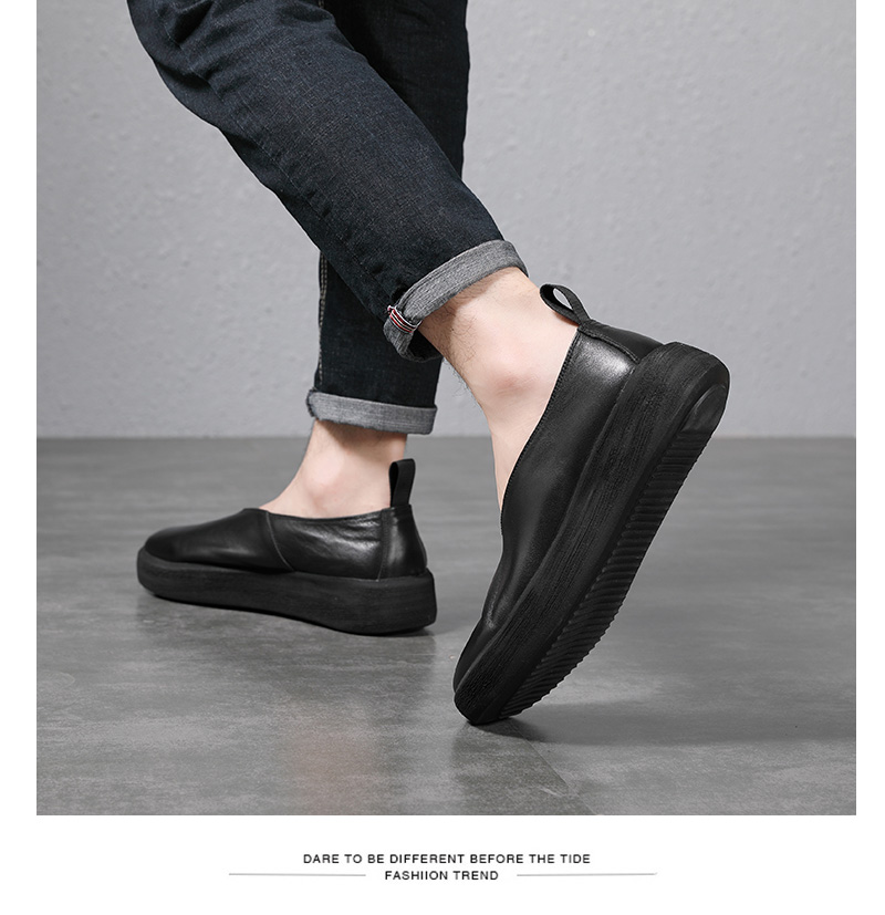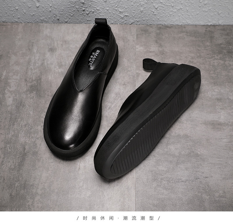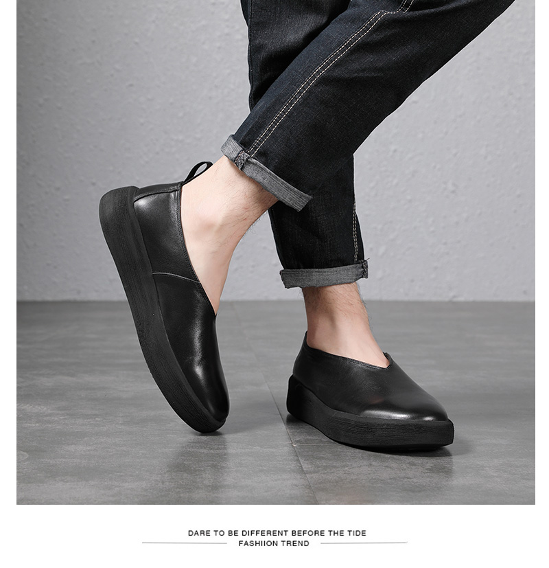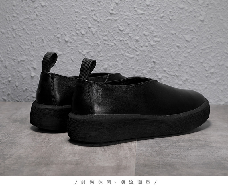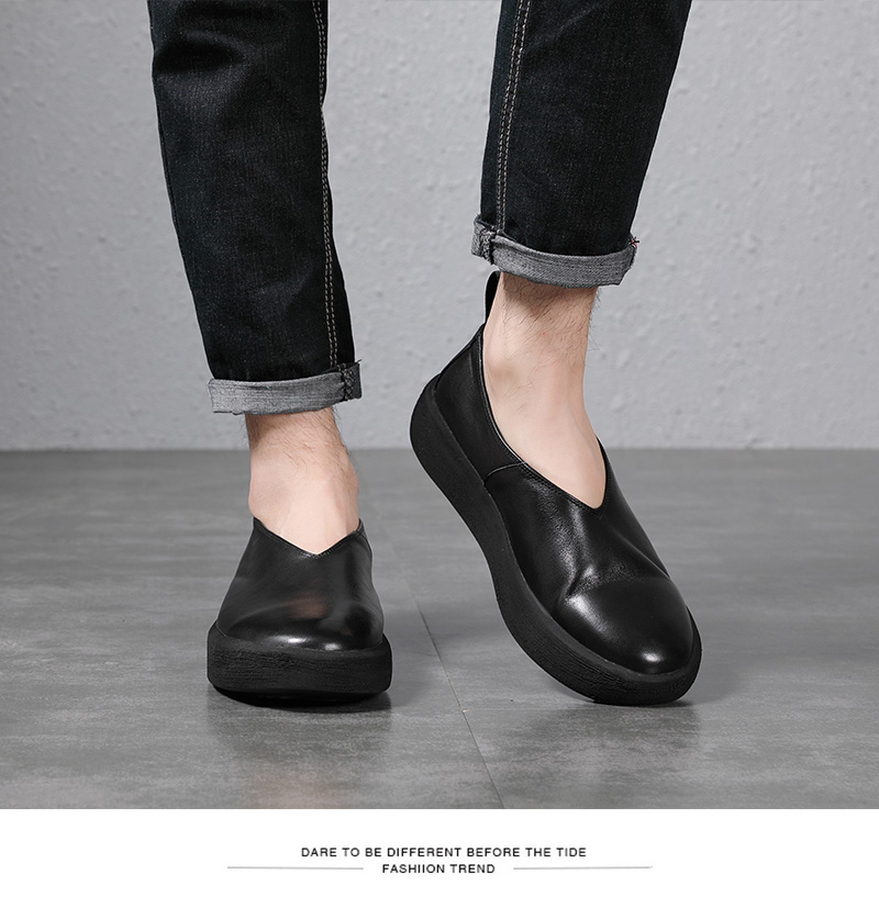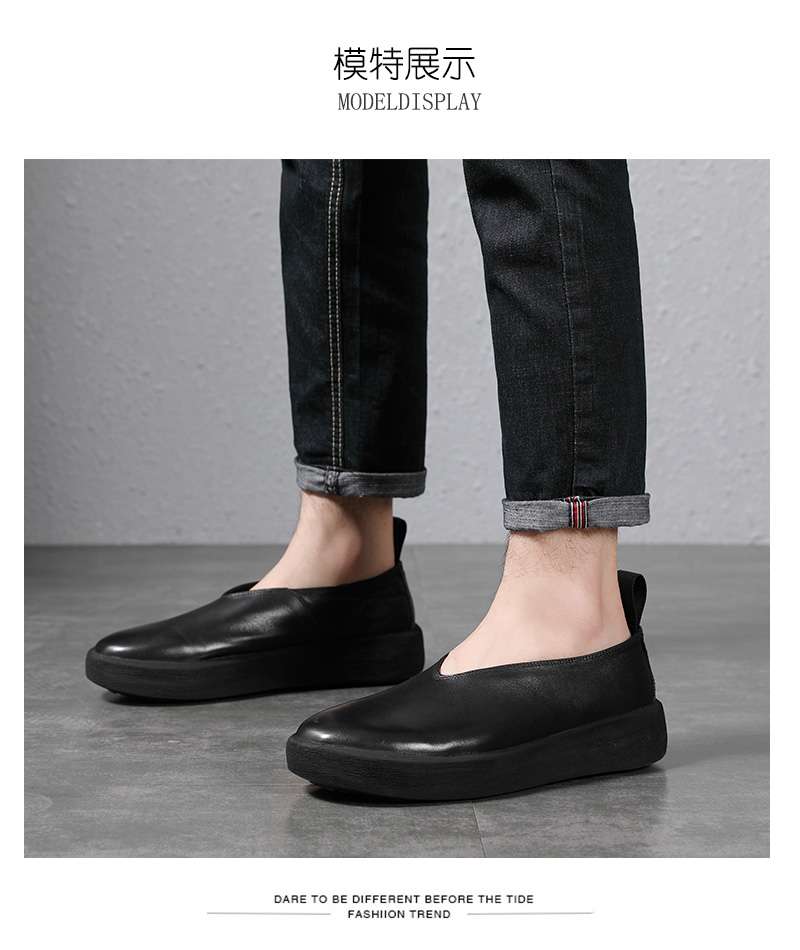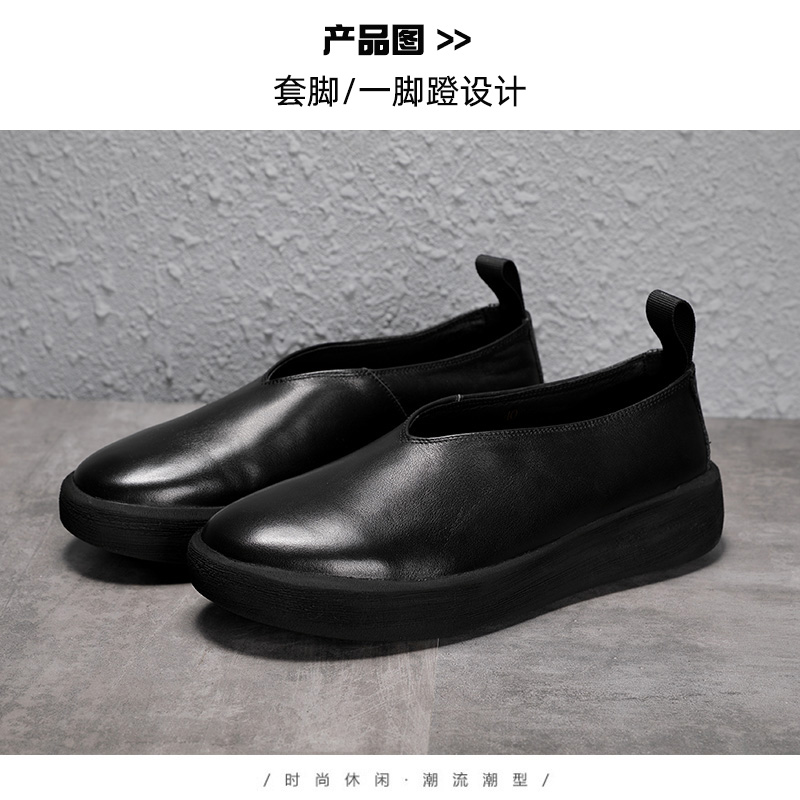 夏季復古做舊真皮透氣休閒鞋套腳輕軟鬆糕厚底鞋增高男一腳蹬潮鞋