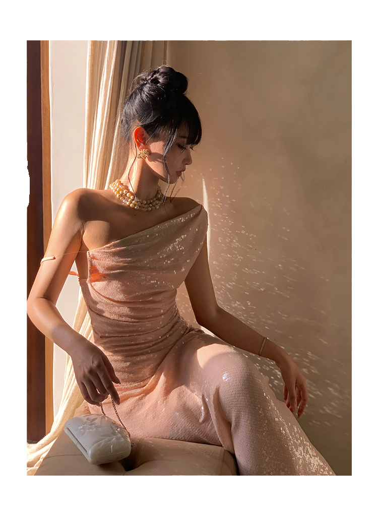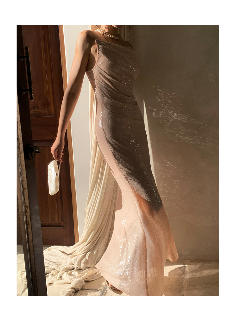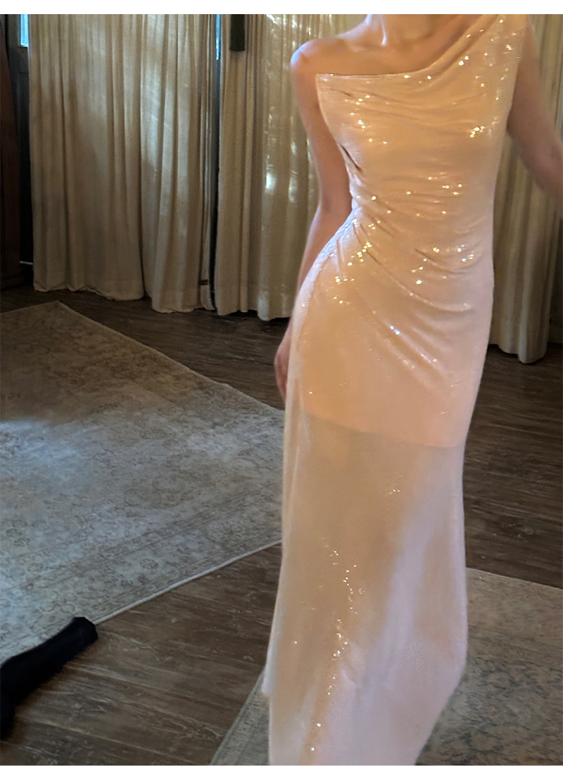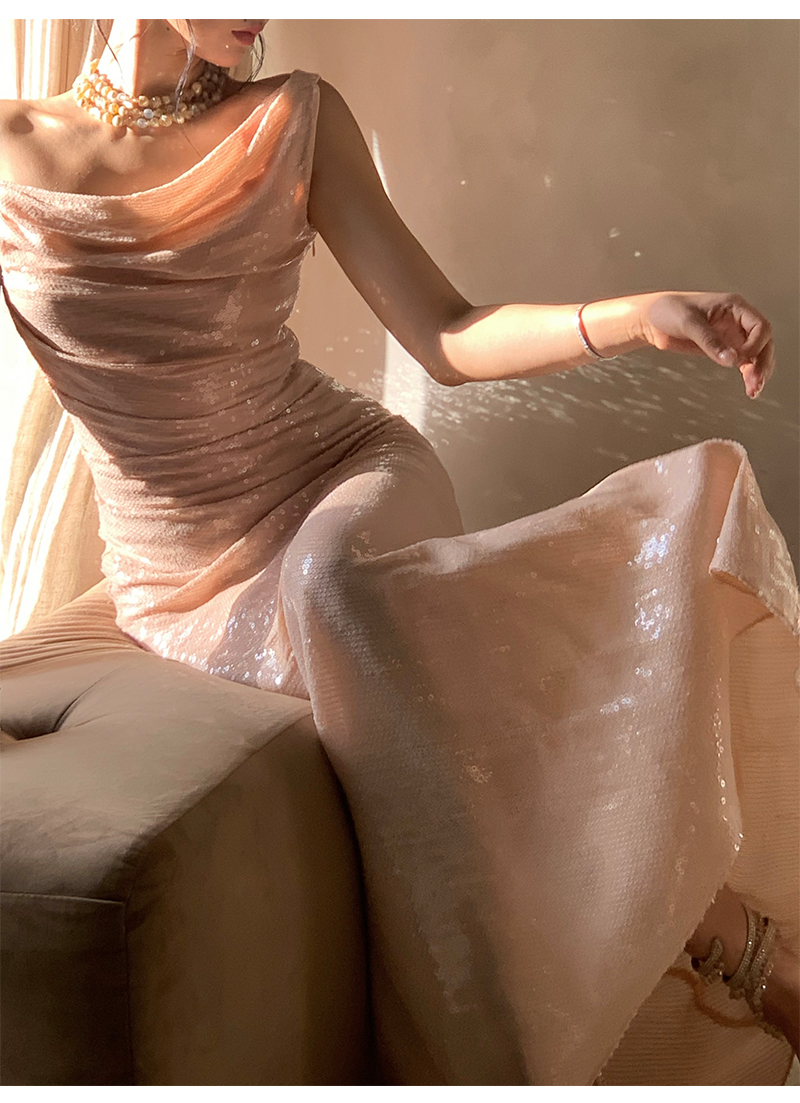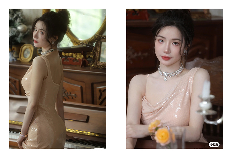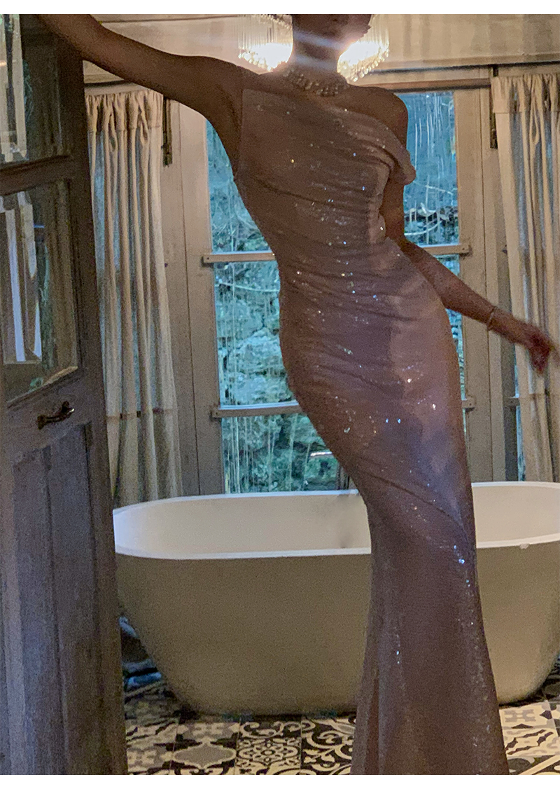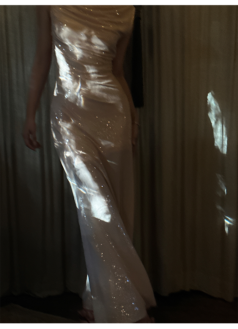 莹润亮片铺满裙身,倒影出整个璀璨星河