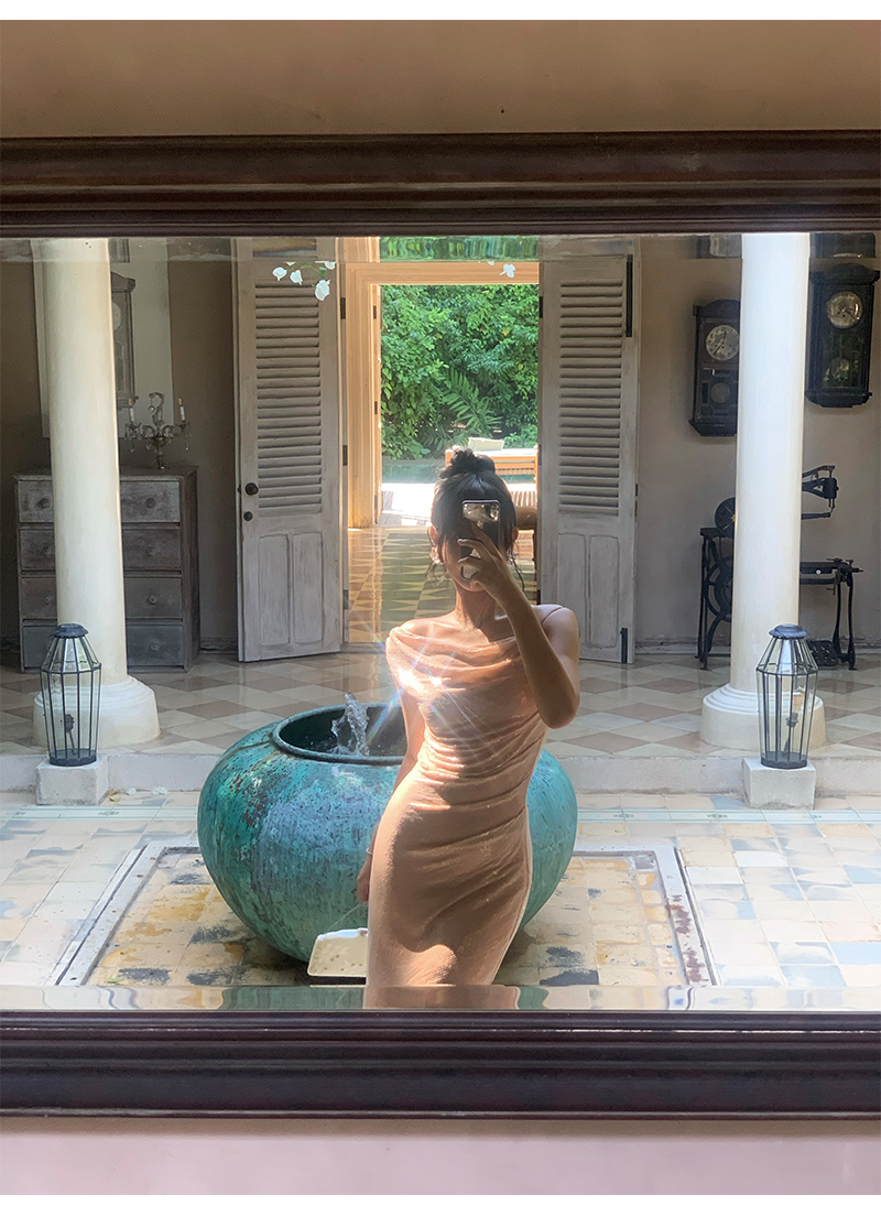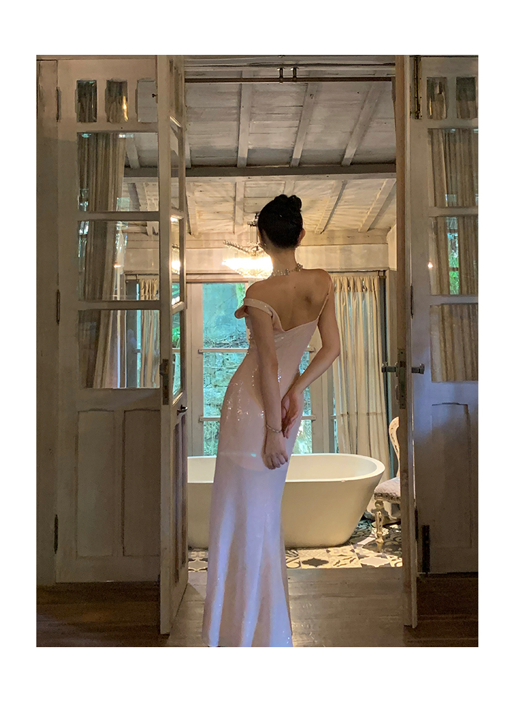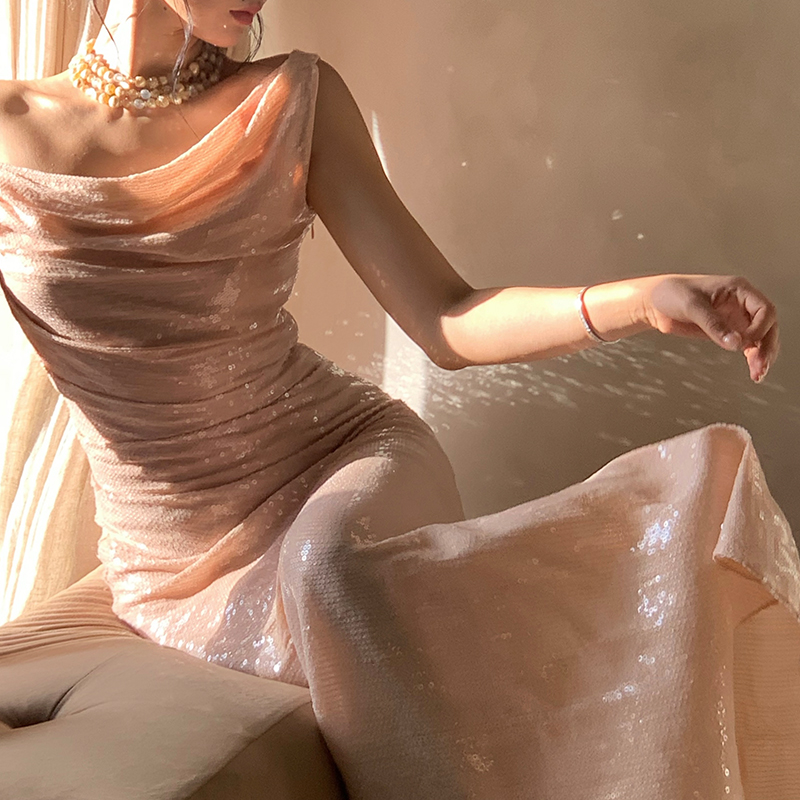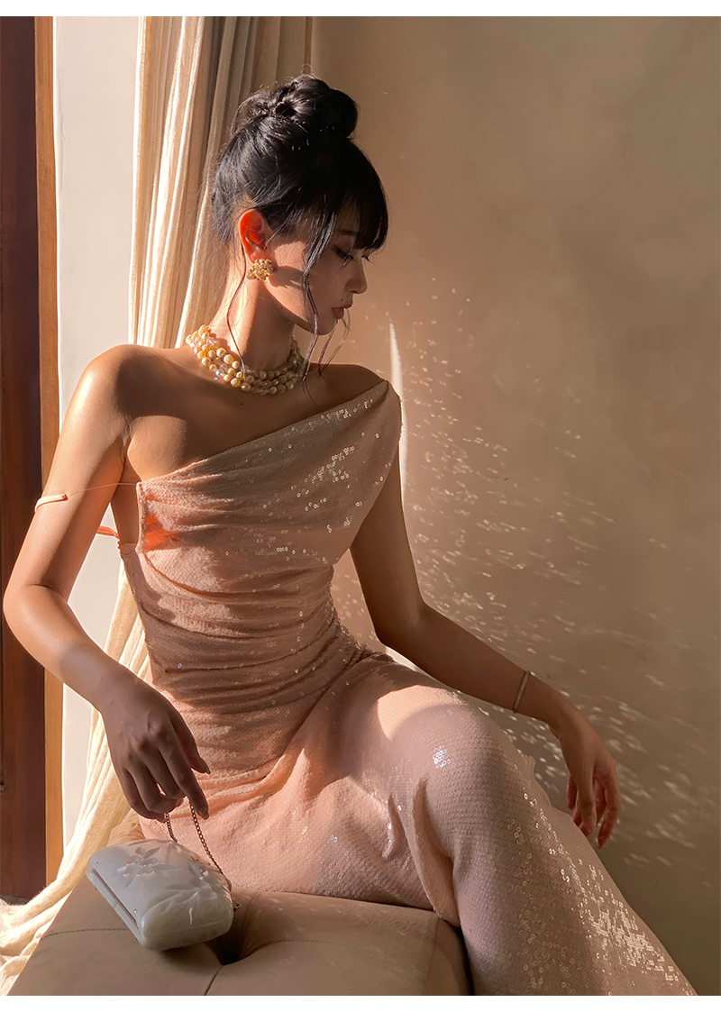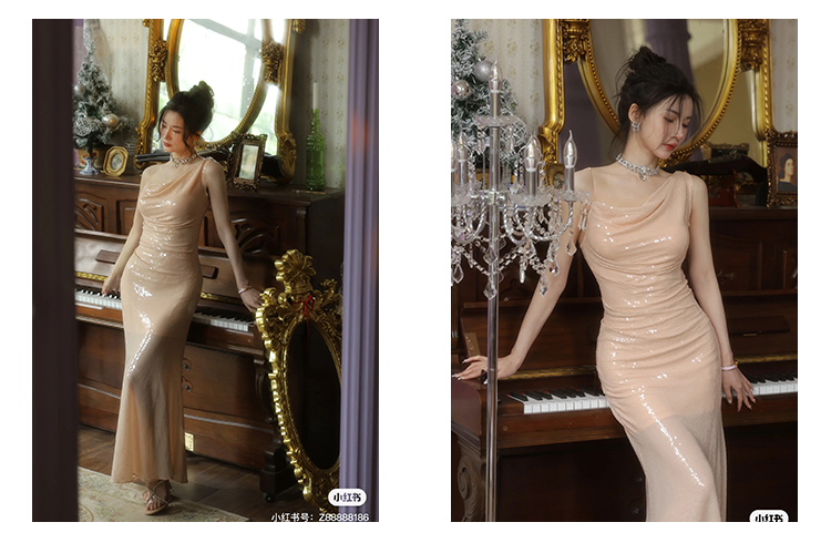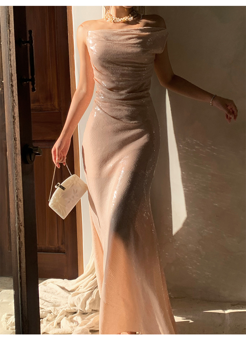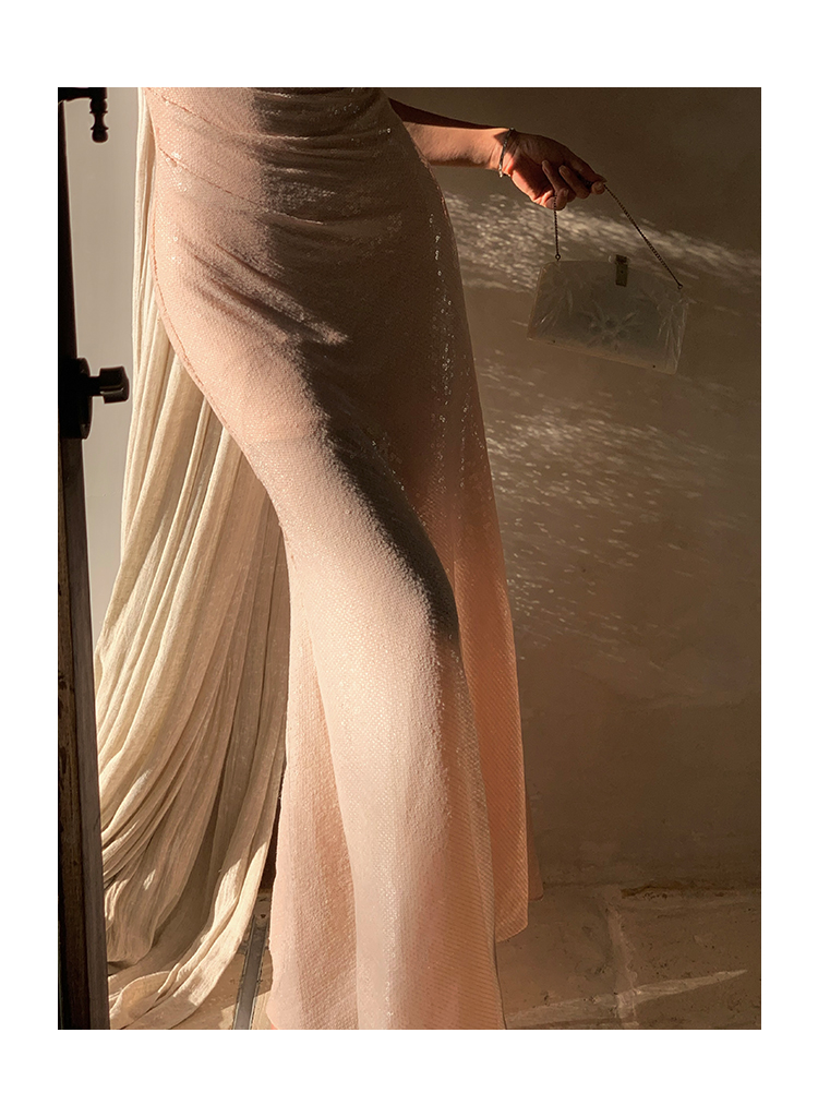 莹润亮片铺满裙身,倒影出整个璀璨星河