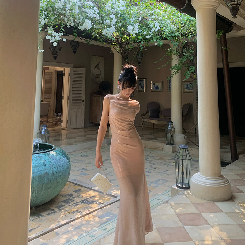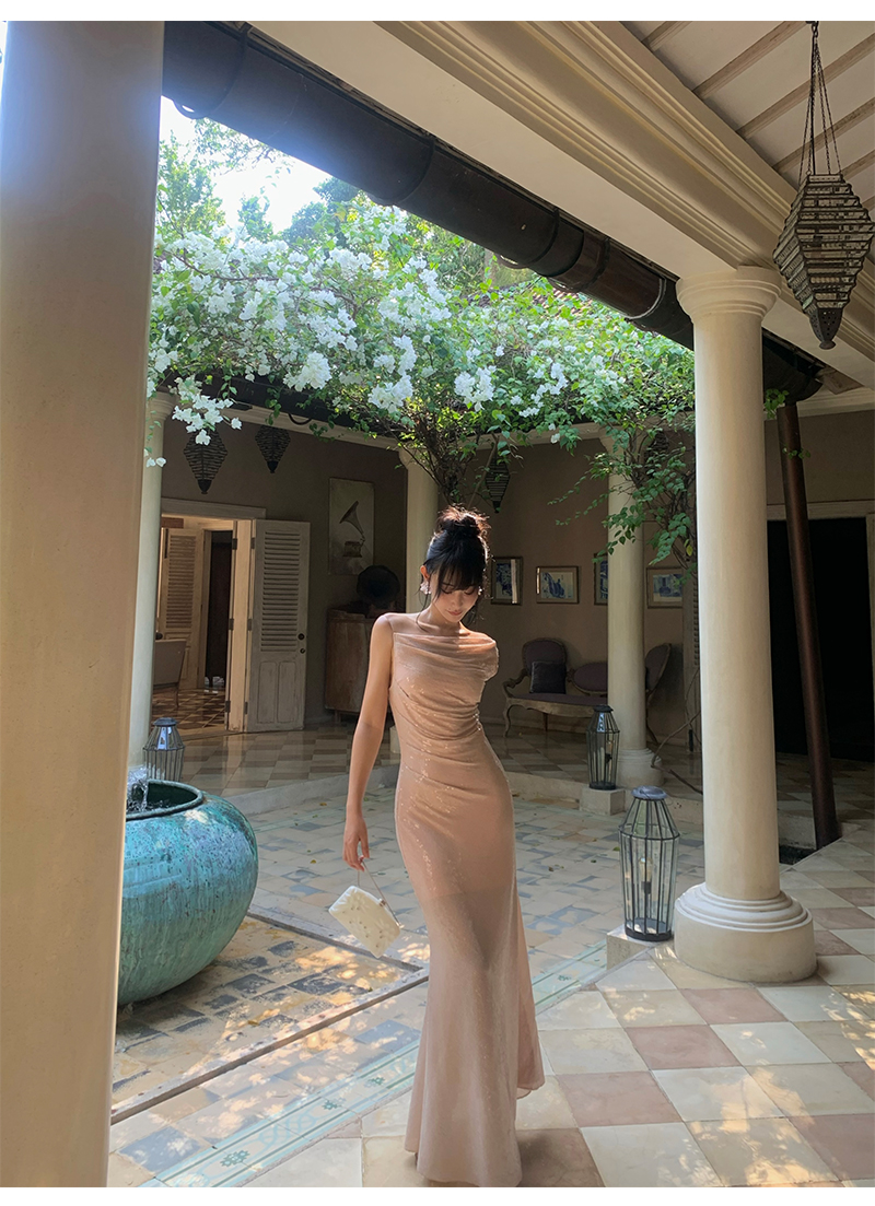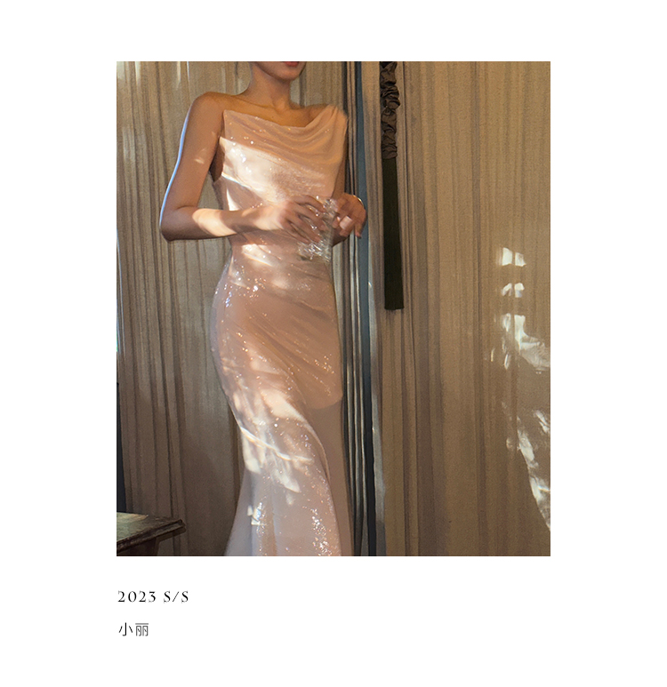 小麗XIAOLI人魚陷落吊帶魚尾包臀連衣長裙秋冬高端精緻宴會禮服裙