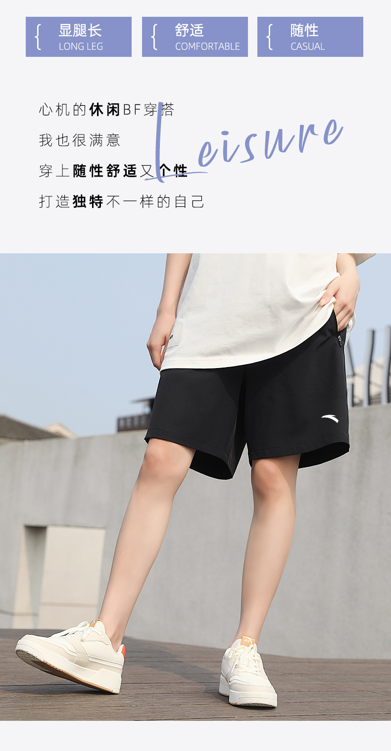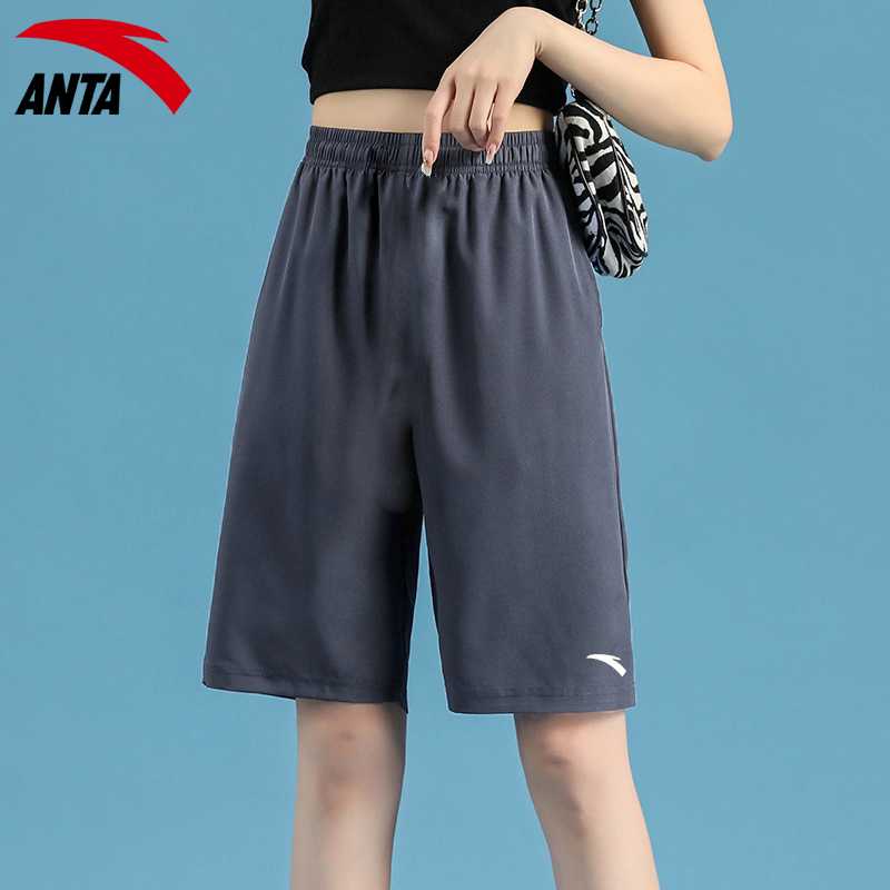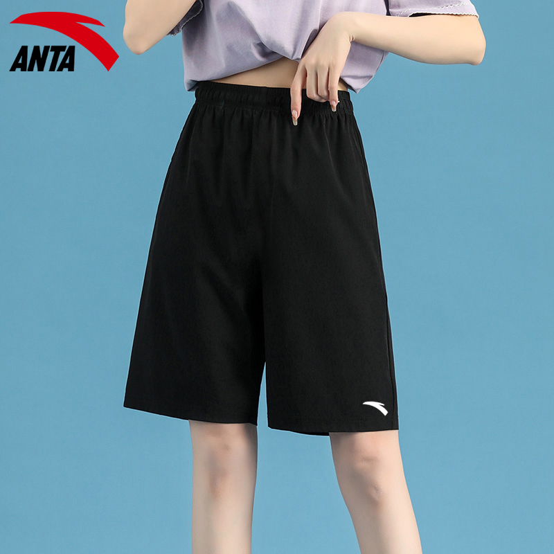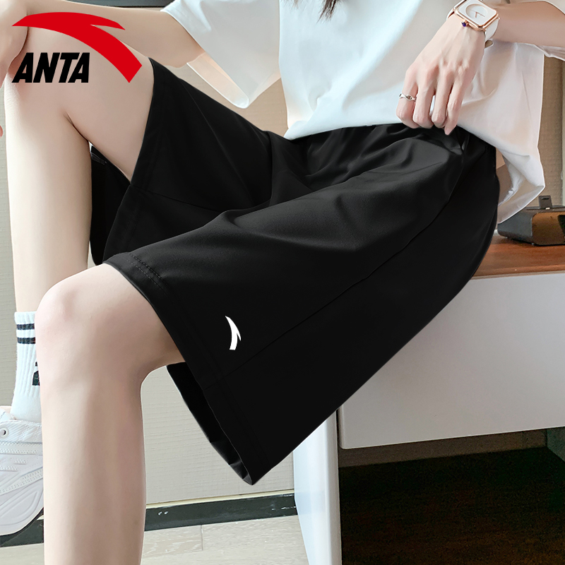 安踏短褲女大尺碼運動五分褲夏季冰絲休閒黑色跑步褲子寬鬆直筒女褲