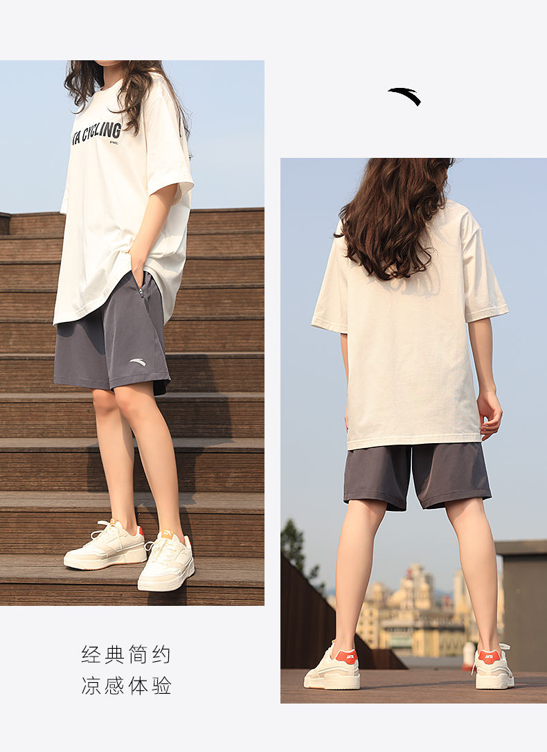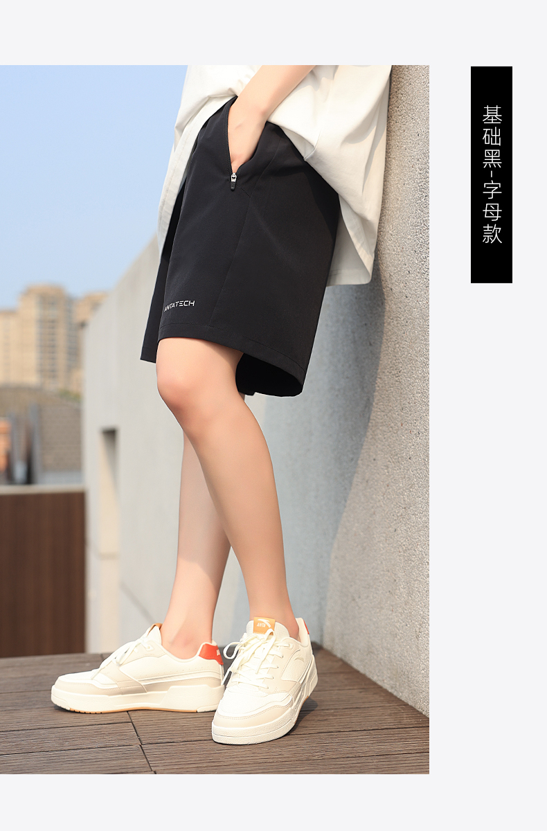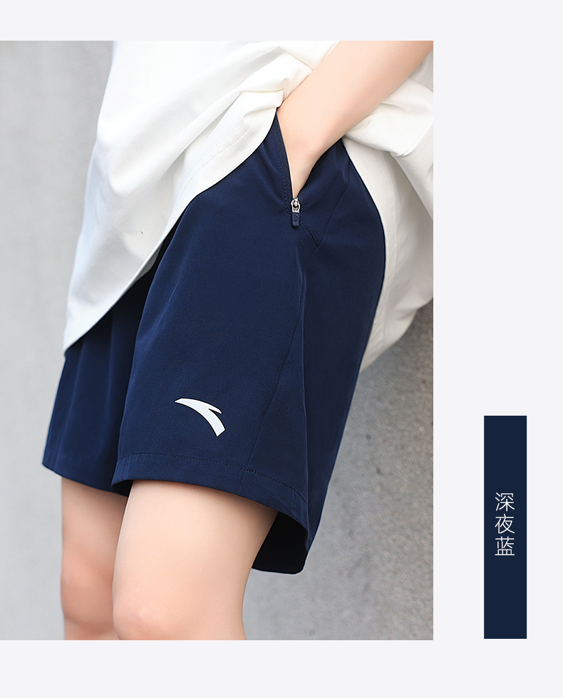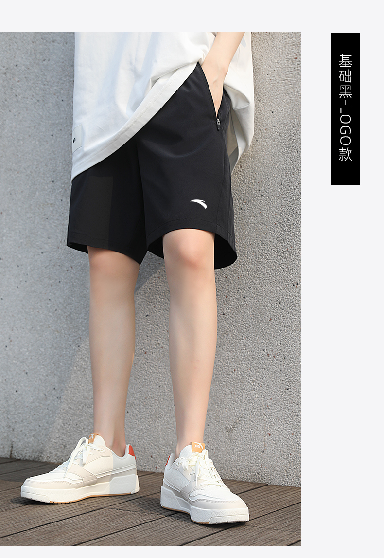 安踏短褲女大尺碼運動五分褲夏季冰絲休閒黑色跑步褲子寬鬆直筒女褲