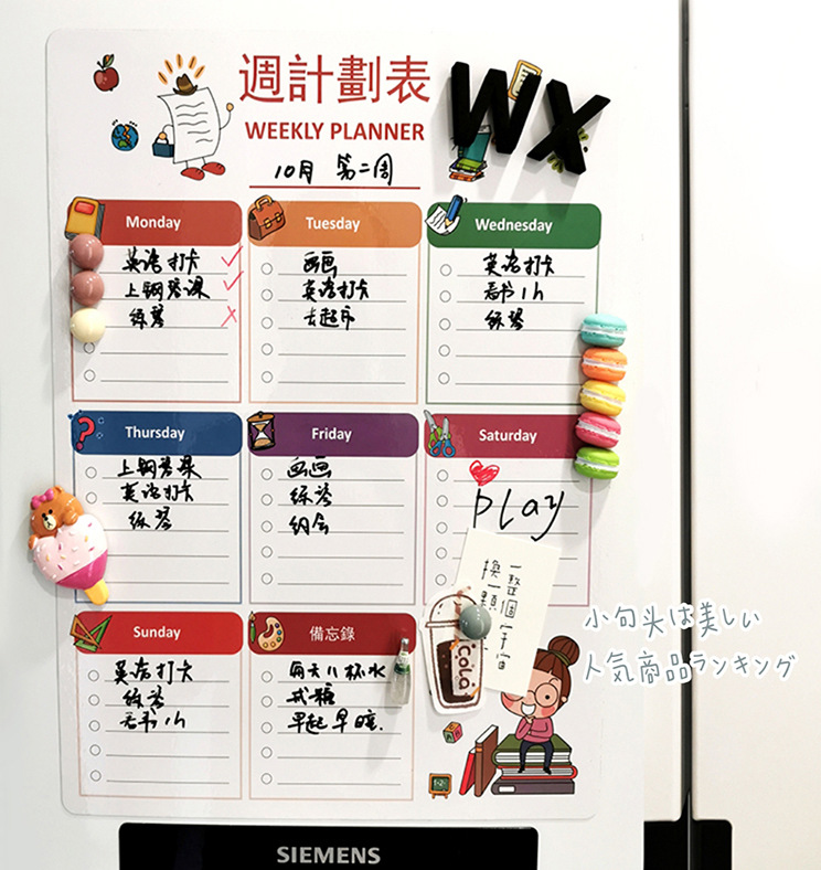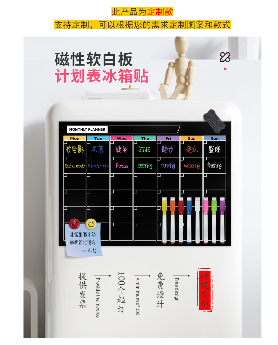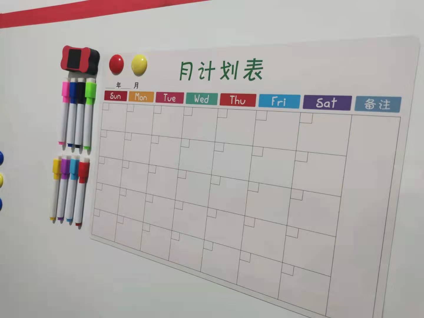 周月计划表冰箱贴批发磁性软白板日历贴可移擦写留言贴冰箱磁力贴