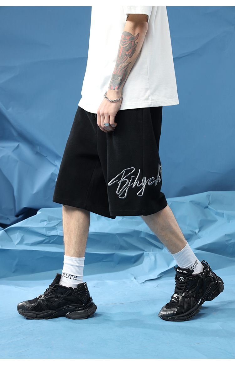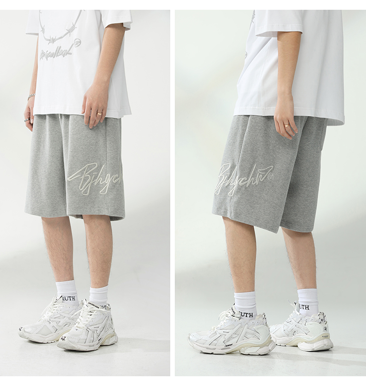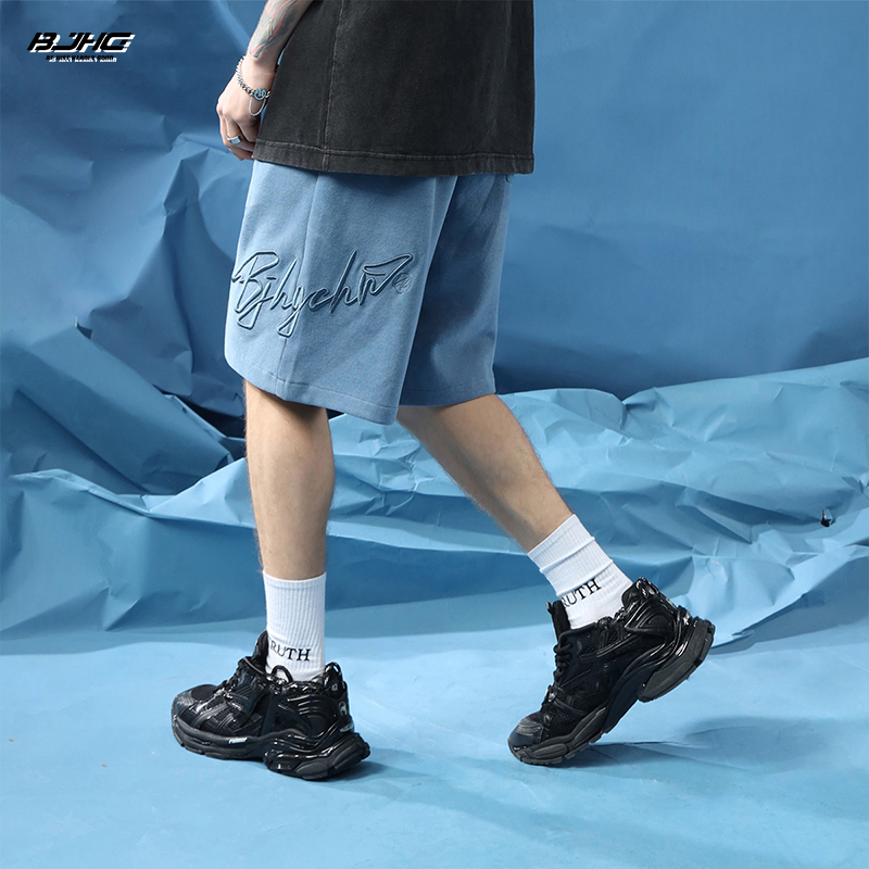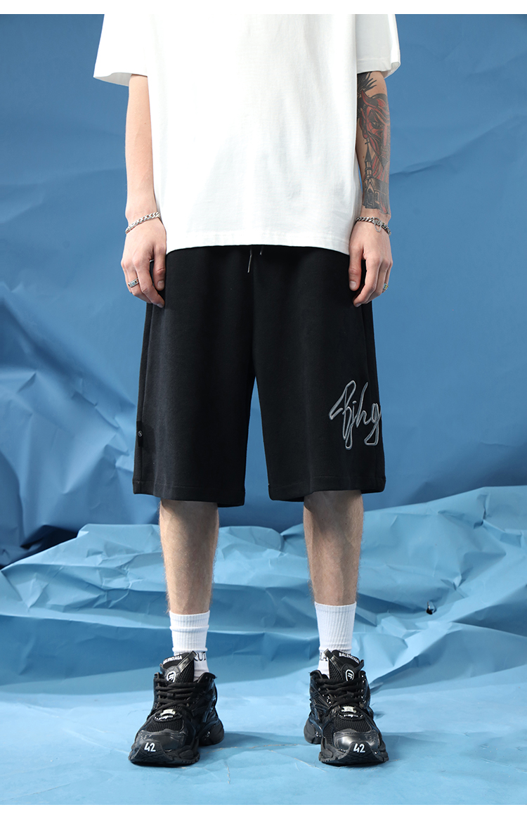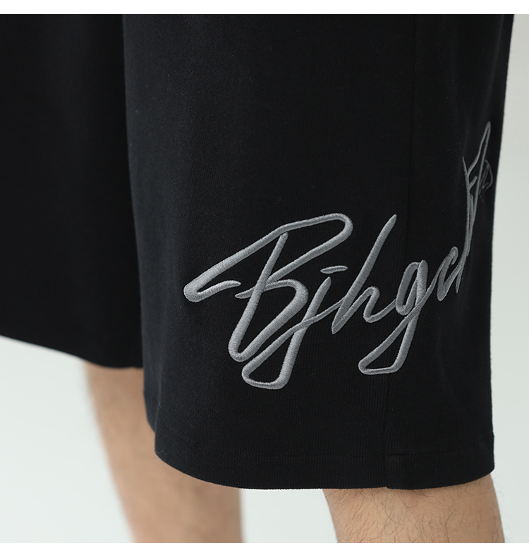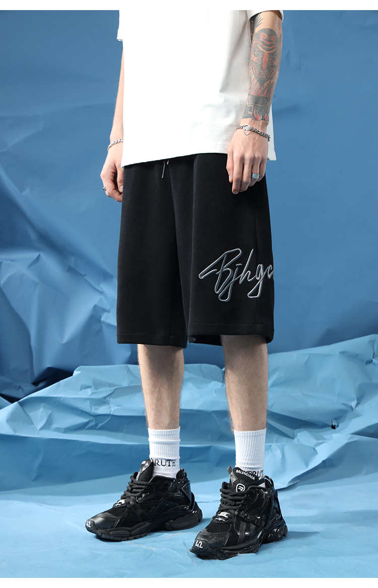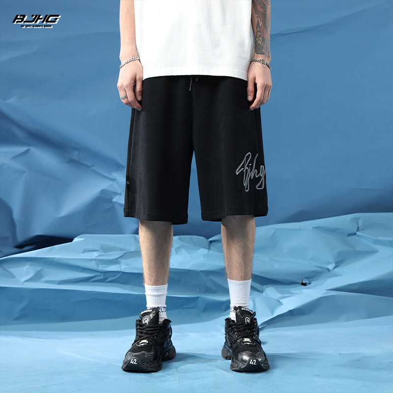 BJHG不計後果夏季休閒短褲男美式寬鬆潮牌刺繡籃球運動五分沙灘褲