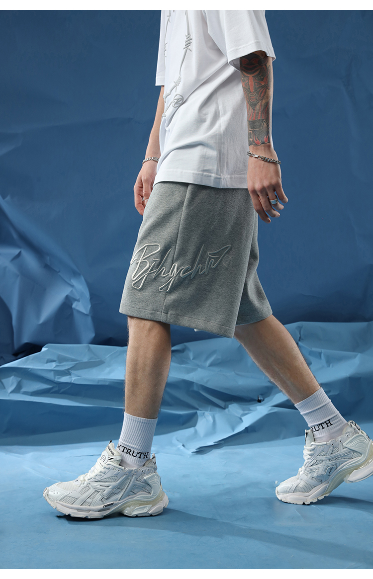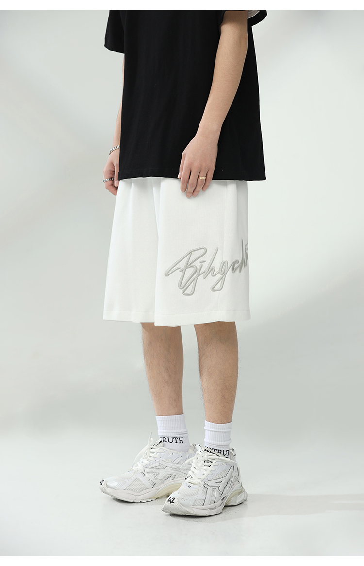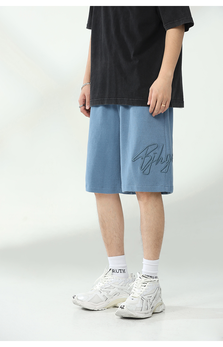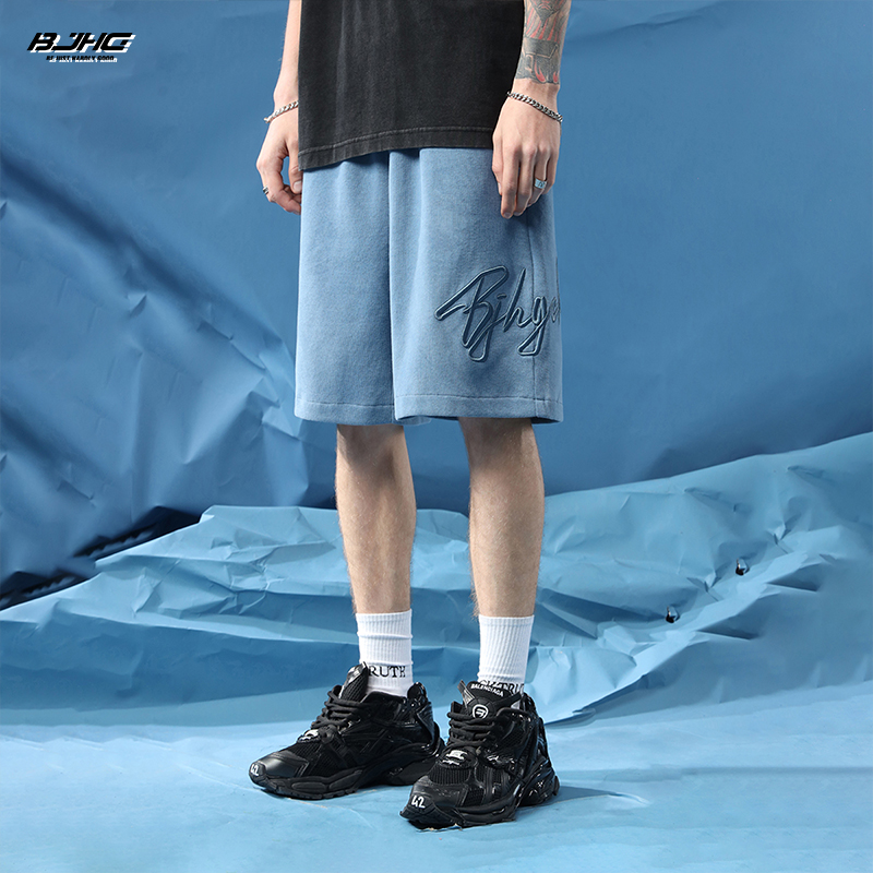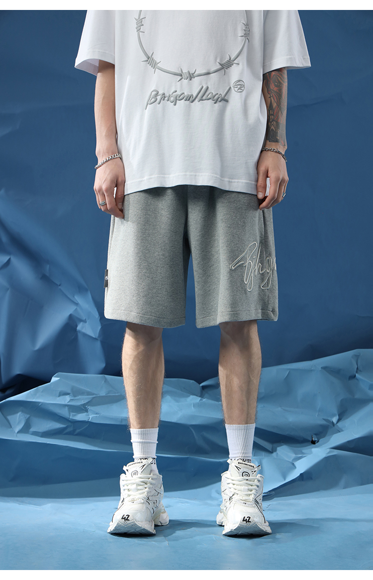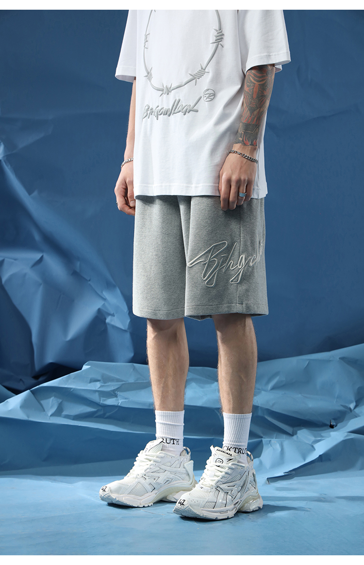 BJHG不計後果夏季休閒短褲男美式寬鬆潮牌刺繡籃球運動五分沙灘褲