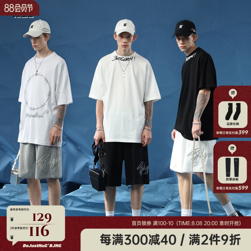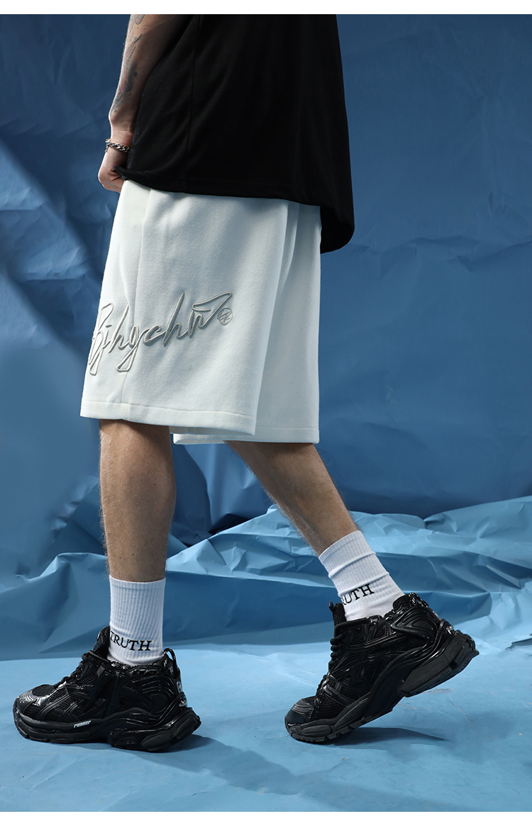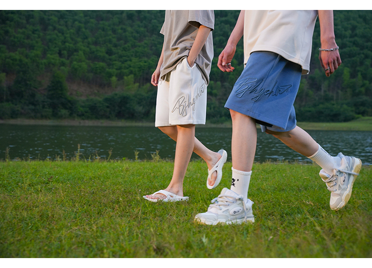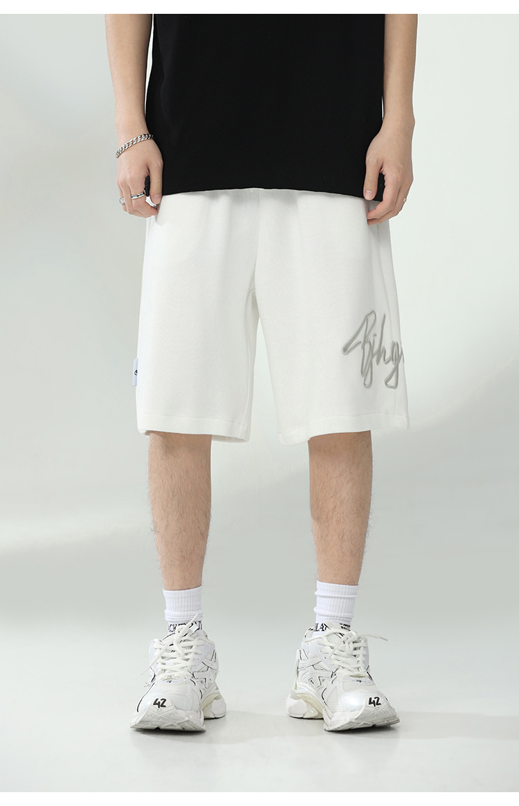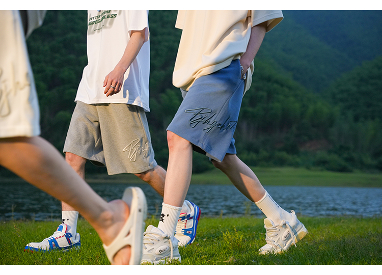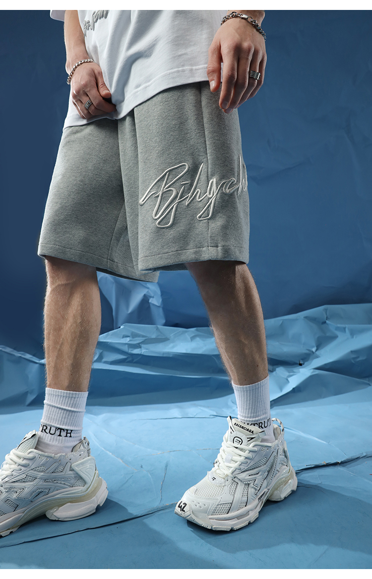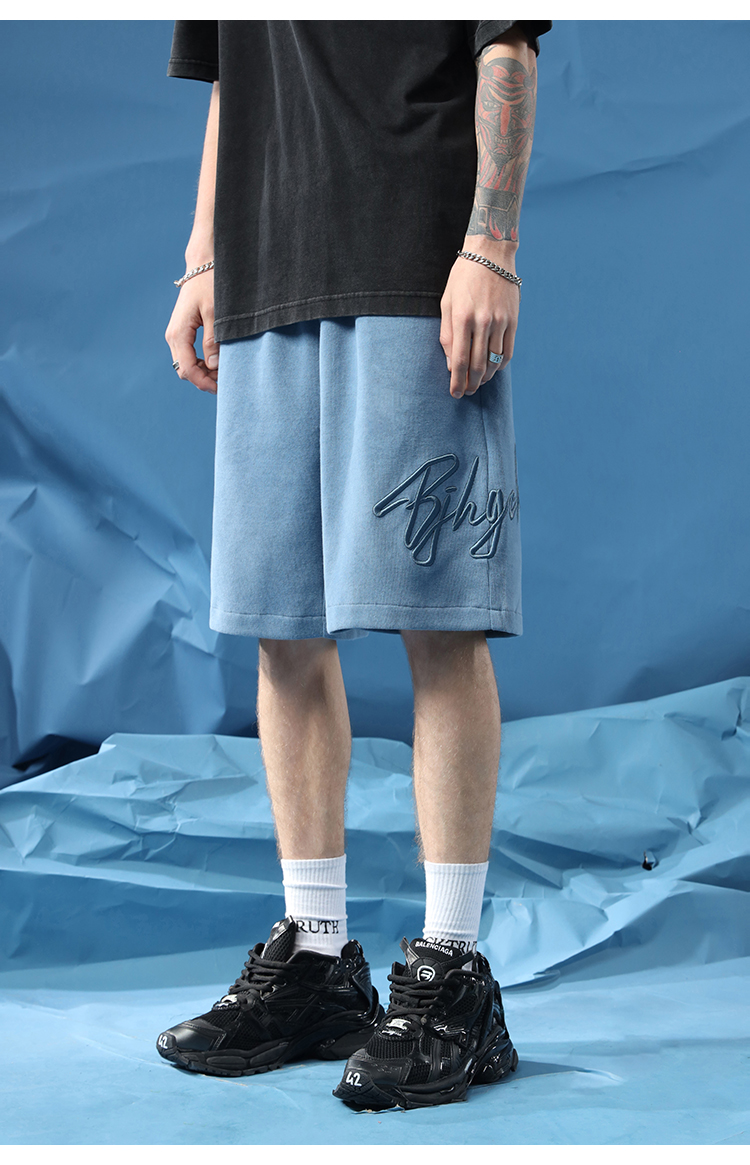 BJHG不計後果夏季休閒短褲男美式寬鬆潮牌刺繡籃球運動五分沙灘褲