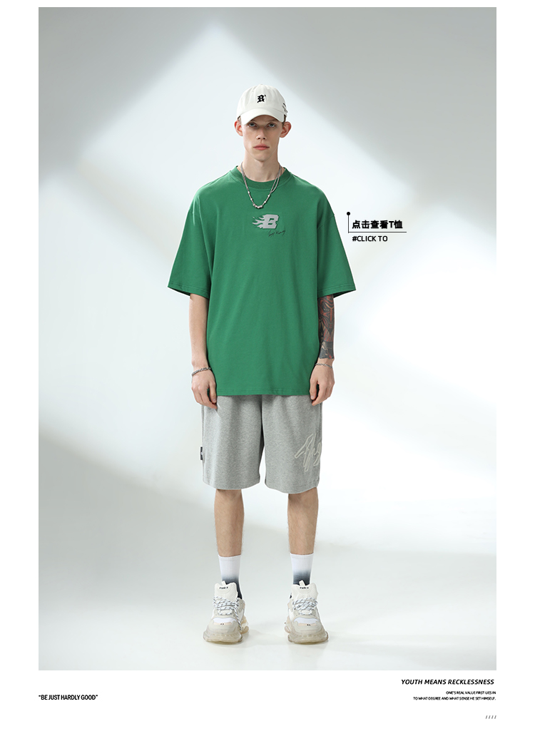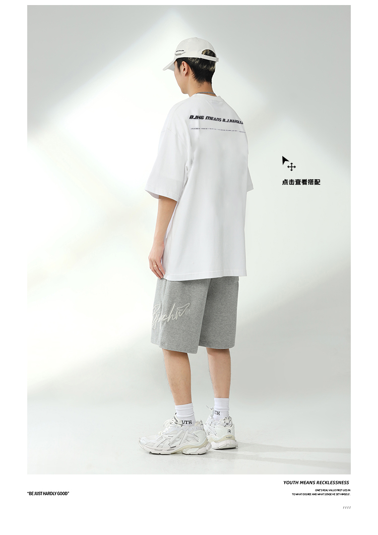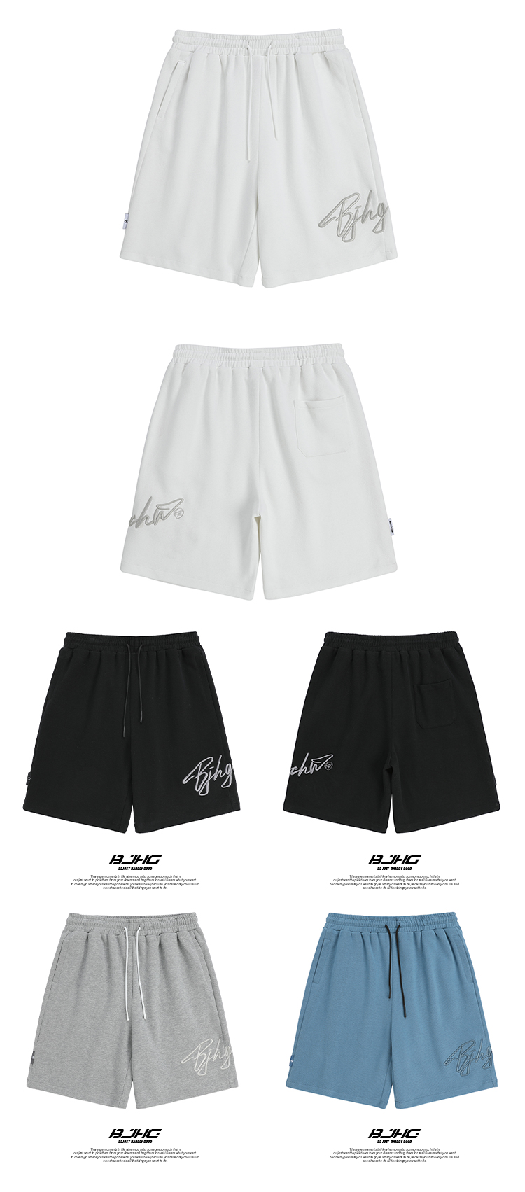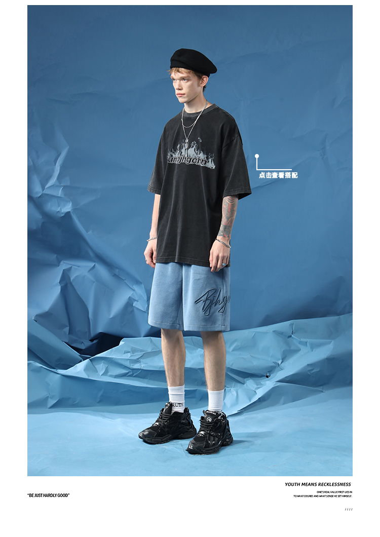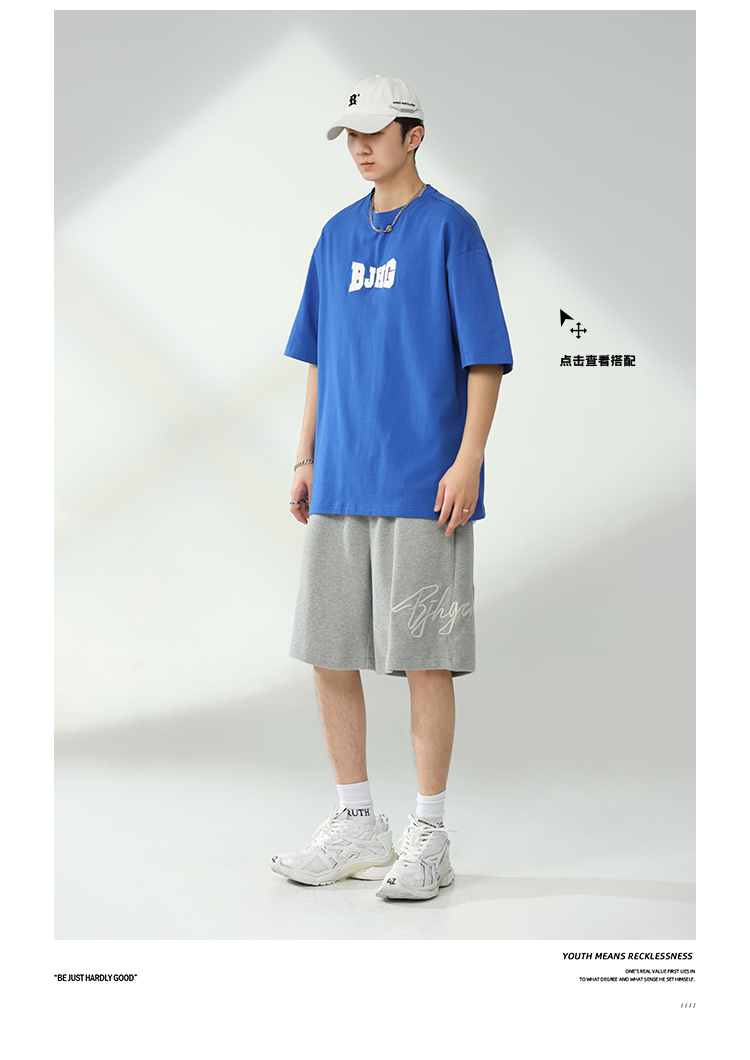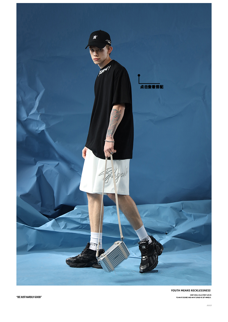 BJHG不計後果夏季休閒短褲男美式寬鬆潮牌刺繡籃球運動五分沙灘褲