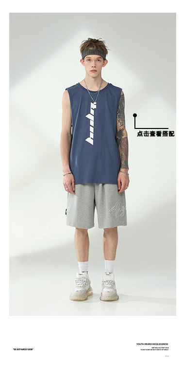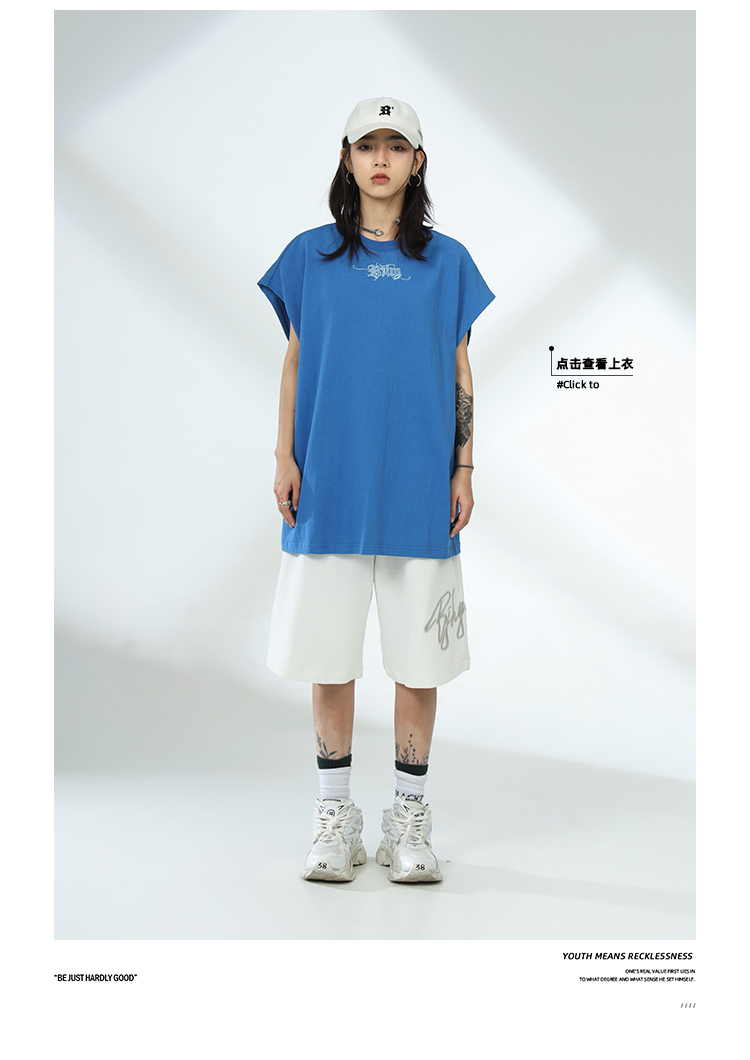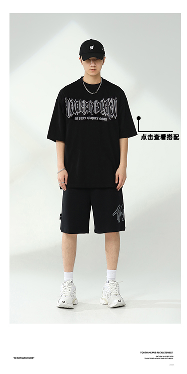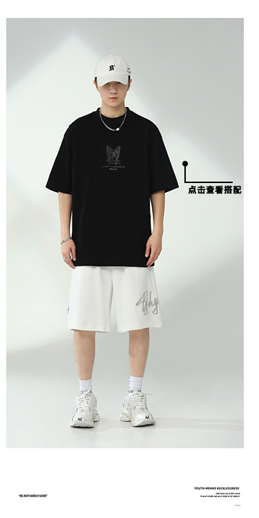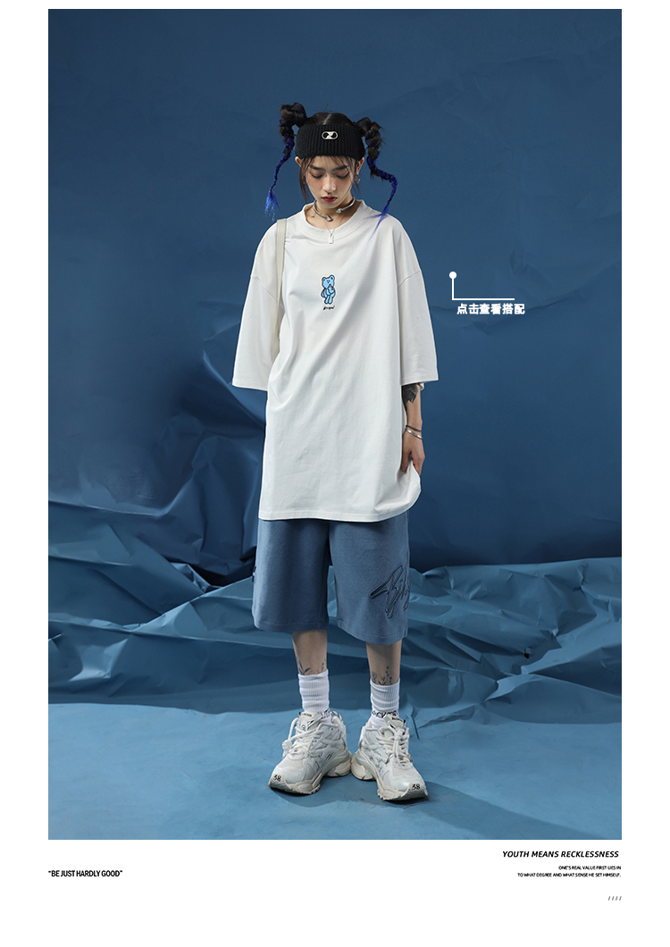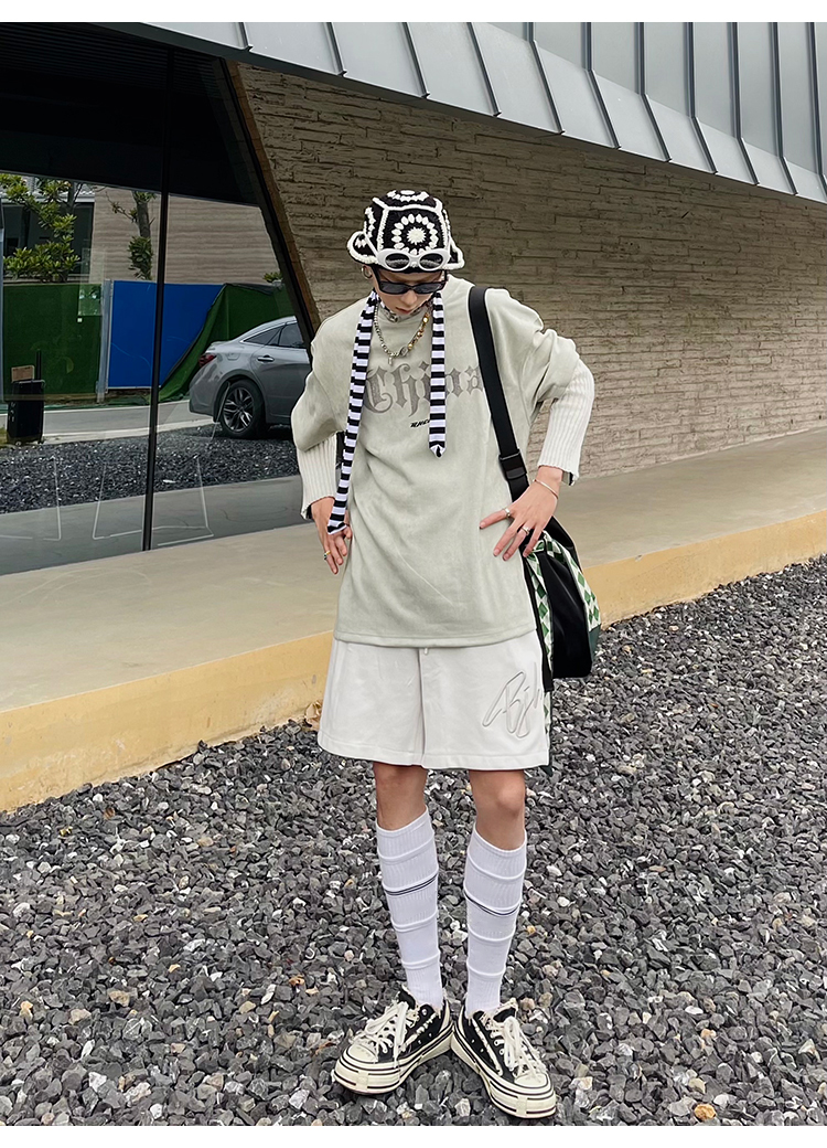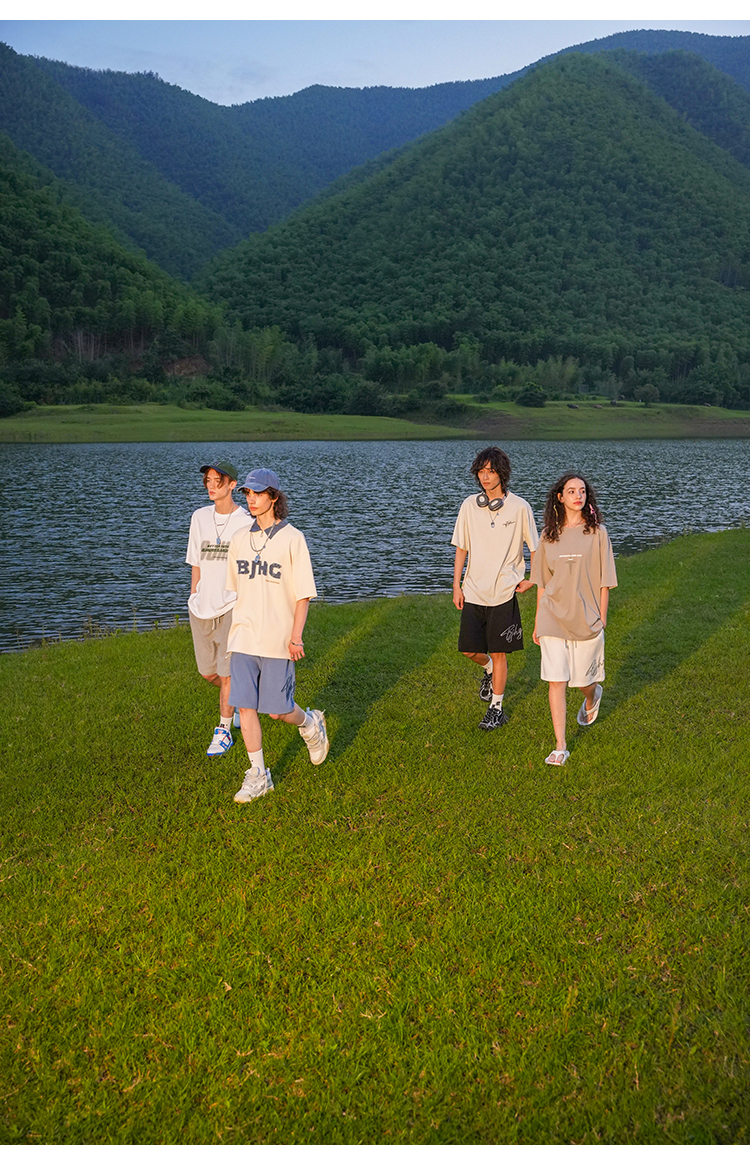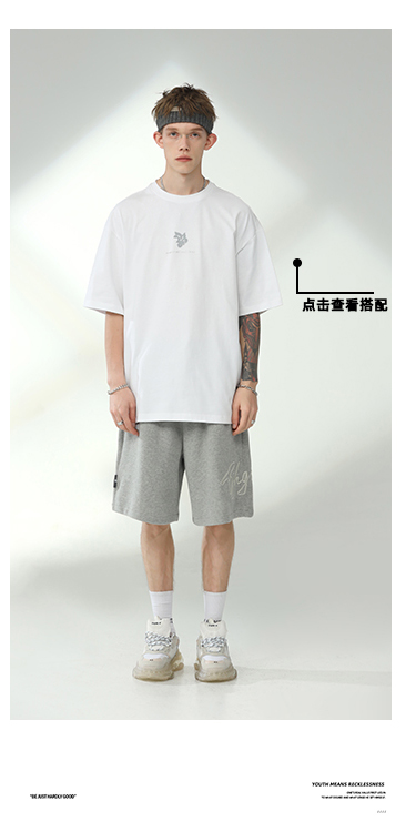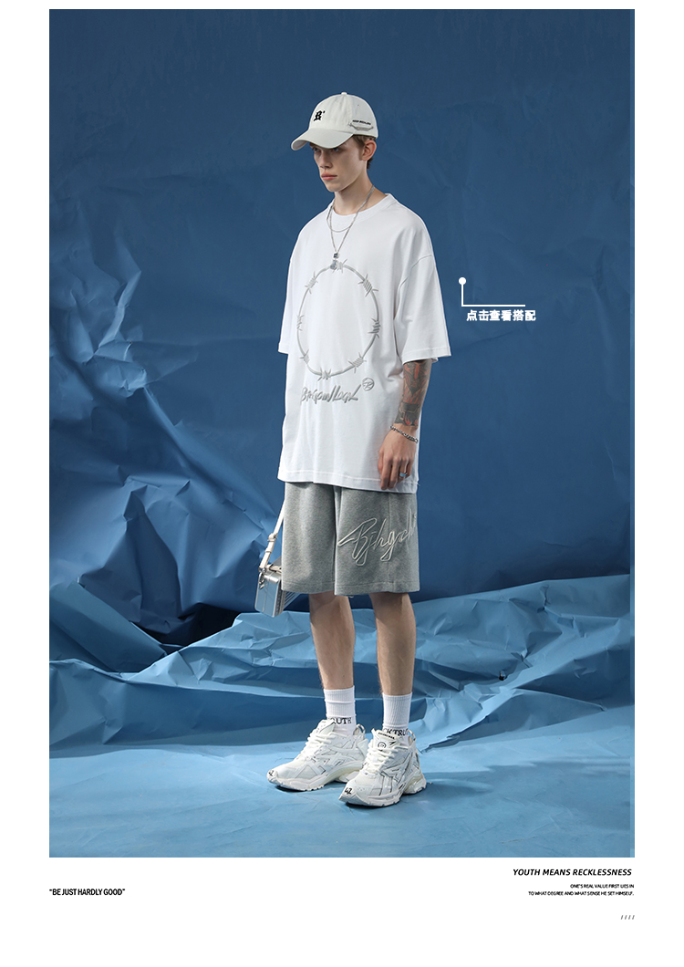 BJHG不計後果夏季休閒短褲男美式寬鬆潮牌刺繡籃球運動五分沙灘褲