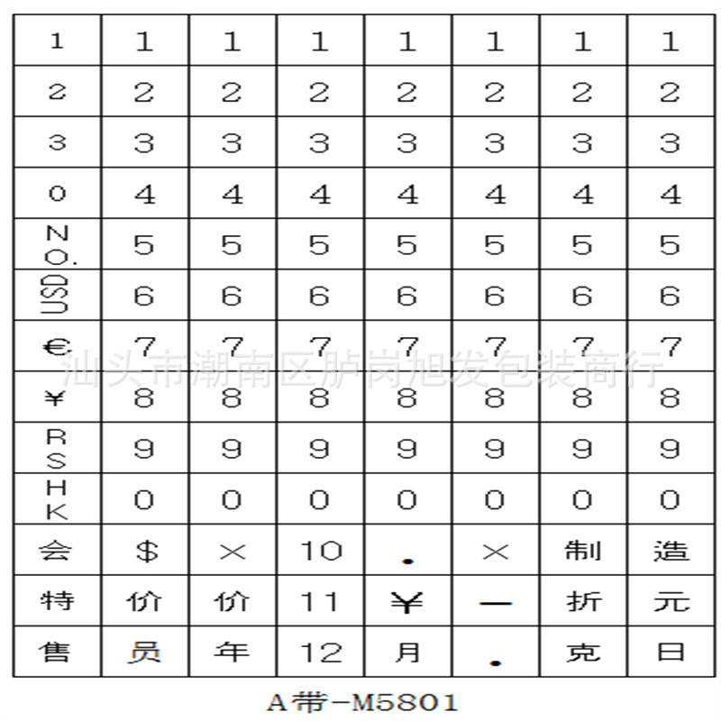 ★由于不同的地方所需的运费不同,以上运费为广东省内A带-M5801为5500EOS的现货字带,下图其他带字带需订做,详情请联系客服,字带如下图: