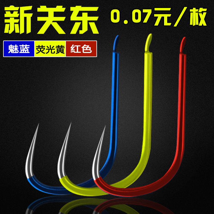 彩色新关东荧光魅蓝红色日本高碳无倒刺尖锋散装鱼钩渔具批发