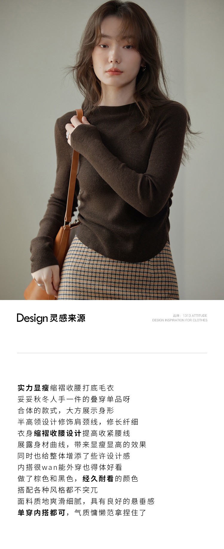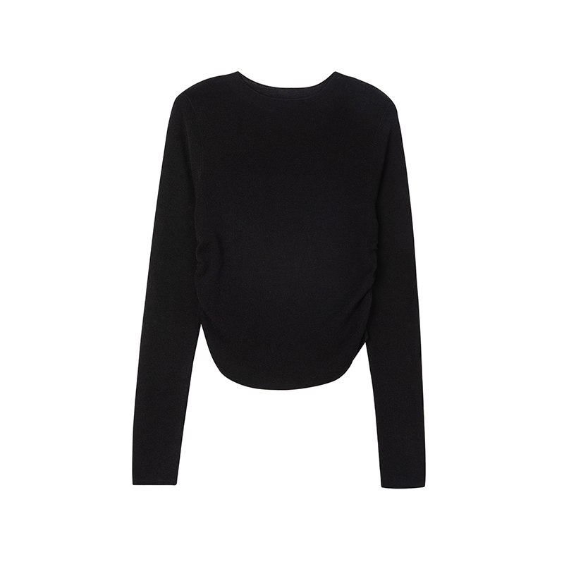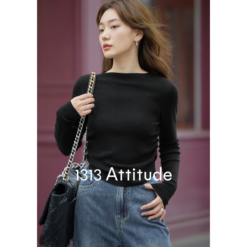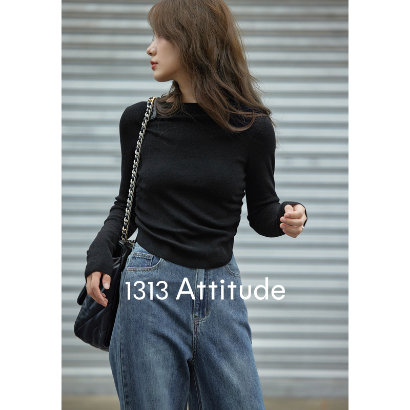 1313美拉德縮褶收腰顯瘦羊毛打底衫2023秋冬女短款慵懶親膚小毛衣